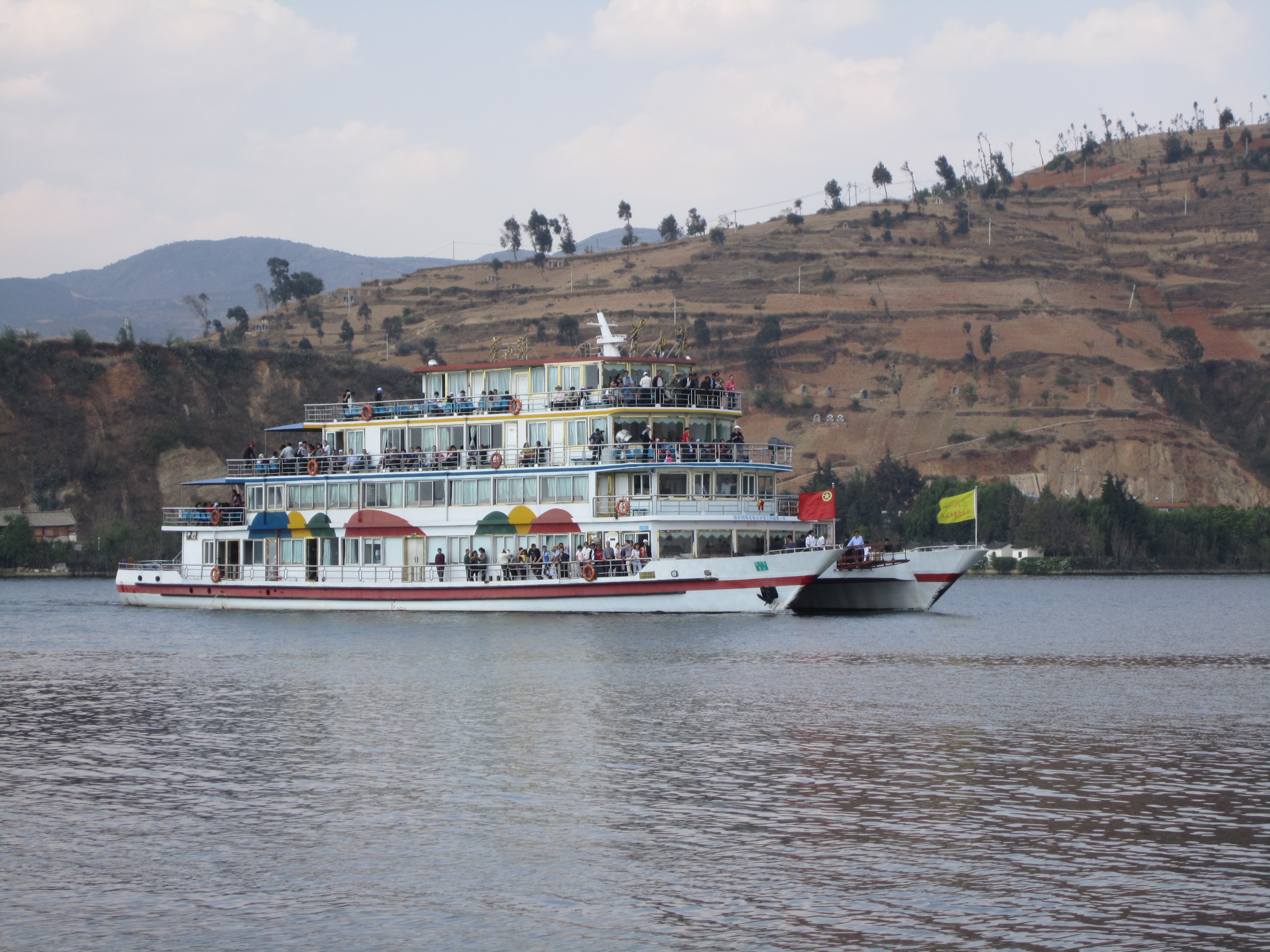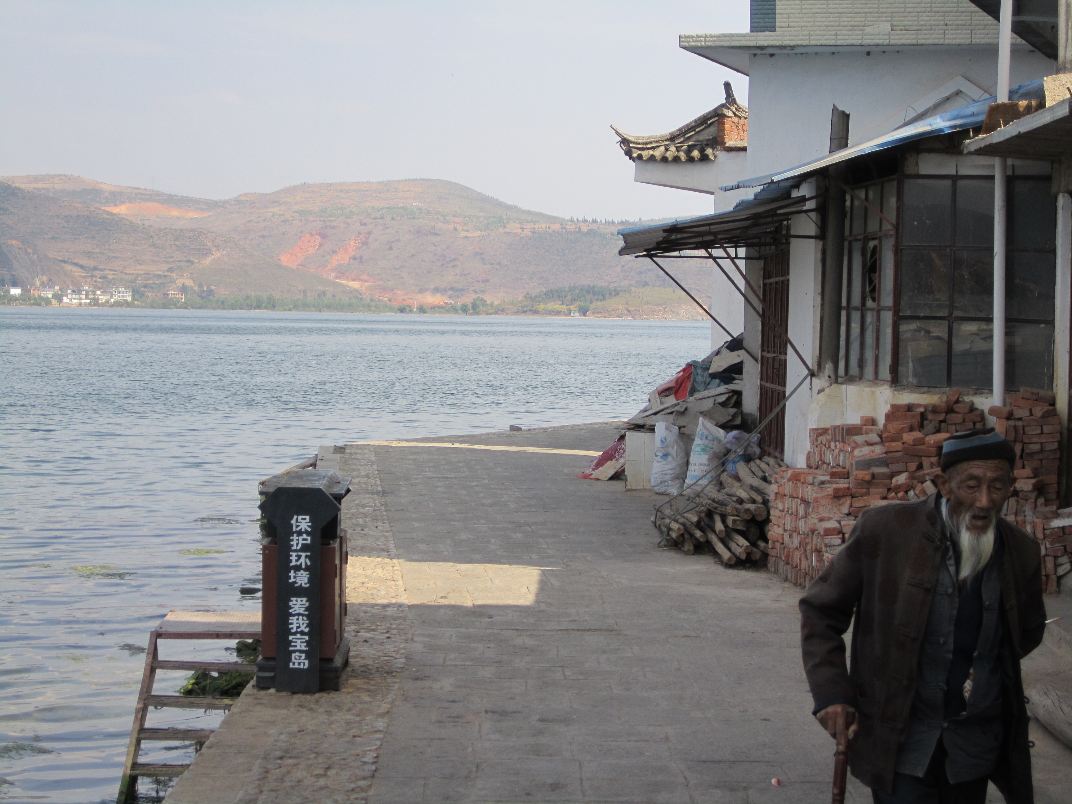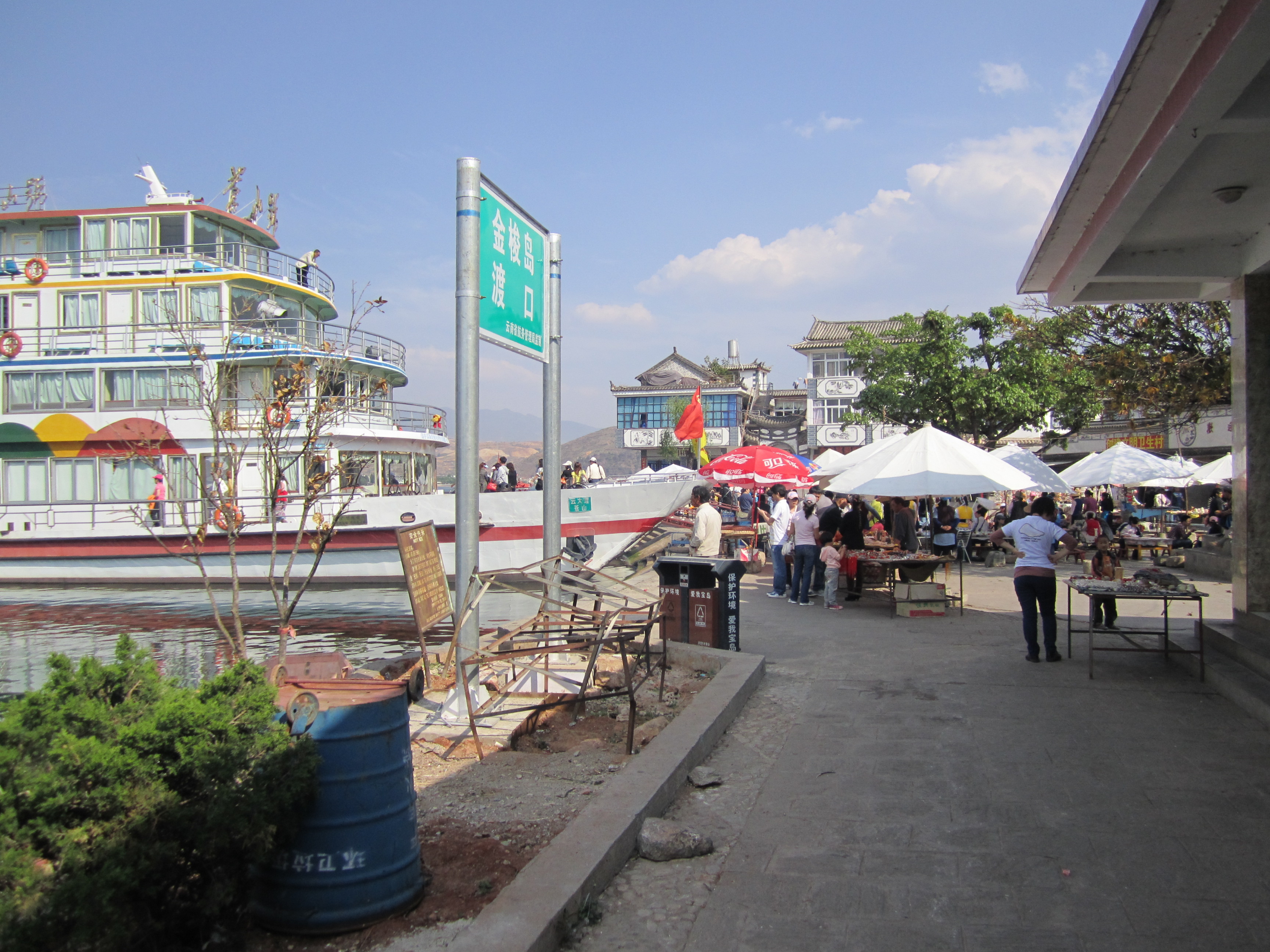 Sur le lac, une petite île, Jinsuo Dao, abrite un village prisé des touristes. Rien d’exceptionnel, mais ce fut une sacrée expérience de voir arriver un énorme bateau, se mettre à quai et déverser tous ces touristes chinois pour seulement quelques minutes!