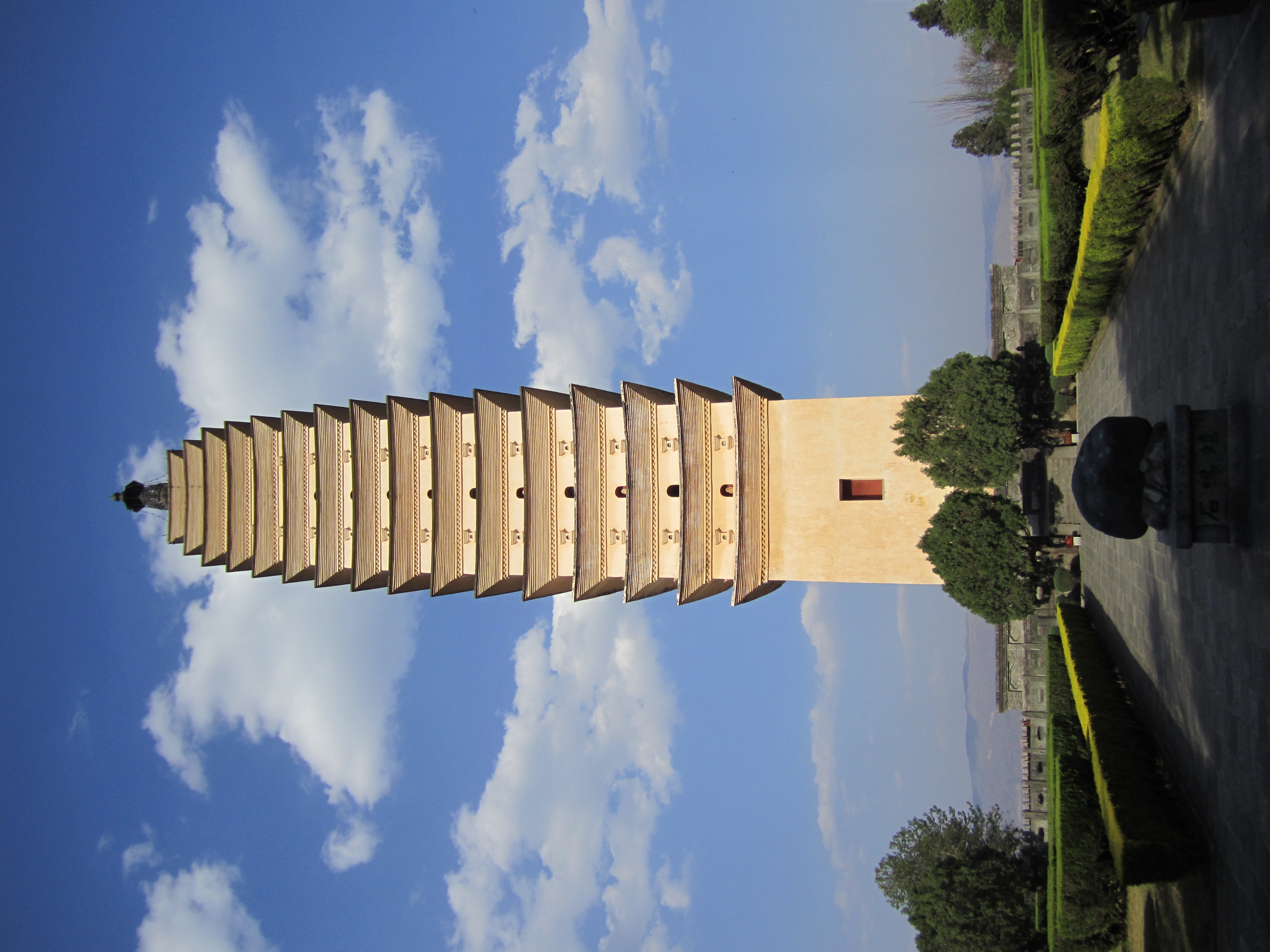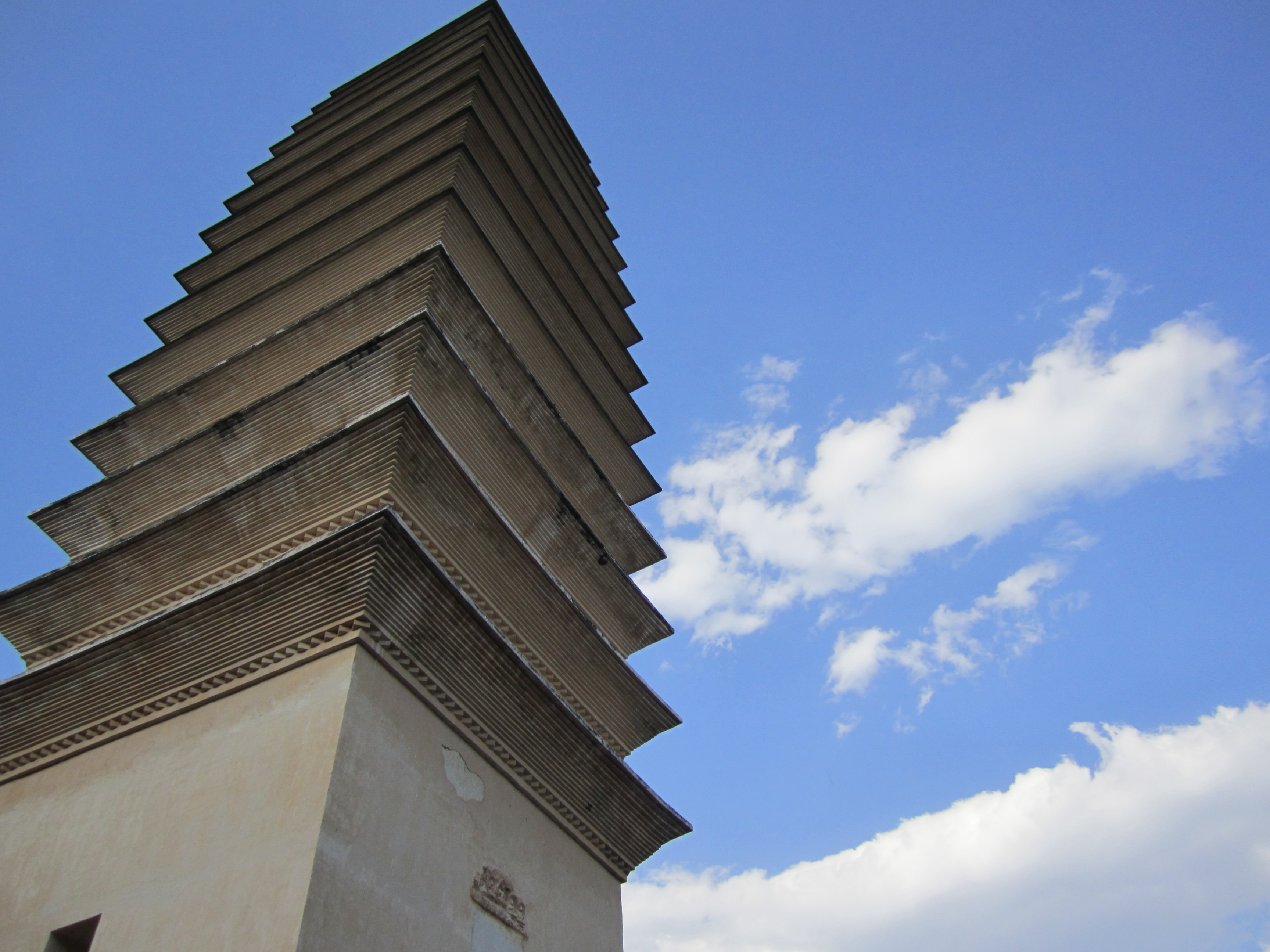 On les voit de loin et on a du mal à passer à côté. La plus élevée fait 69 m et 16 étages; ces deux voisines ne font que 43 m et 10 étages (ce qui est déjà pas mal). Leur architecture est grandement inspirée de la pagode de l’Oie sauvage de Xi’an (sauf qu’on ne peut pas monter dans celles ci).