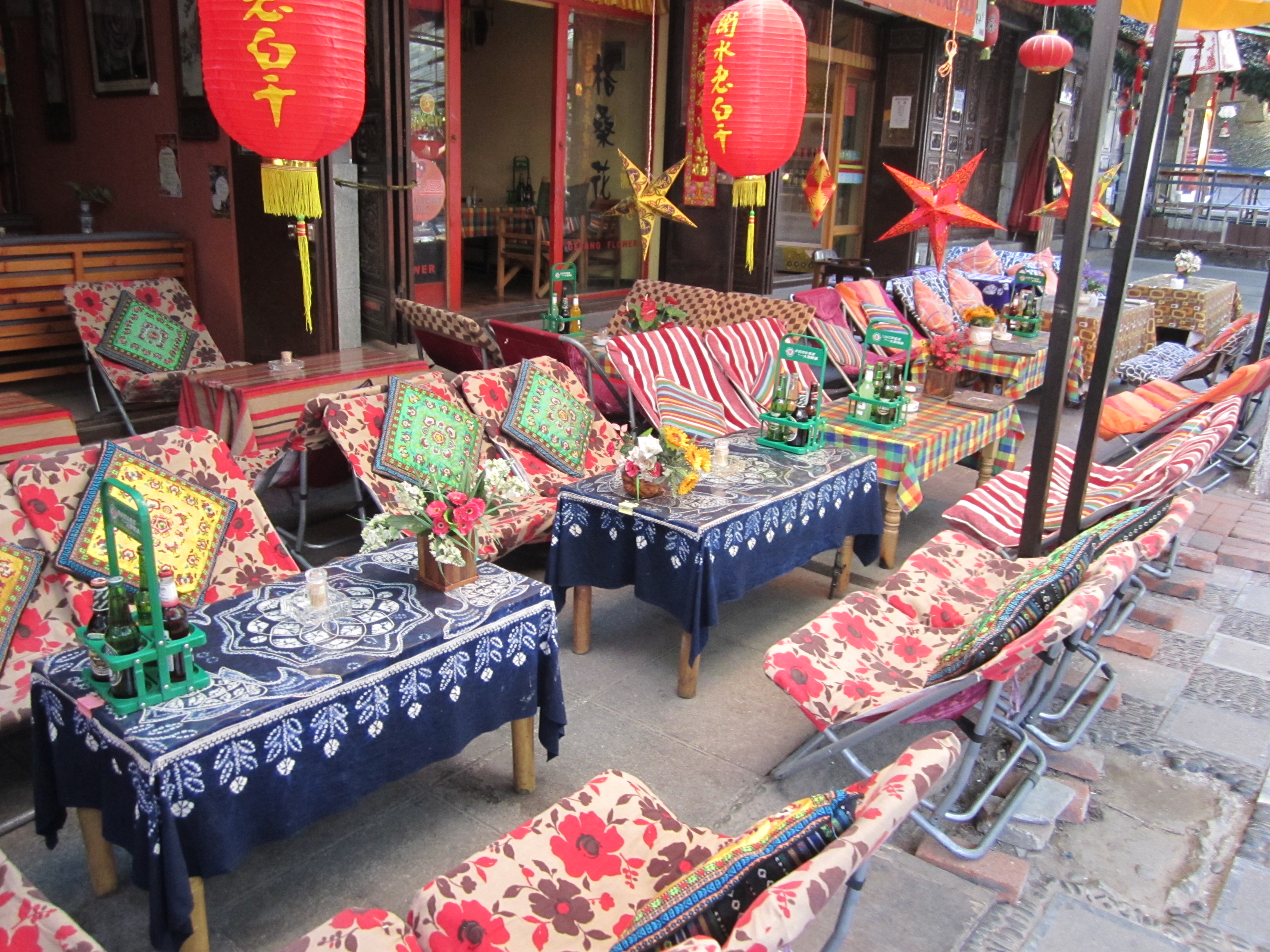 Au centre la rue Fuxing Lu croise Huguo Lu et Renmin Lu. Il s'agit des rues des « laowai » car il y a une vingtaine d’années, des étrangers baroudeurs avaient pris l’habitude de se retrouver dans ces rues pour se remettre de leurs émotions devant une bière. Très vite la rue a pris des galons et attire aujourd'hui les commerces et les restos: les menus sont d'ailleurs presque entièrement composés de plats européens...