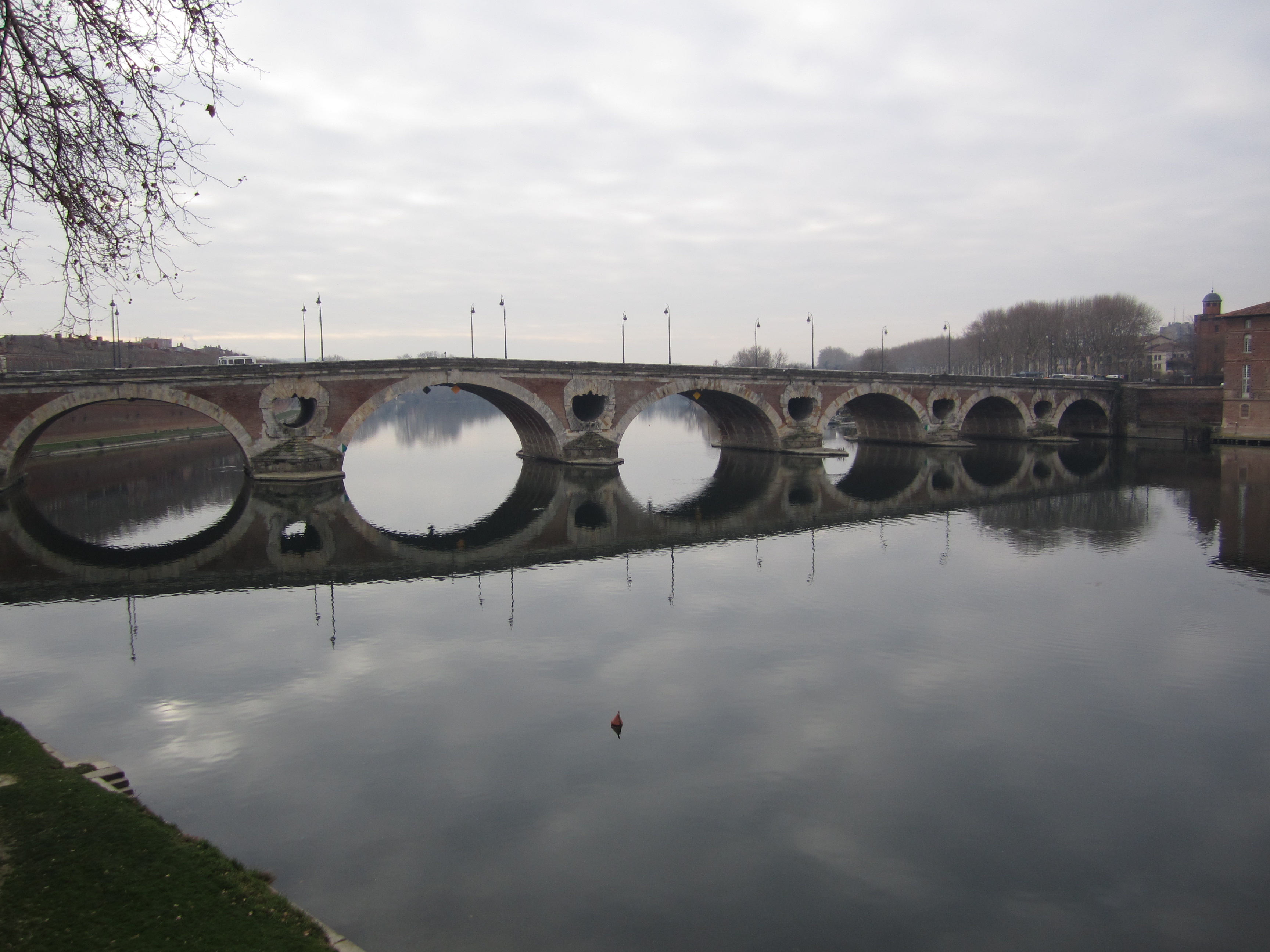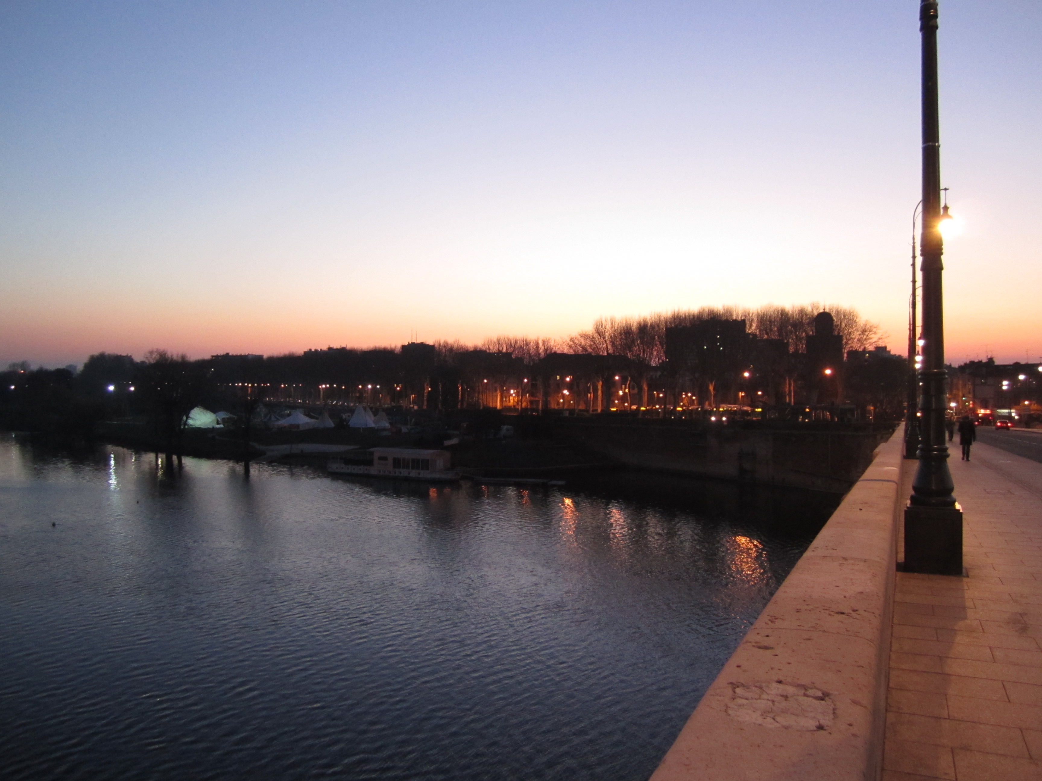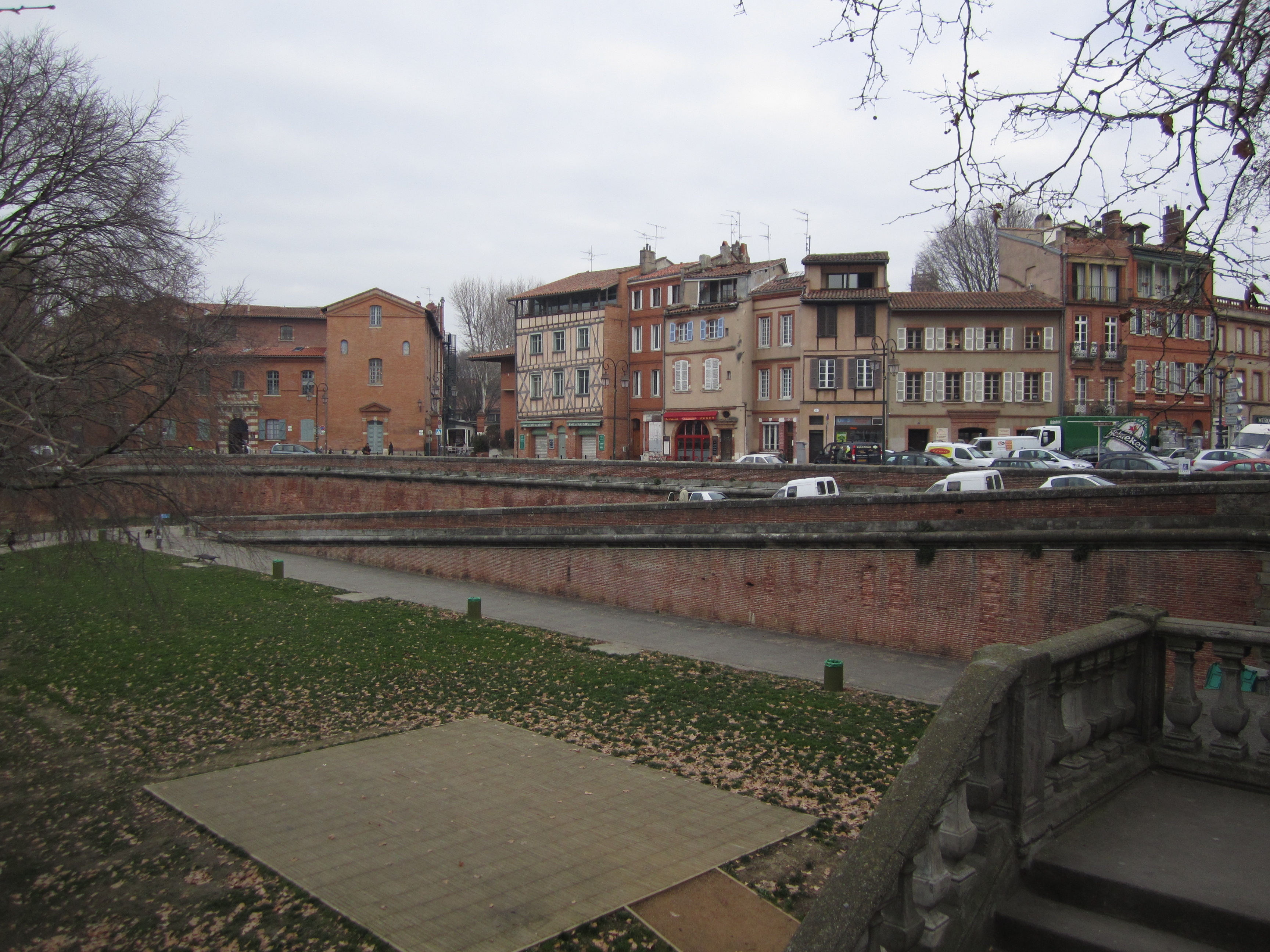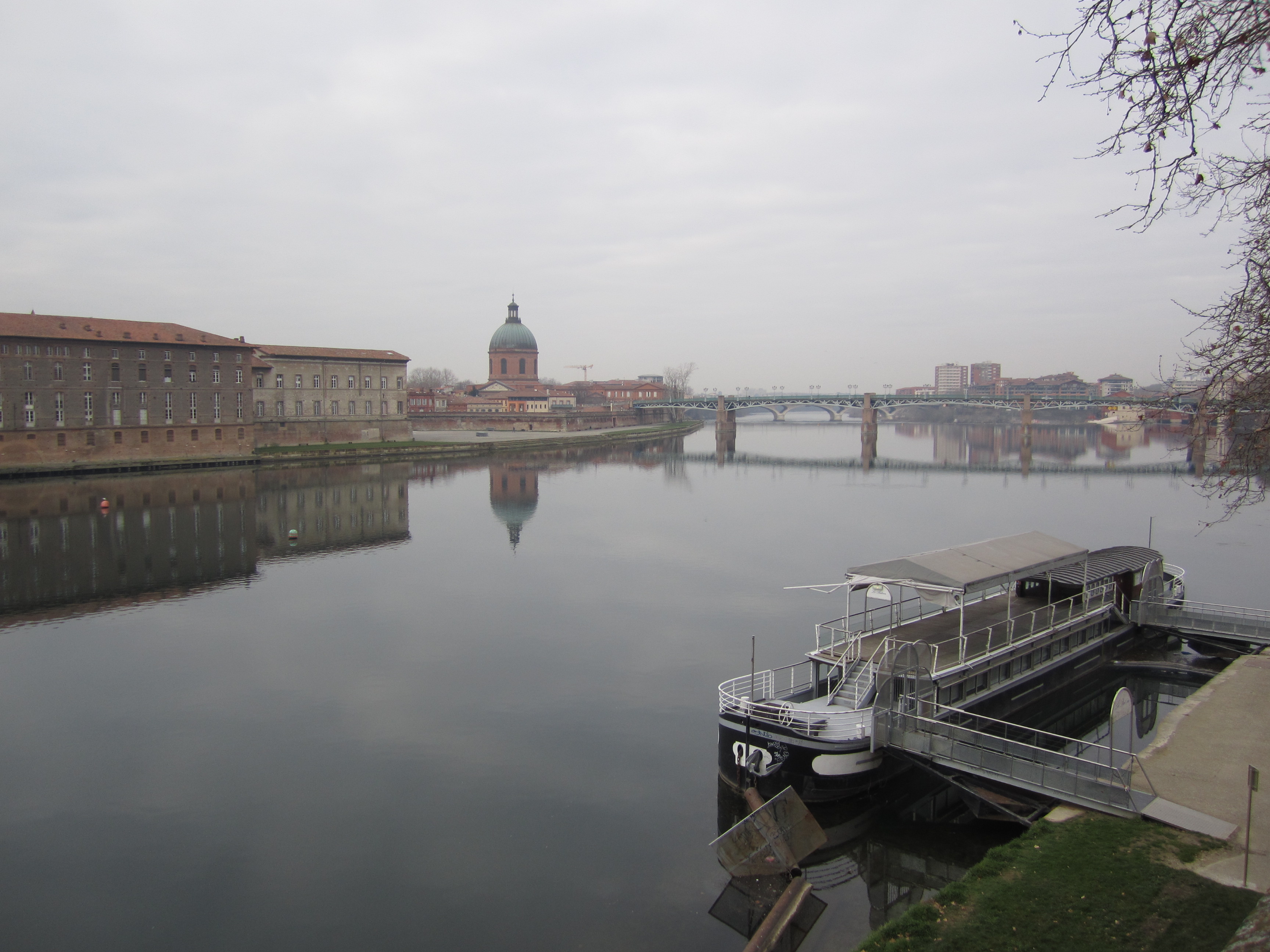 Même s'il fait un froid d'enfer (oui je prends un peu les exagérations du sud), Mathilde décide de me faire un tour de Toulouse pour découvrir un peu cette ville rose. On longe les quais de la Garonne, qui semble plus propre que la Seine, à première vue. L'école des Beaux Arts est derrière nous et de l'autre côté de la berge, on aperçoit l'Hôpital de la Grave avec son dôme bleu argenté. On traverse l'université de Toulouse 1, forcément déserte un dimanche.