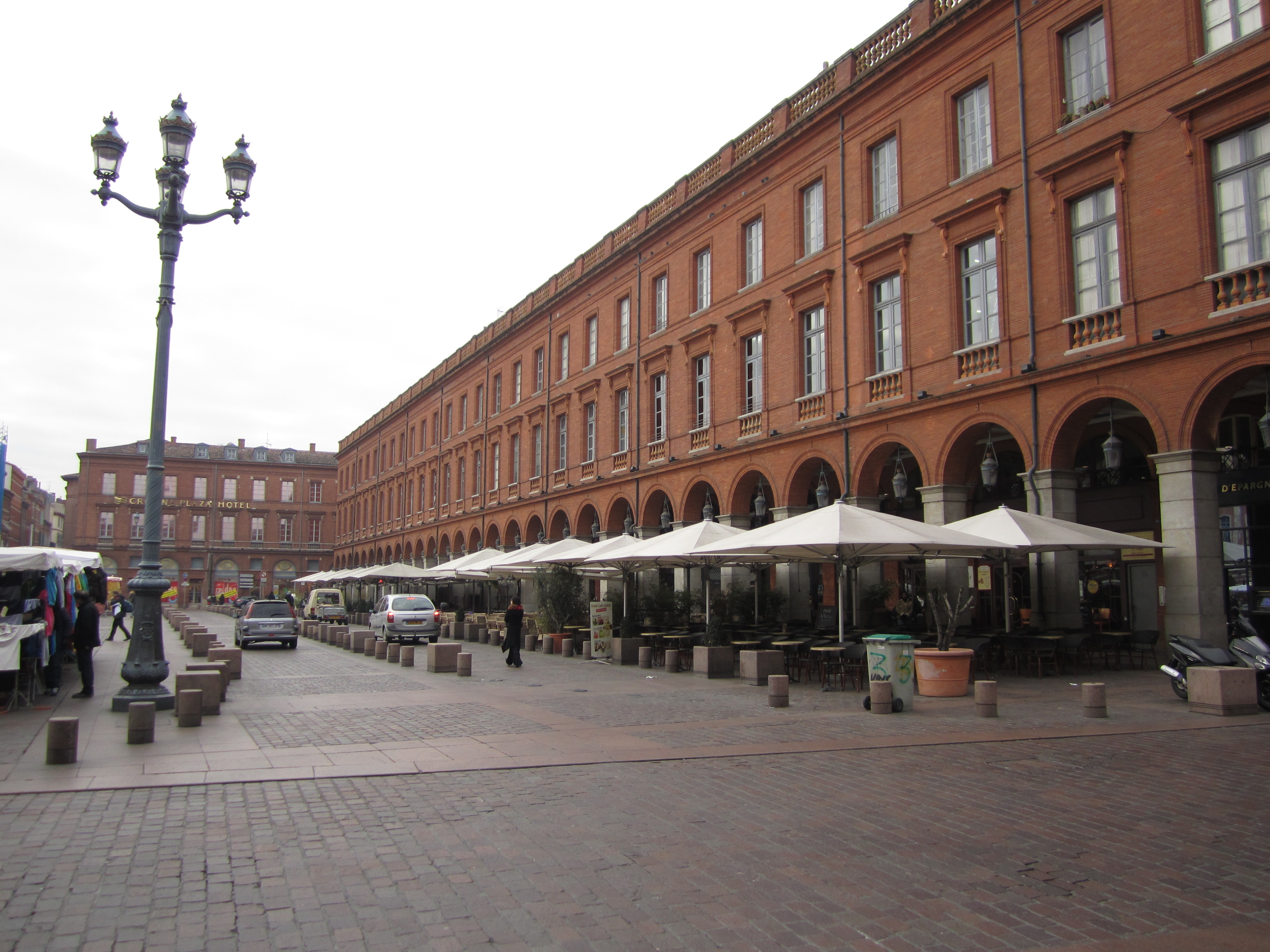Après crapahuter dans les rues de Toulouse, on a l’impression de reprendre une bouffée d’air en arrivant sur la grande place du Capitole.