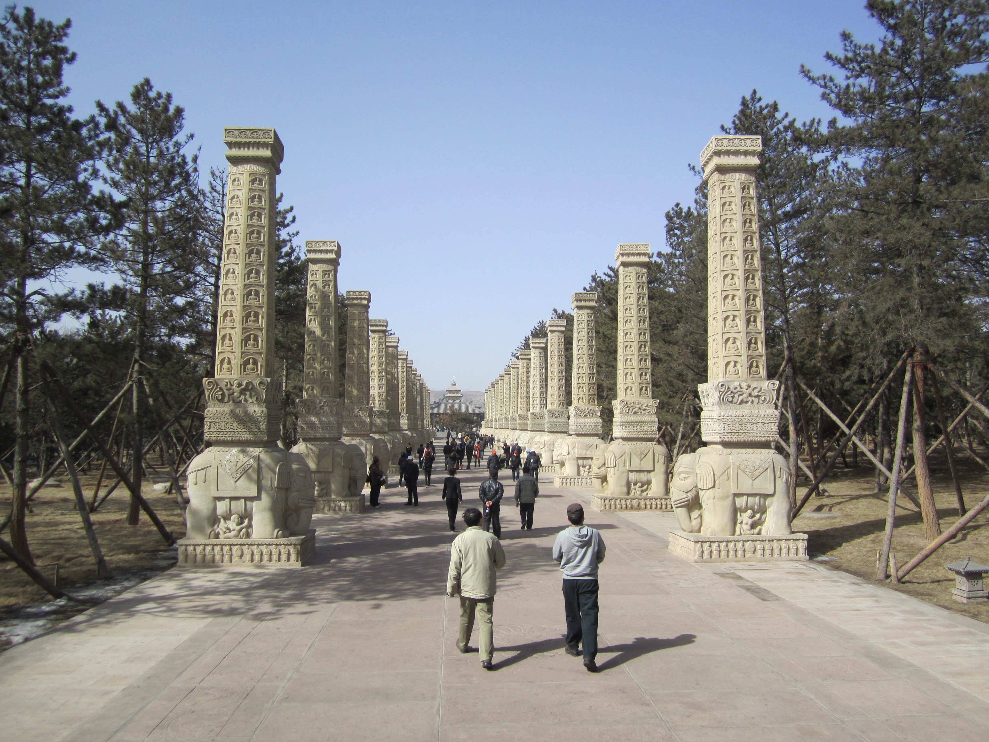 Après une longue série de colonnes, on arrive sur un temple, lui aussi construit récemment. Je décide de le zapper et d’aller directement à la (vraie) entrée des grottes. Et, pour y avoir fait un saut au retour des grottes, ce temple ne présente aucun intérêt si ce n’est qu’il est joli de l’extérieur.