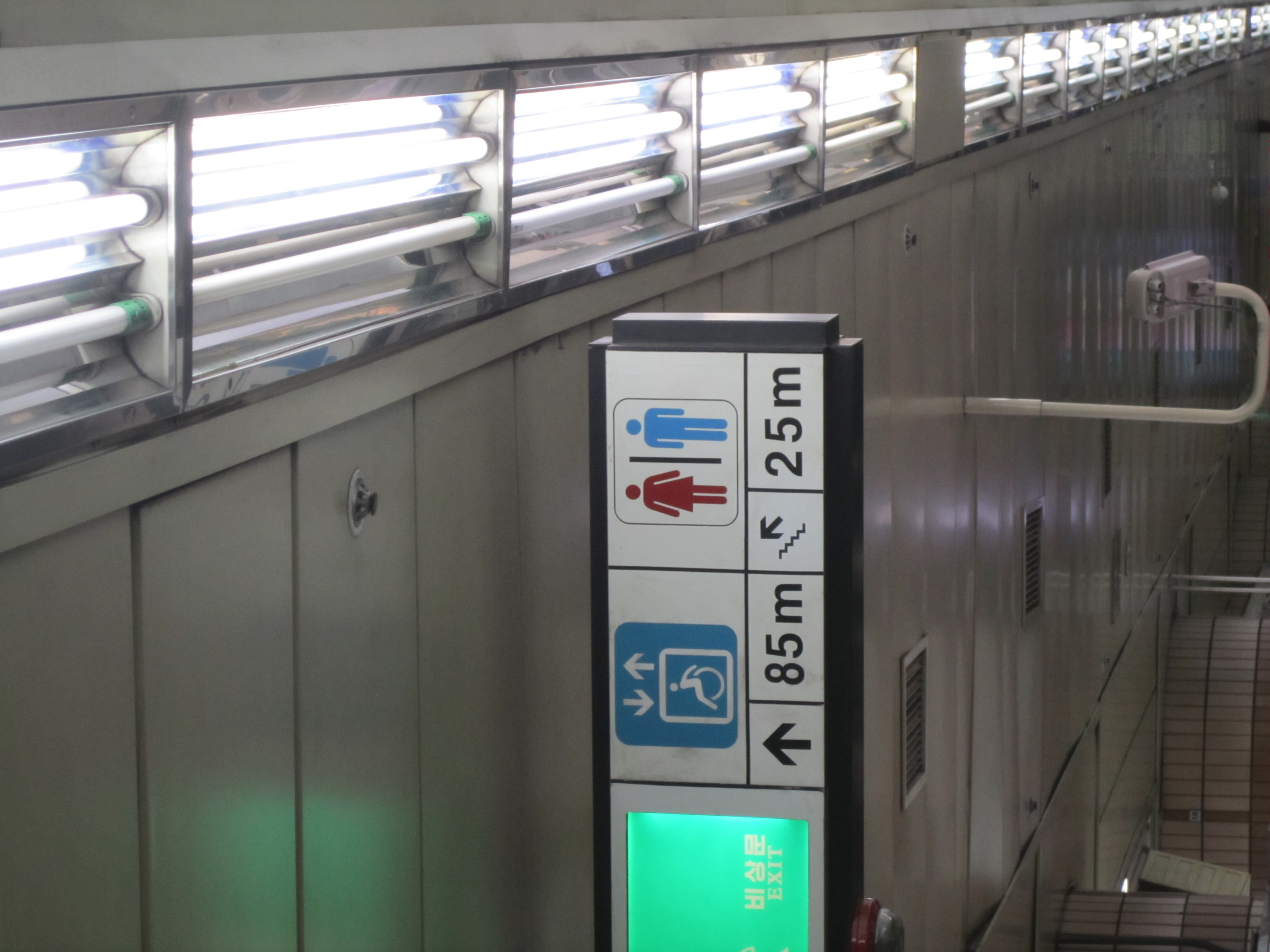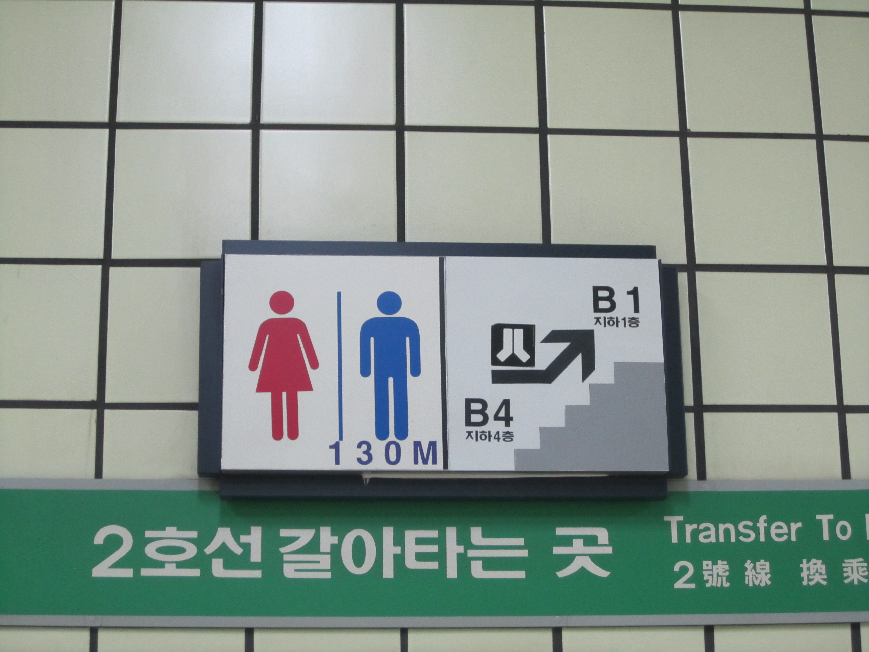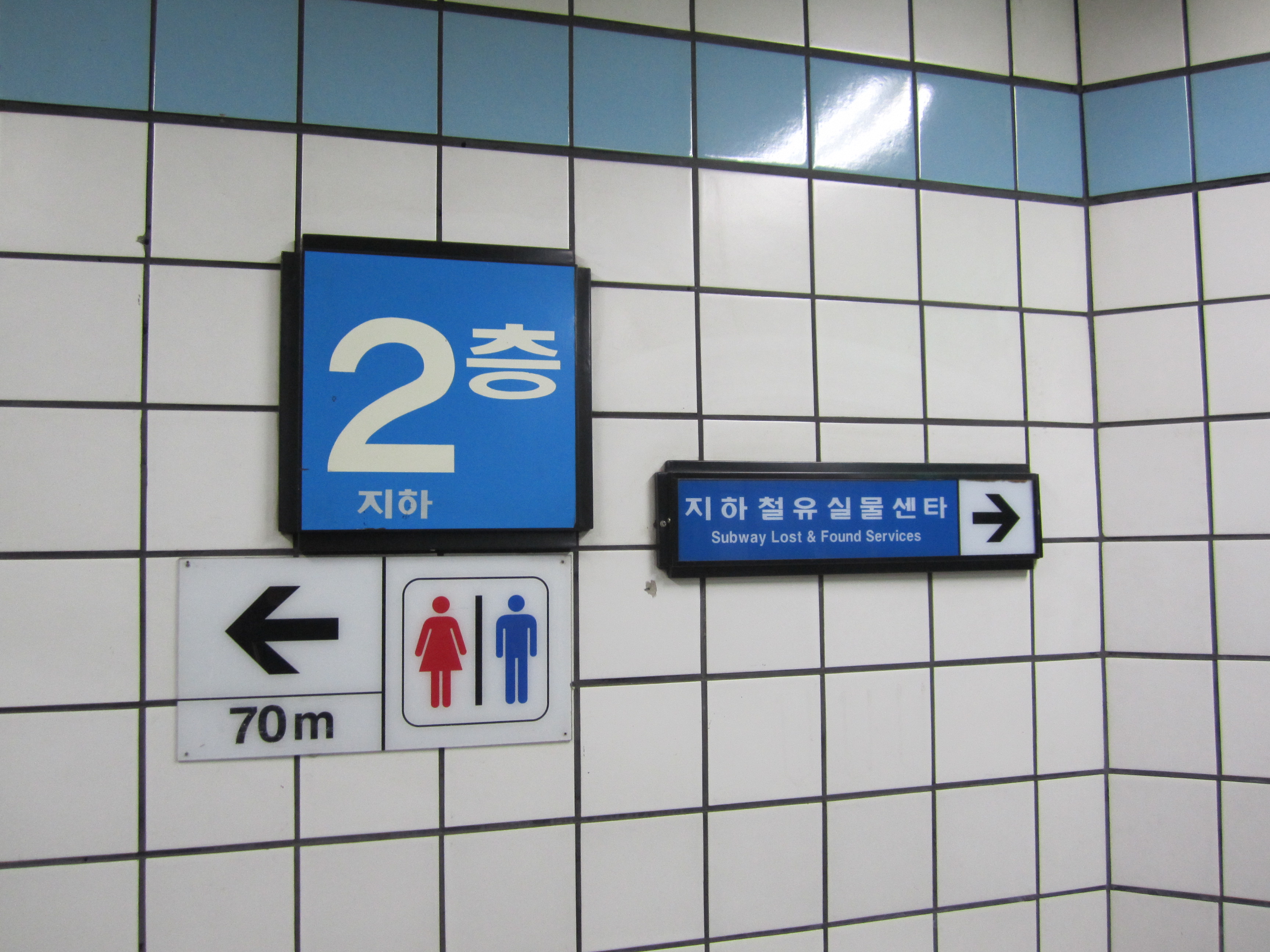 Fil rouge de nos déplacements dans le métro de Séoul, ces panneaux indiquant la distance des prochains toilettes nous ont fait bien rigolé. Une des particularités des pays asiatiques, c'est qu'on trouve des toilettes partout. Et à Séoul, on trouve plusieurs toilettes dans toutes les stations de métro.