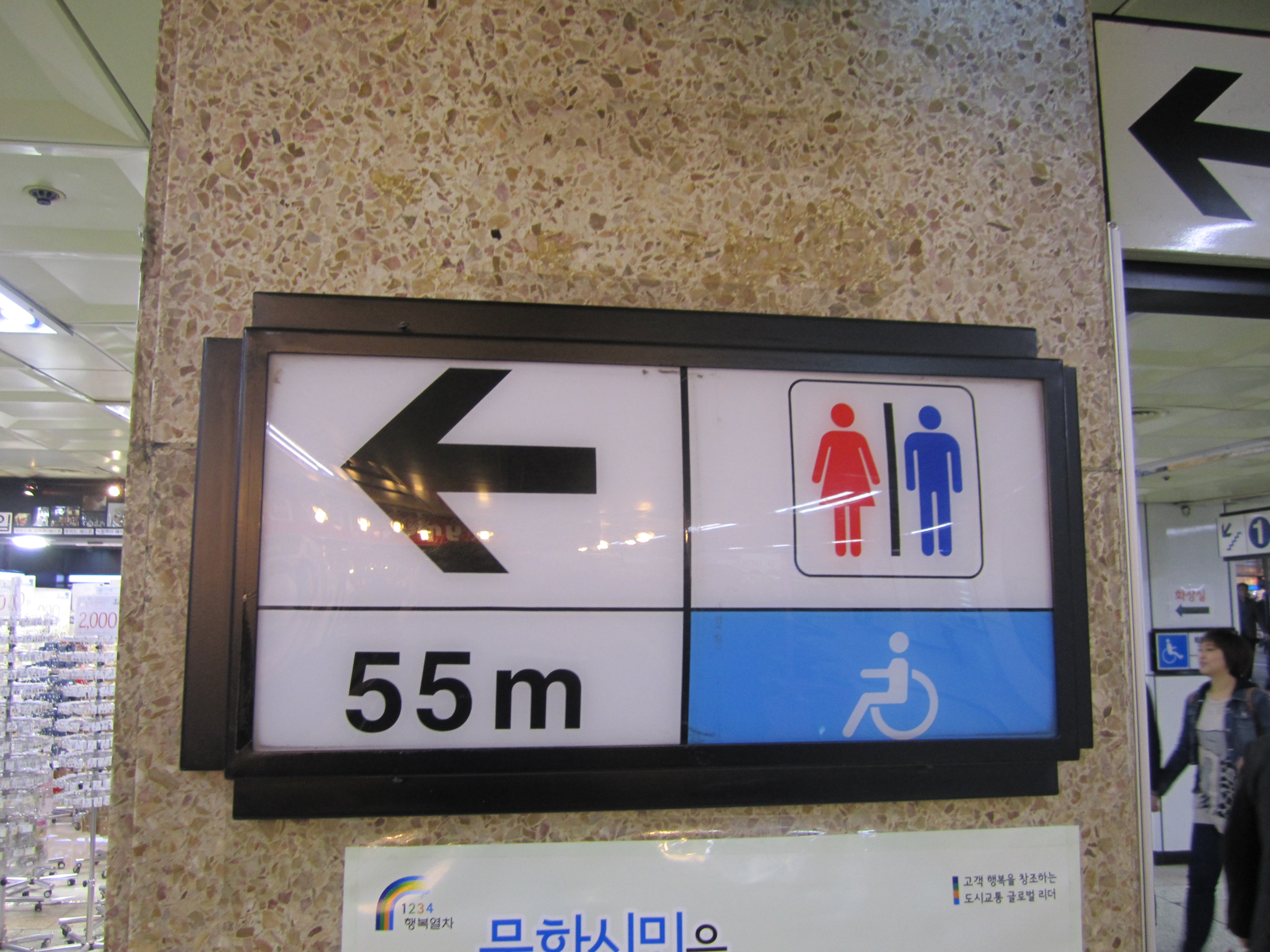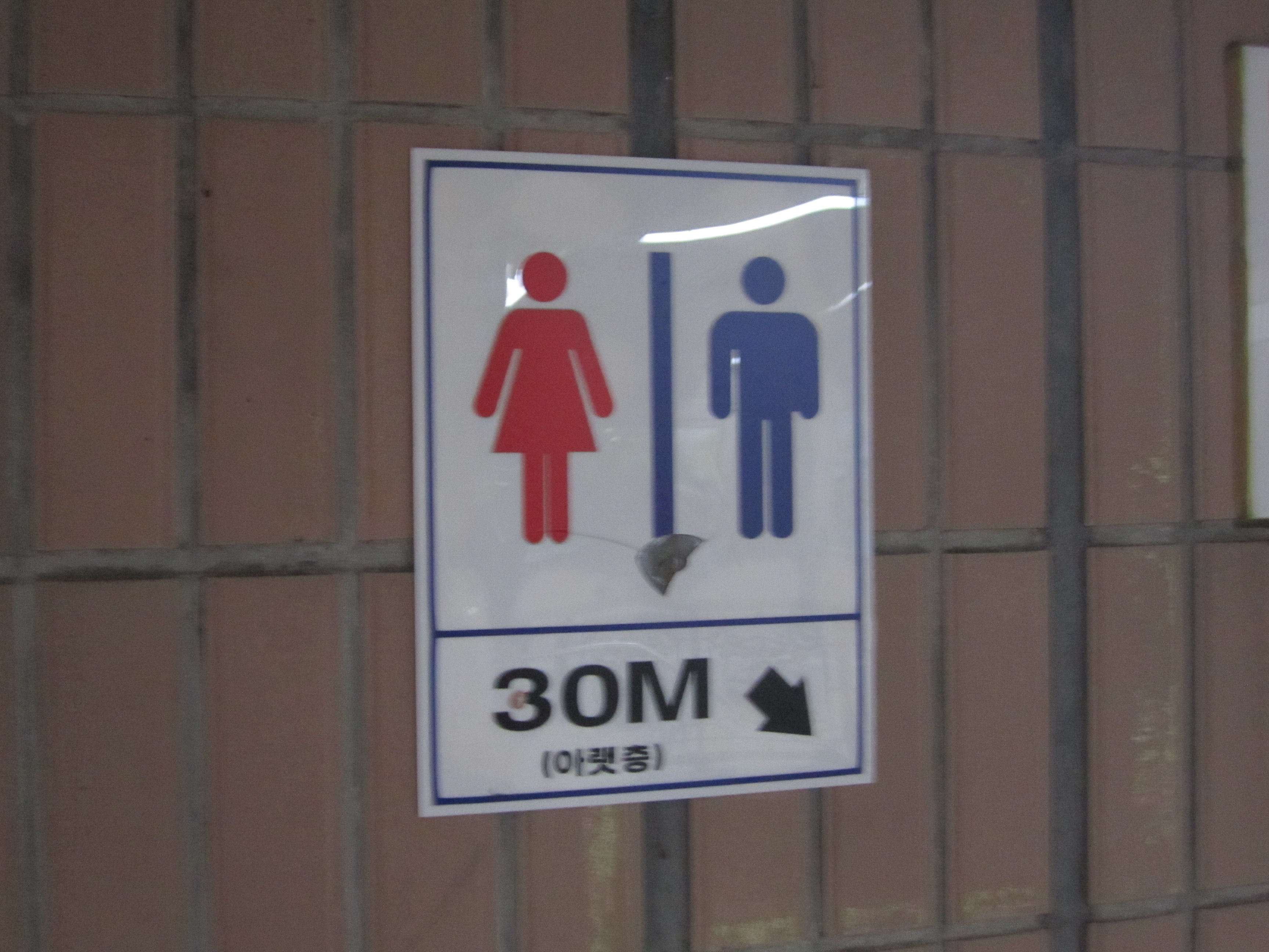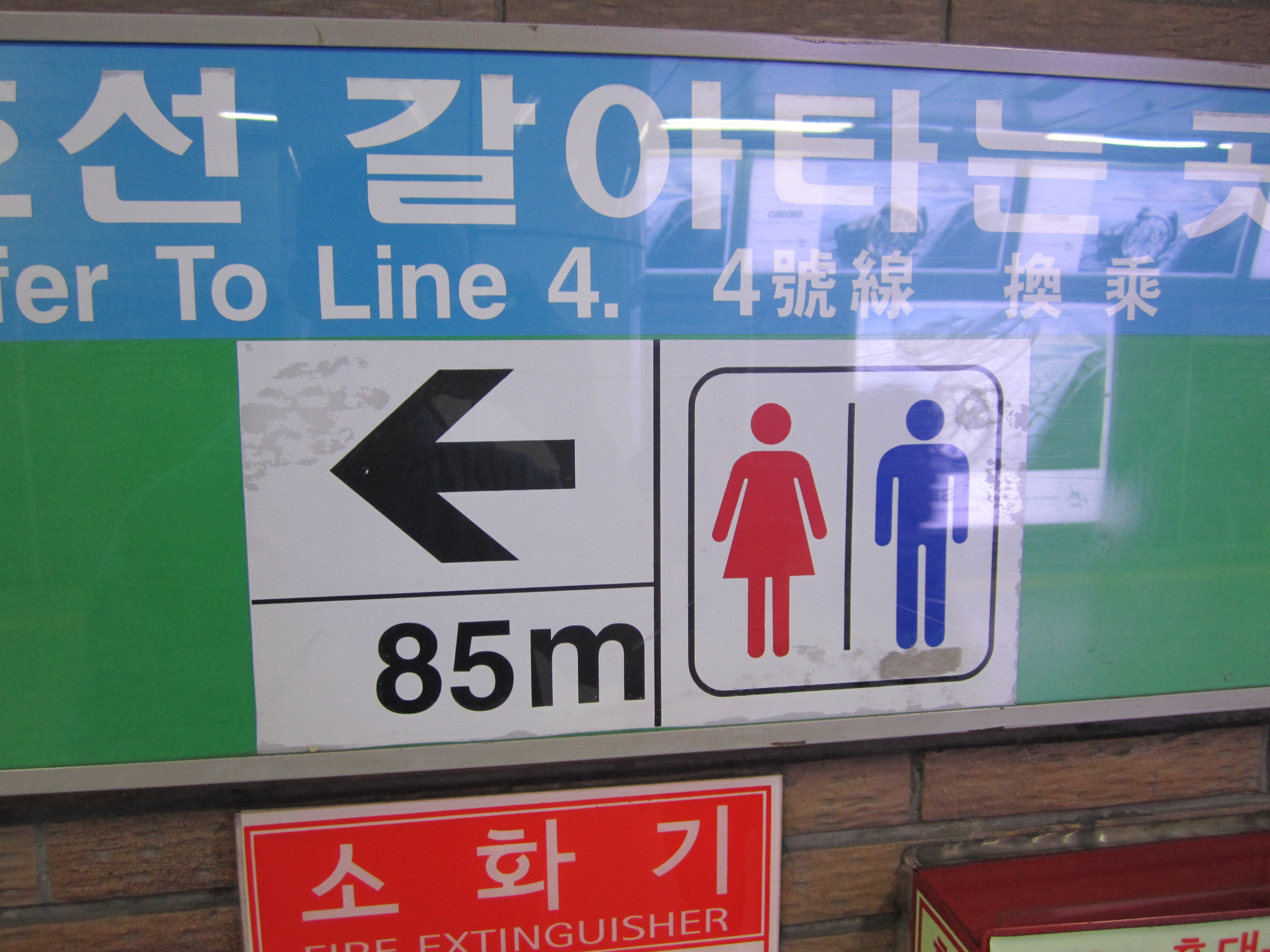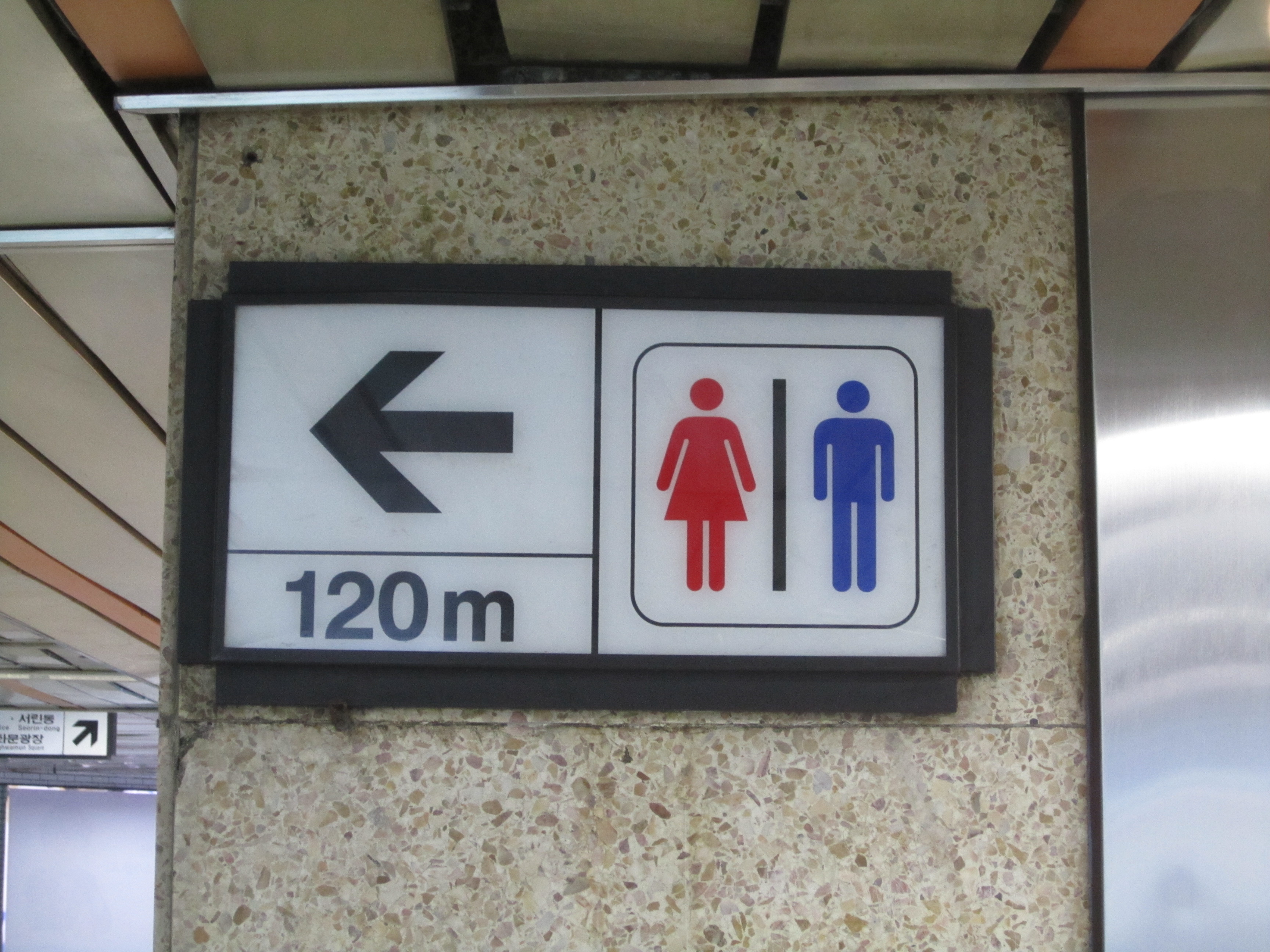 Fil rouge de nos déplacements dans le métro de Séoul, ces panneaux indiquant la distance des prochains toilettes nous ont fait bien rigolé. Une des particularités des pays asiatiques, c'est qu'on trouve des toilettes partout. Et à Séoul, on trouve plusieurs toilettes dans toutes les stations de métro.
