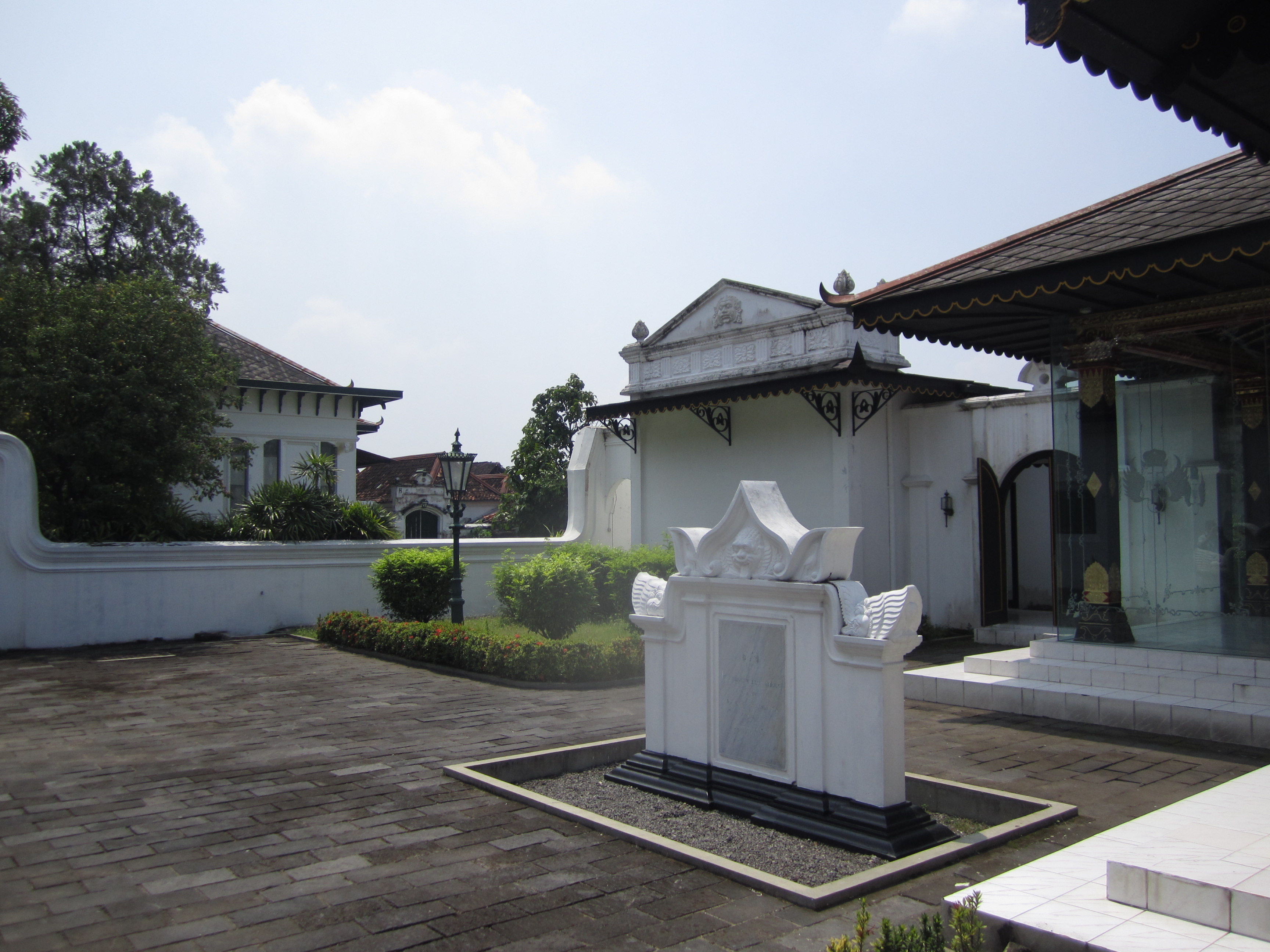 On attaque notre première journée dans la foulée, en sautant dans un becak (un rikshaw, ou pousspouss, touktouk, etc) conduit par un p’tit vieux qui parle un français plus que correct. Son becak (pas pris en photo, snif) est magnifiquement entretenu et qu’est-ce qu’il brille ! Il nous confie qu’il en prend soin et le lave tous les jours. Pour 50 000 irp, il nous propose de faire un tour dans le centre de Yogy et de visiter les principaux endroits qu’on avait noté (et qu’on a mixé sur ses conseils). On a fait le kraton (le palais du sultan), vu des gens fabriquer des marionnettes sur du cuir, puis peindre leurs oeuvres, le château d’eau (avec des piscines refaites mais impossible d’y tremper le pied), la grande mosquée et pour finir le grand marché (qui pour le coup est vraiment très grand).