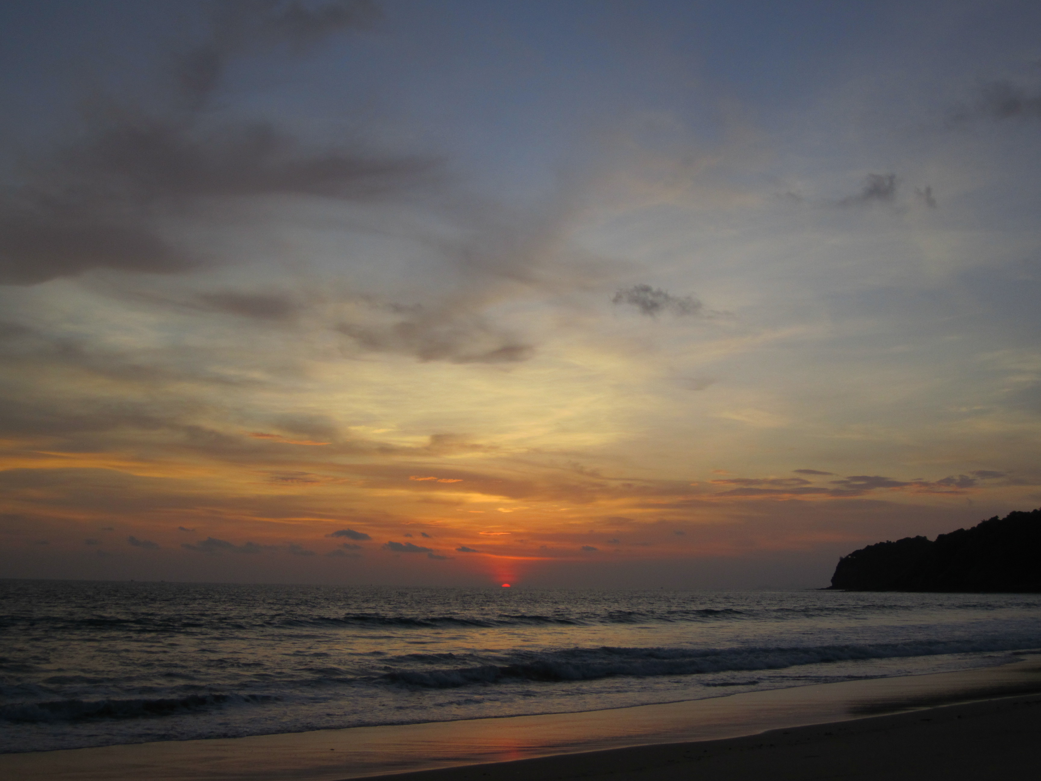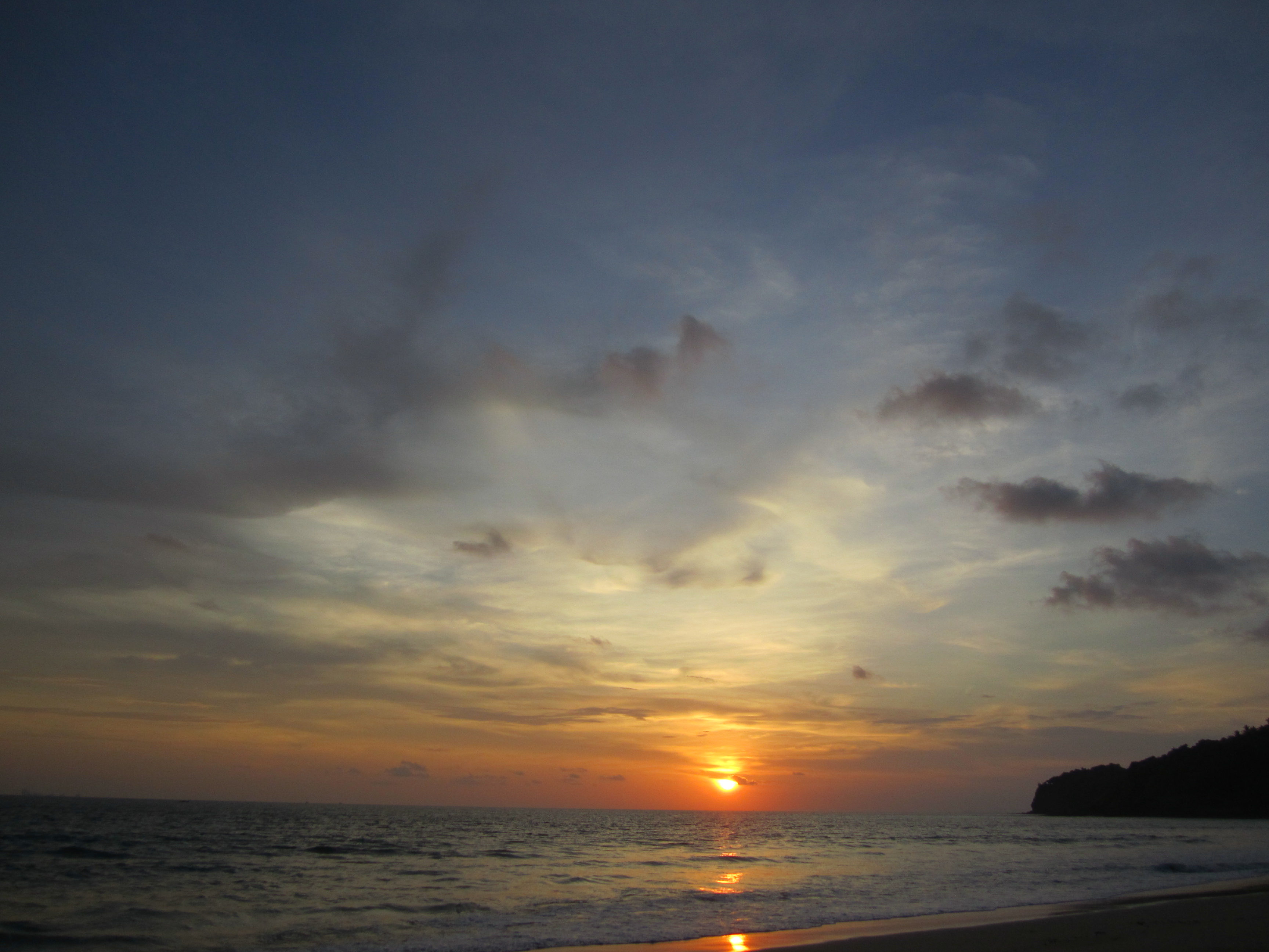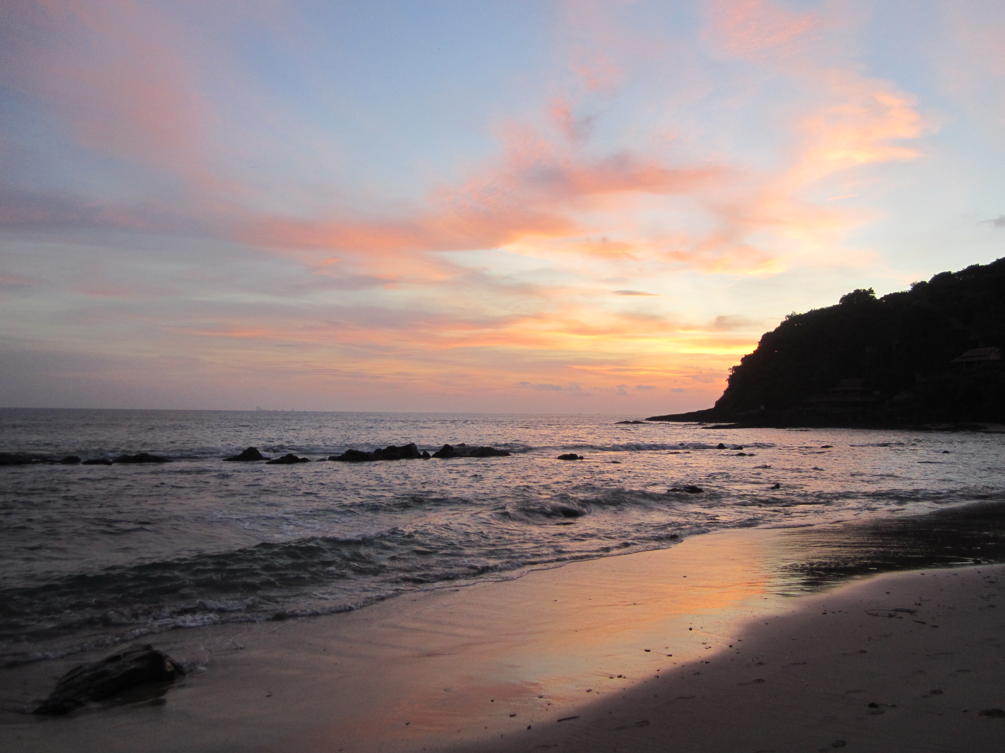 Par exemple, la première plage que j’ai faite pour le coucher de soleil se situe à l'extrême Sud. On l’appelle Last Beach ou Ao Mai Phai. La route est correcte jusqu’à que ça deviennent presque impraticable, mais en scooter ça passe encore en roulant doucement. Quand je suis arrivé sur cette plage, il n’y avait personne. Un grand bout de sable, un soleil descendant, un ciel bleu avec quelques nuages … le pied. Et le coucher de soleil était magnifique !