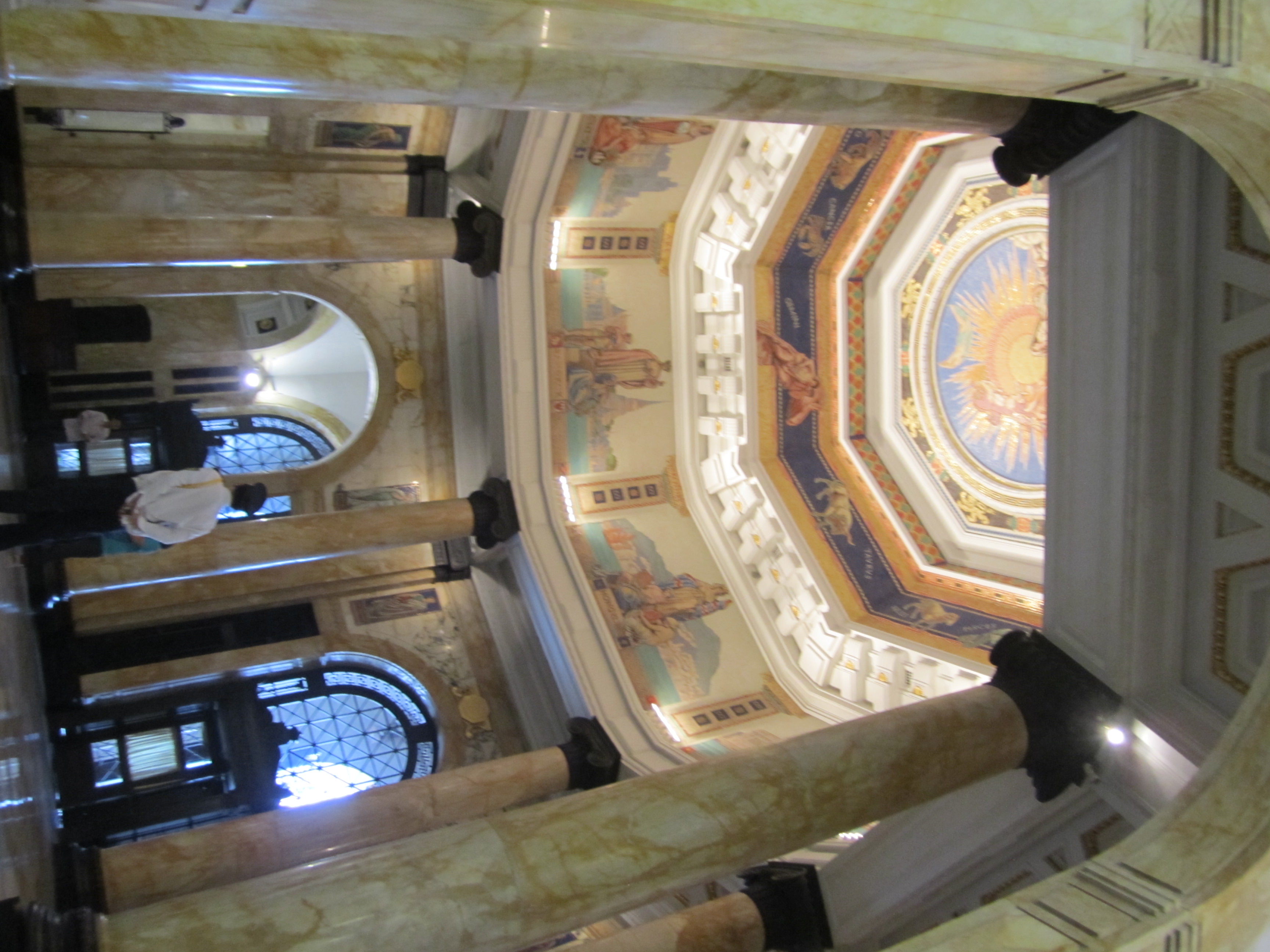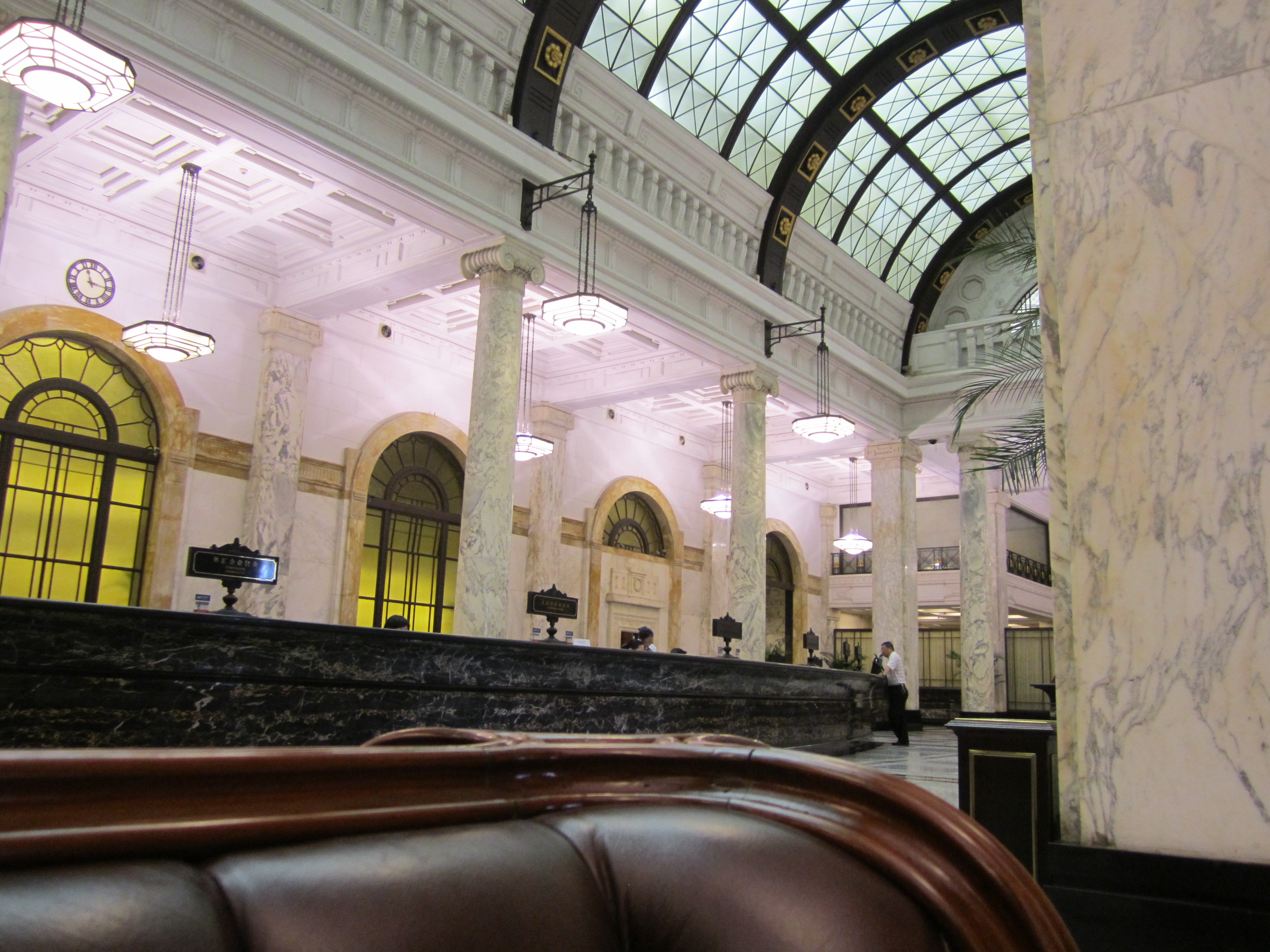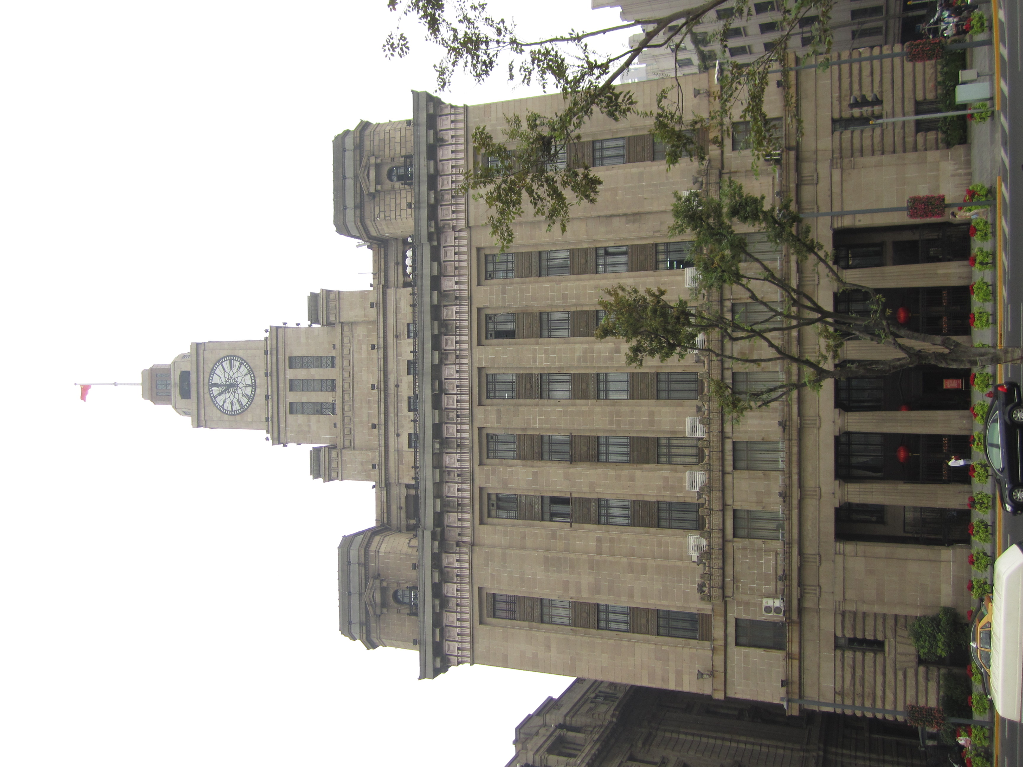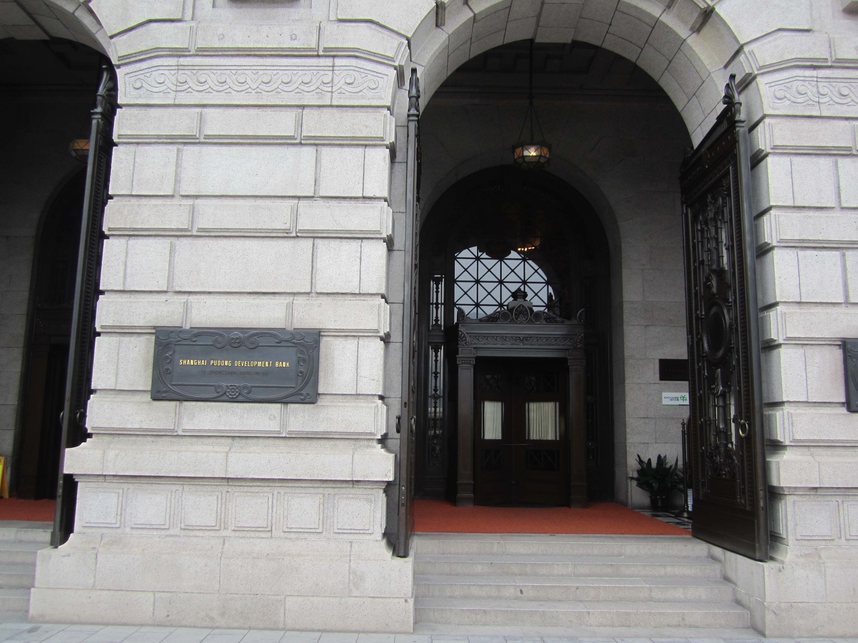 Dans la maison des Douanes (Customs House) et dans la Shanghai Pudong & Developement Bank, les plafonds dans le hall d'entrée valent grandement le coup d'oeil. En rentrant dans le hall de la maison des Douanes, je me suis retrouvé au milieu de la pièce avec au moins 7 gardes dans le hall qui m'ont tous interpellés quand j'ai dégainé mon appareil photo. Je suis vite ressorti! Par contre, dans la Shanghai Pudong & Developement Bank, j'ai pu prendre des photos un peu à l'insu du garde trop distrait par son téléphone portable. Cette banque était considérée à l'époque comme l'une des plus grandes du monde ! Au plafond on retrouve les principales places boursières de l'époque ainsi qu'une immense verrière. Les guichets sont planqués derrière de vieux comptoirs en marbre patiné par le temps. Rien ne semble avoir changé de l'époque.