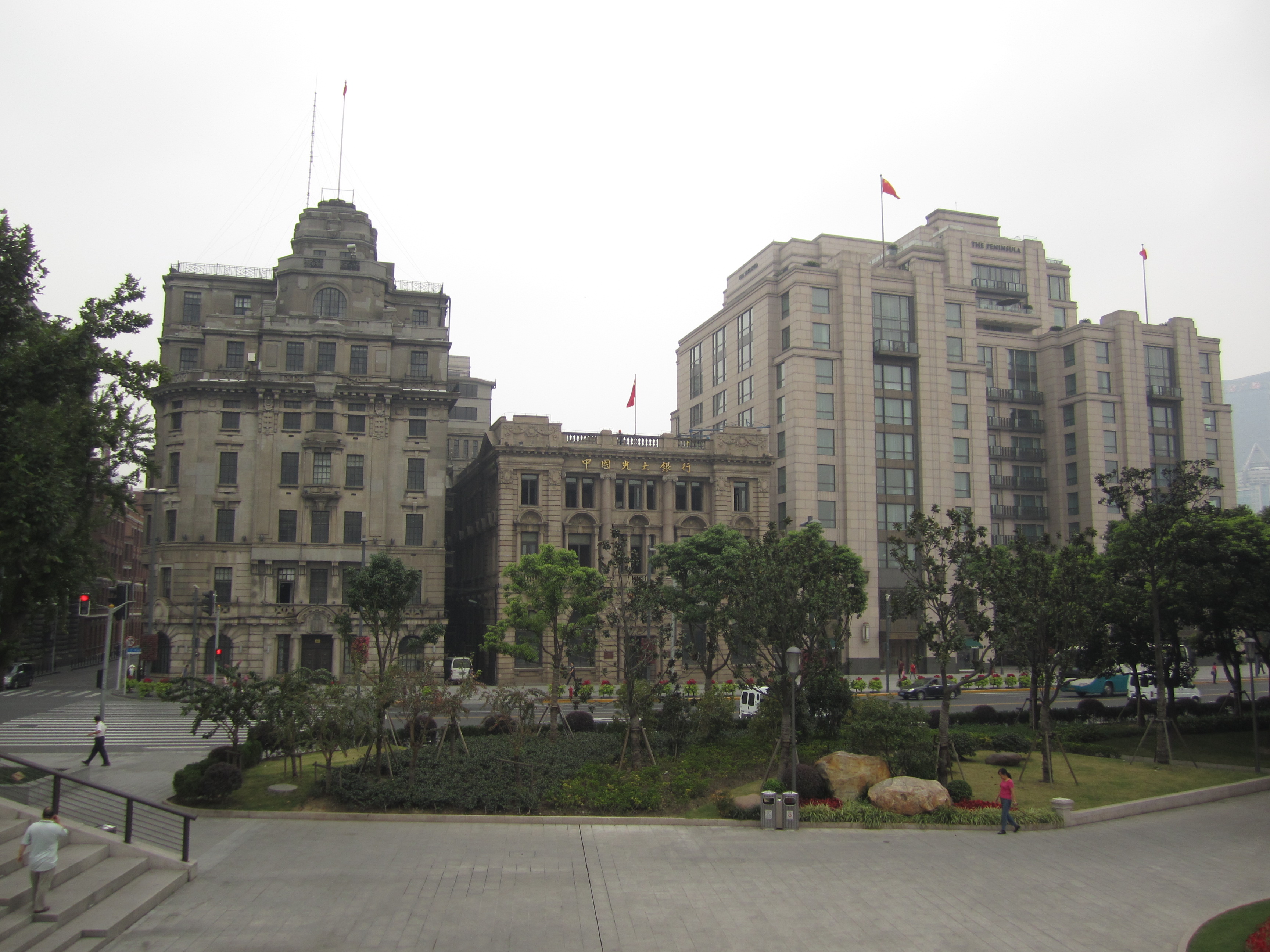 La promenade le long du Bund, longue de 1.5km, a été surélevée et est devenue la balade dominicale favorite des habitants de Shanghai. On oublierait presque qu'on est en Chine avec cette rangée d'immeubles de style occidental des années 1930. On croise notamment la Banque de Chine (le bâtiment avec le logo rouge tout en haut), la maison des Douanes (celle avec l'horloge en haut - copiée sur celle de Westminder) et la Shanghai Pudong & Developement Bank.