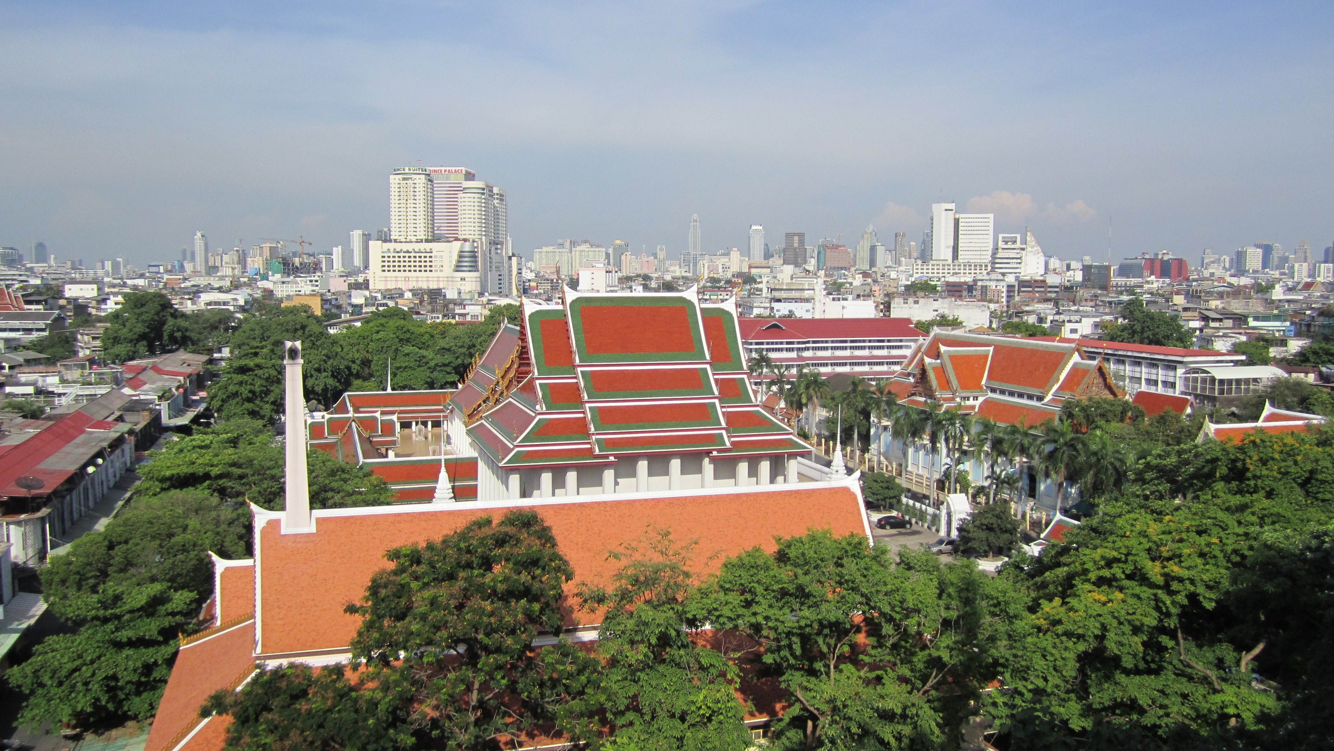 Rien de très exceptionnel pour ce petit temple posé sur une colline artificielle de 80m de haut, mais il offre une belle vue sur l’intérieur de Bangkok.