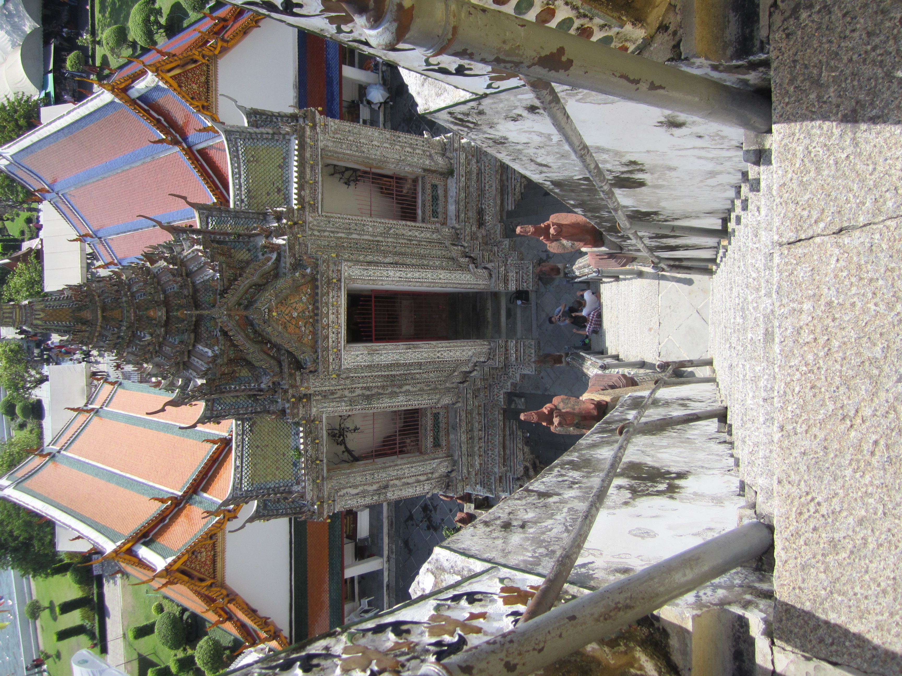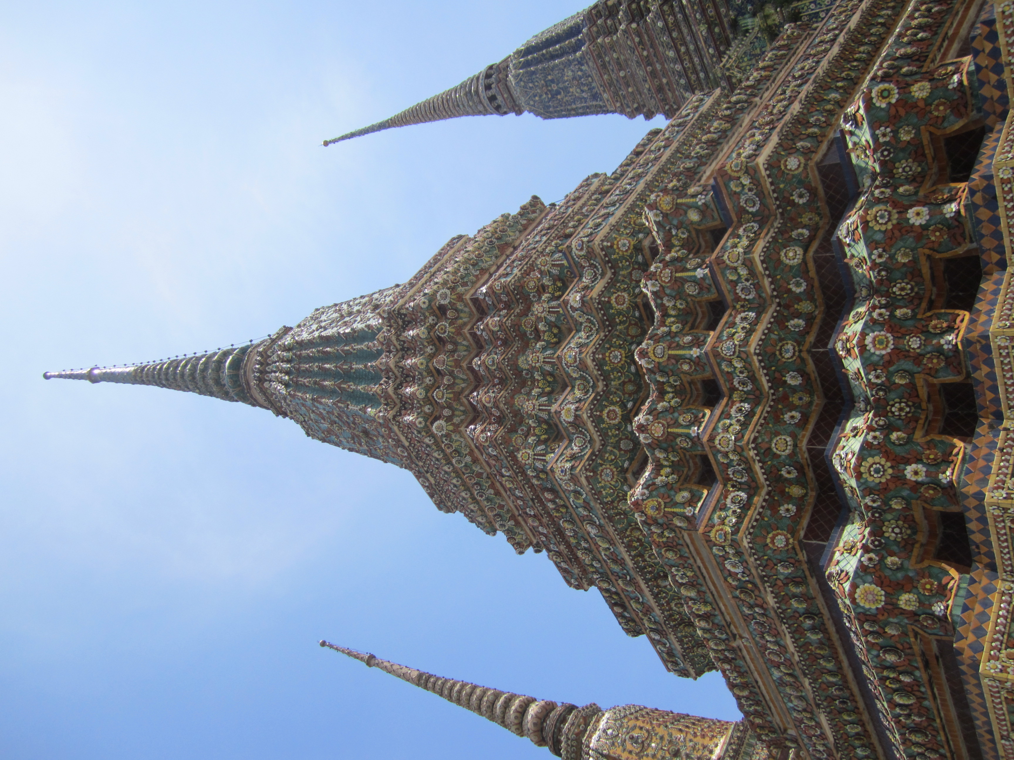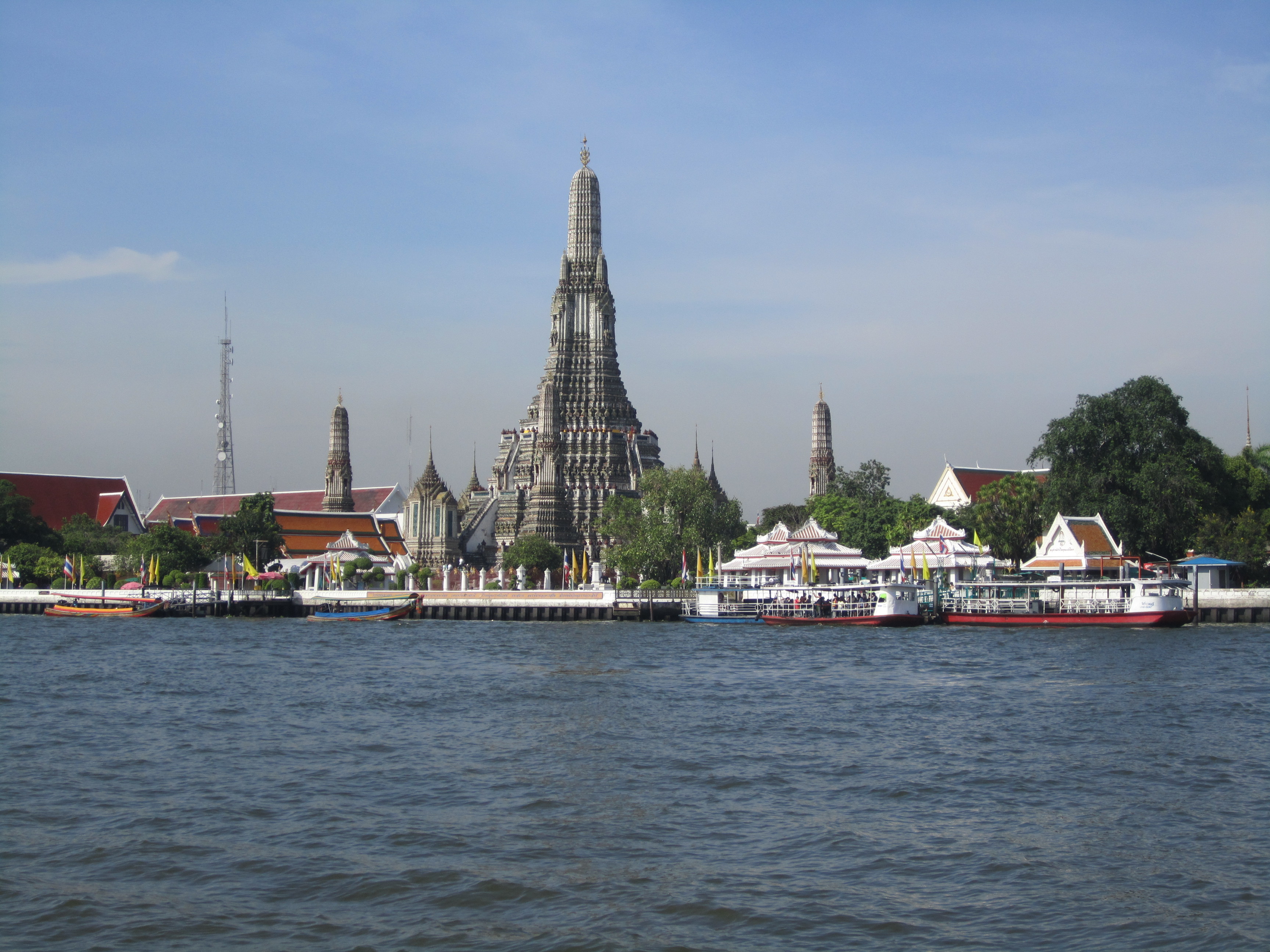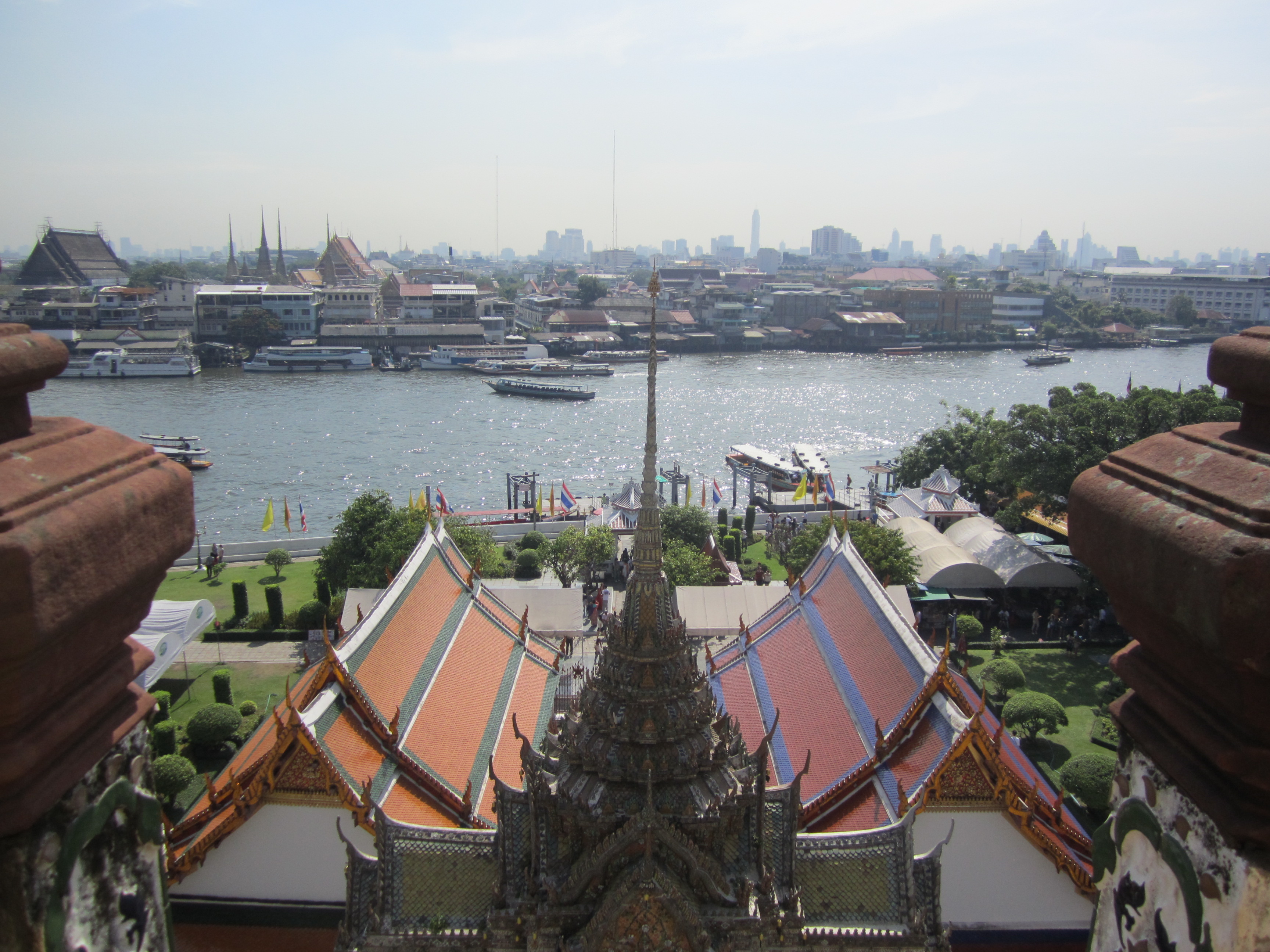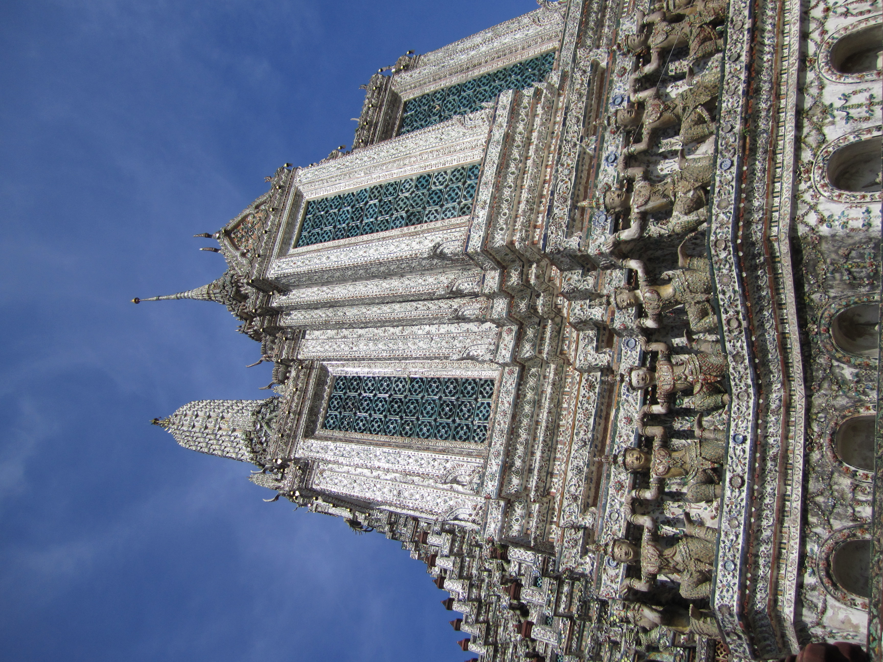 Il se trouve de l’autre côté du fleuve, Chao Phraya, en face du Wat Phra Kaeo. Symbole emblématique de Bangkok, on retrouve sa silhouette sur certaines pièces de monnaie. Ici, point de dorure clinquante, le prang principal, haut de 114m, est extraordinaire, totalement recouvert de mosaïques de porcelaine. Le premier niveau est facilement accessible mais l’escalier pour aller au 2nd niveau est carrément raide. Mais la vue une fois en haut est magnifique. On remarque facilement Wat Phra Kaeo de l’autre côté du fleuve et on peut également voir le trafic des bateaux. La redescente fait presque peur !