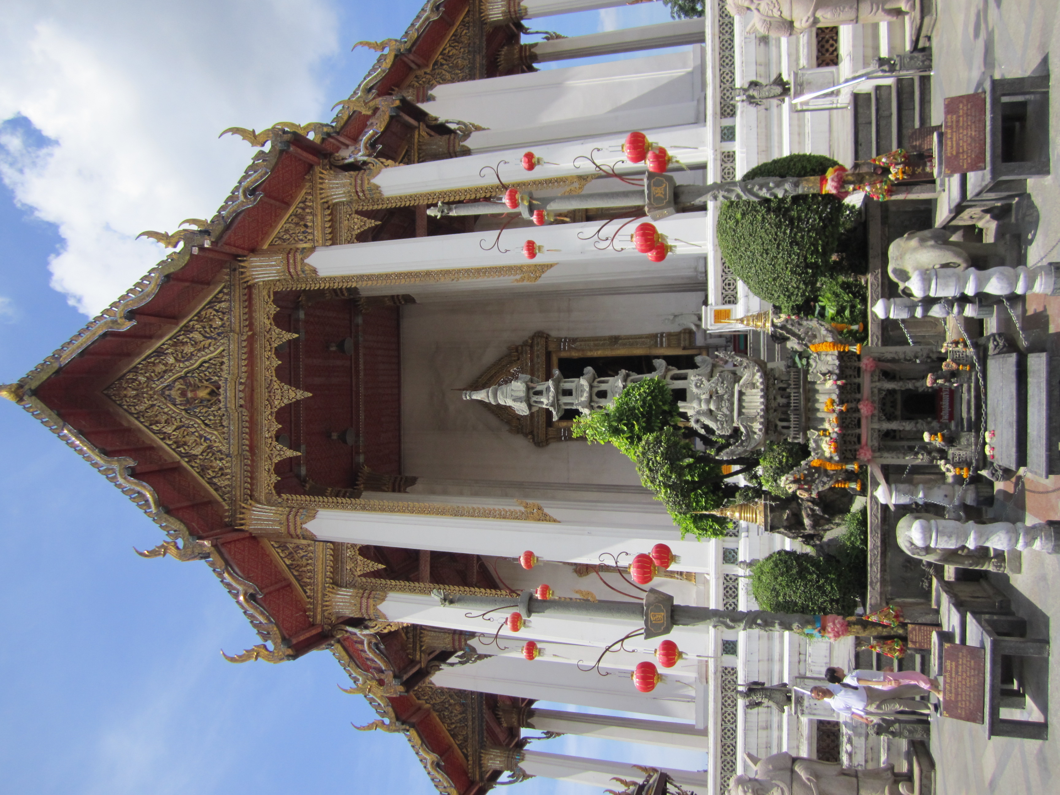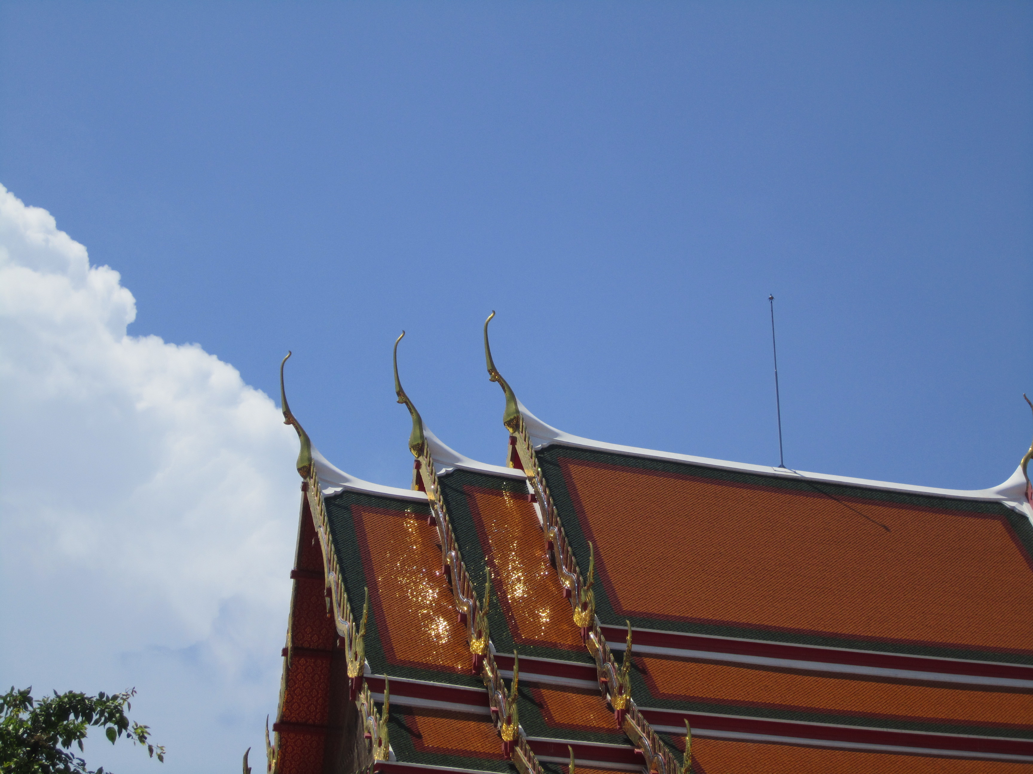 Comme dans tous les pays d’Asie, une des principales attractions du pays, ce sont les temples. Après en avoir vu en Chine, en Indonésie et en Corée (tous différents), je m'attaque à ceux de Thaïlande. Autant dire qu’ils sont encore différents des autres pays. Les toits sont superposés, ornés de doré avec des tuiles rouges flashy. On a l’impression que c’est ultra kitch, mais c’est comme ça !