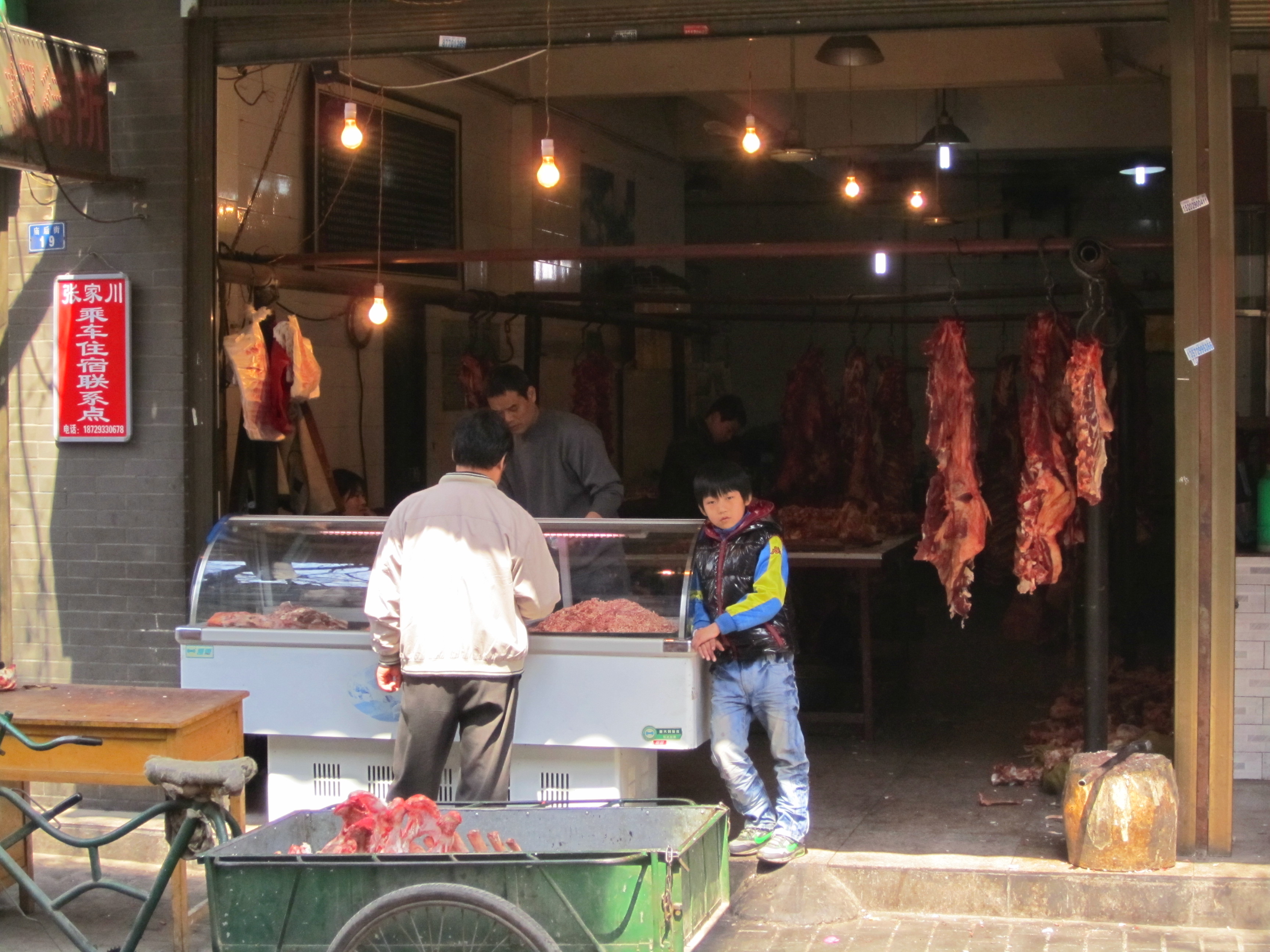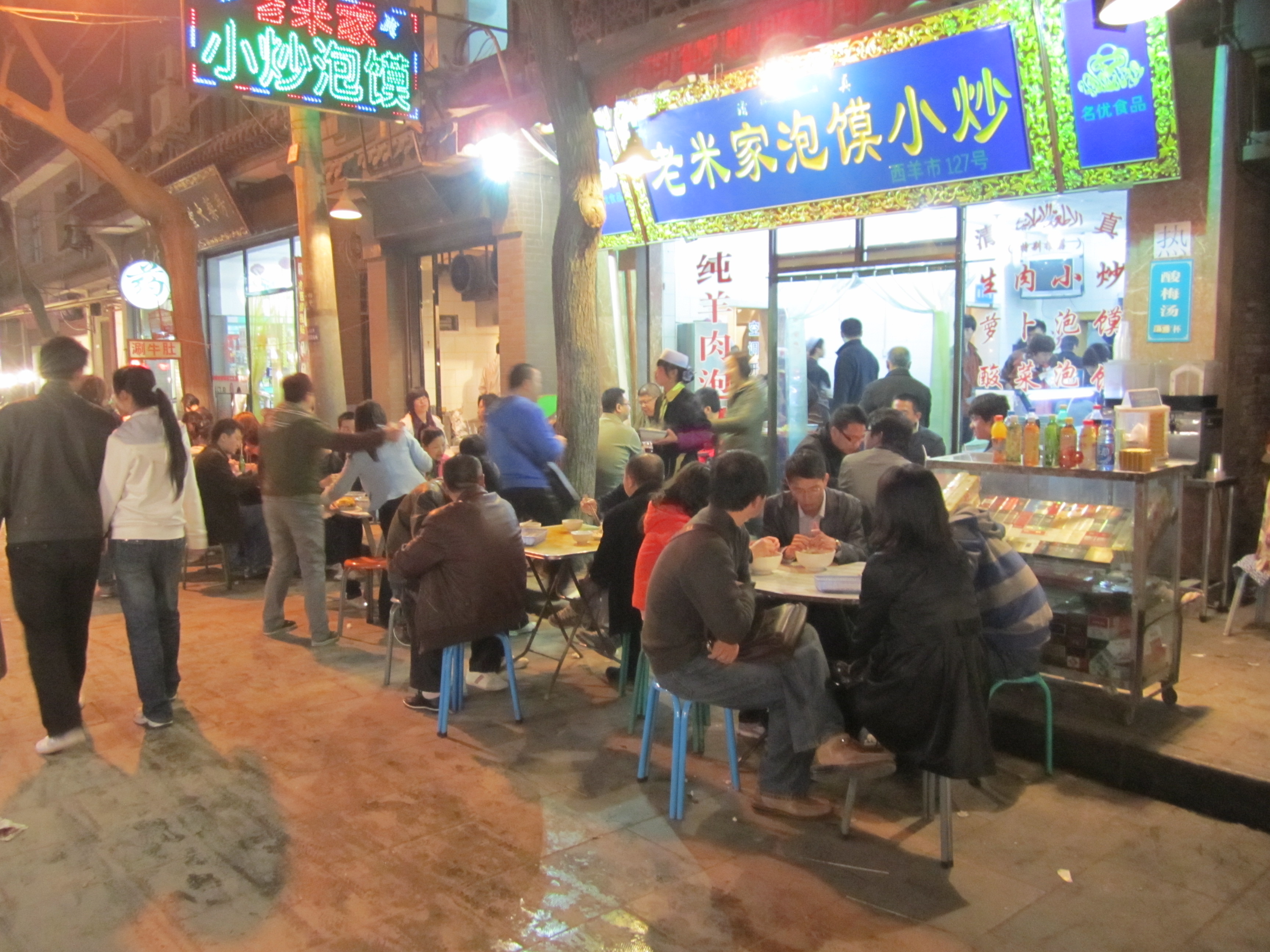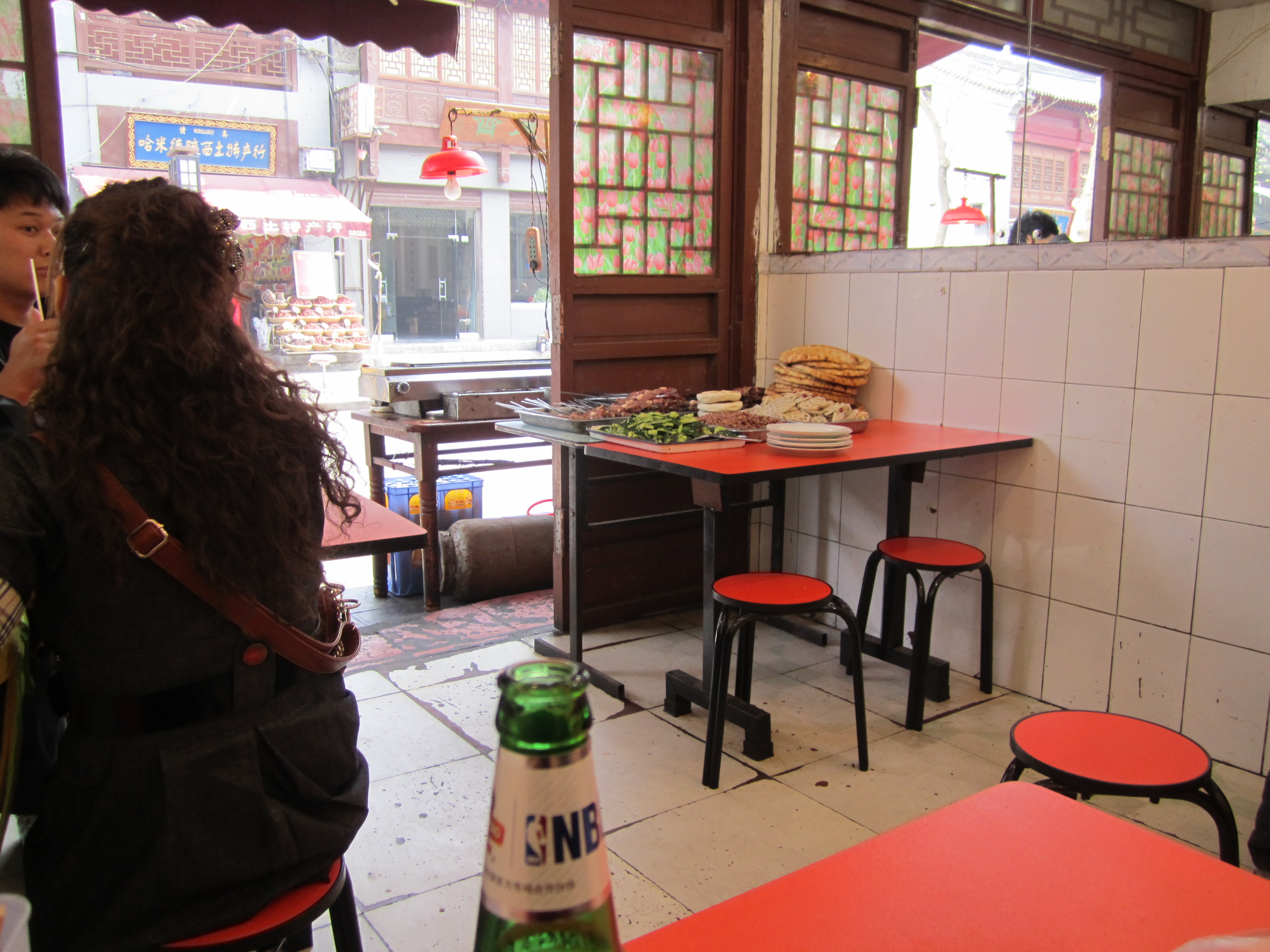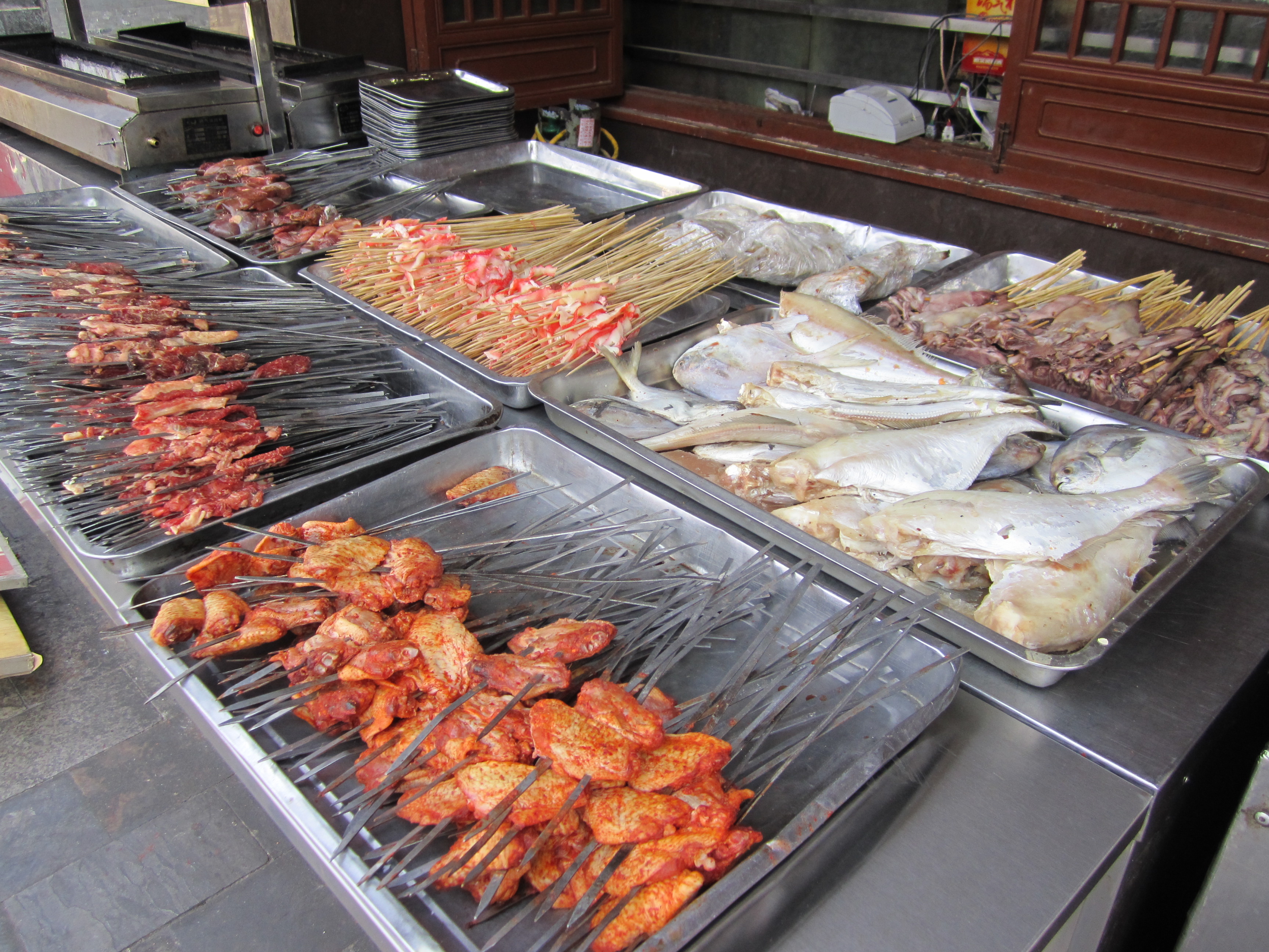 Mais il n'y a pas que de quoi se régaler les papilles dans ce quartier, on trouve aussi des boutiques fabriquant le nécessaire pour cuire les brochettes (les taules, les backs, les ventilateurs), des vendeurs de souvenirs (toute une ruelle leur est dédiée), et euh … ben en fait on trouve surtout à manger ! Mais au delà de ça, je n'ai vraiment plus l’impression d’être en Chine par moment, tellement la vie, l’ambiance me rappellent le Maroc.