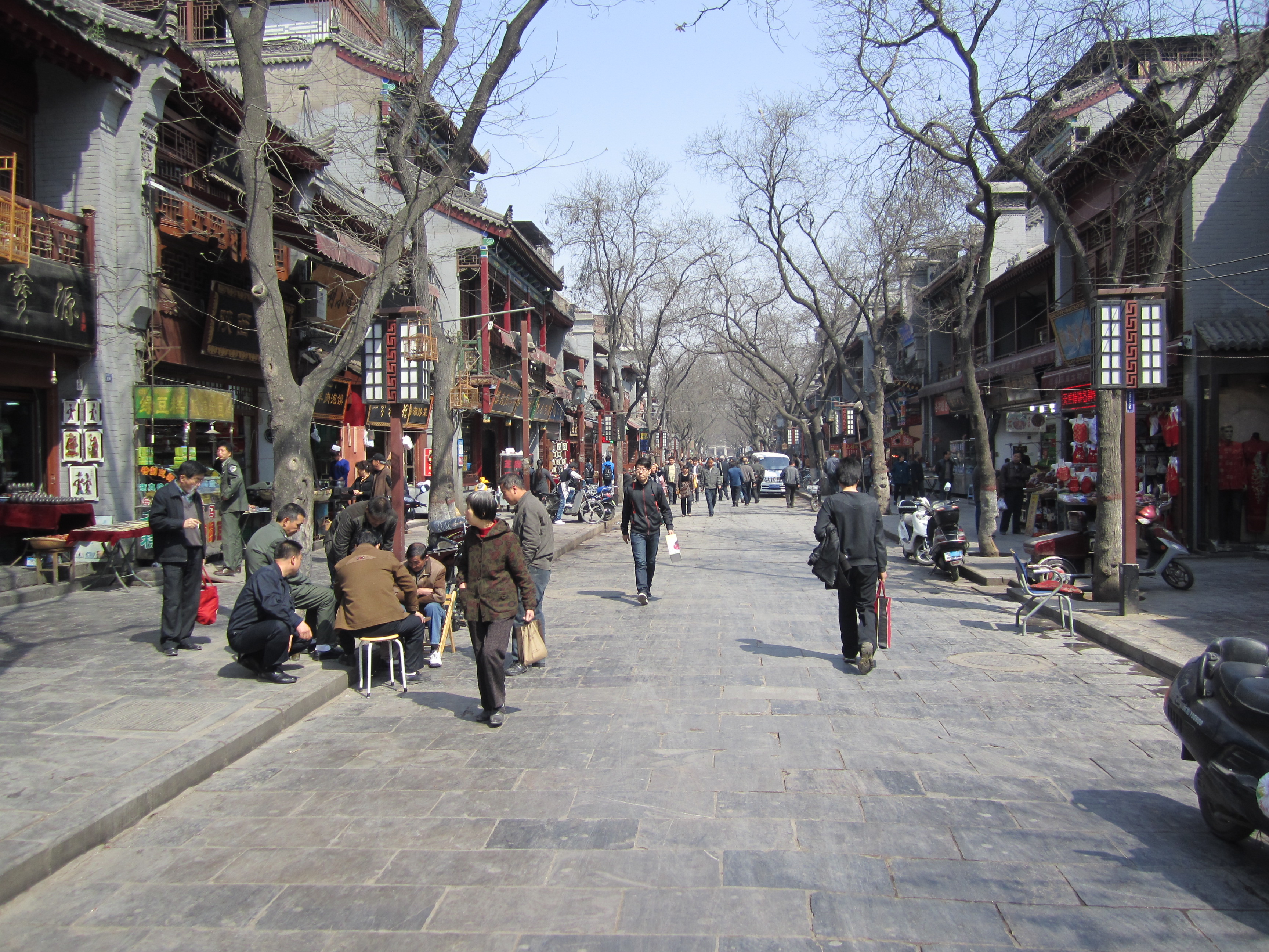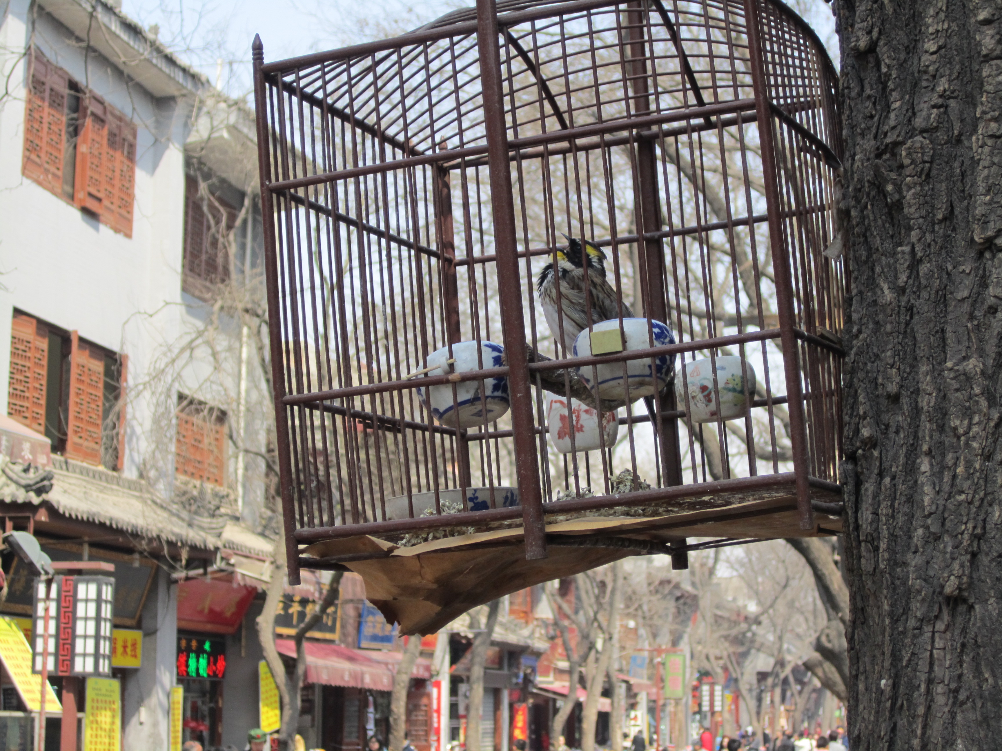 La rue principale du quartier s’appelle Beiyuanmen. Entièrement pavée, elle est très large mais le quartier prend toute son ampleur dès qu’on prend la ruelle Xiyang Shi qui file vers l’ouest. Complètement encombrée (mais moins que pour le marché des oiseaux quand même), il y a des vendeurs de chaque côté.
