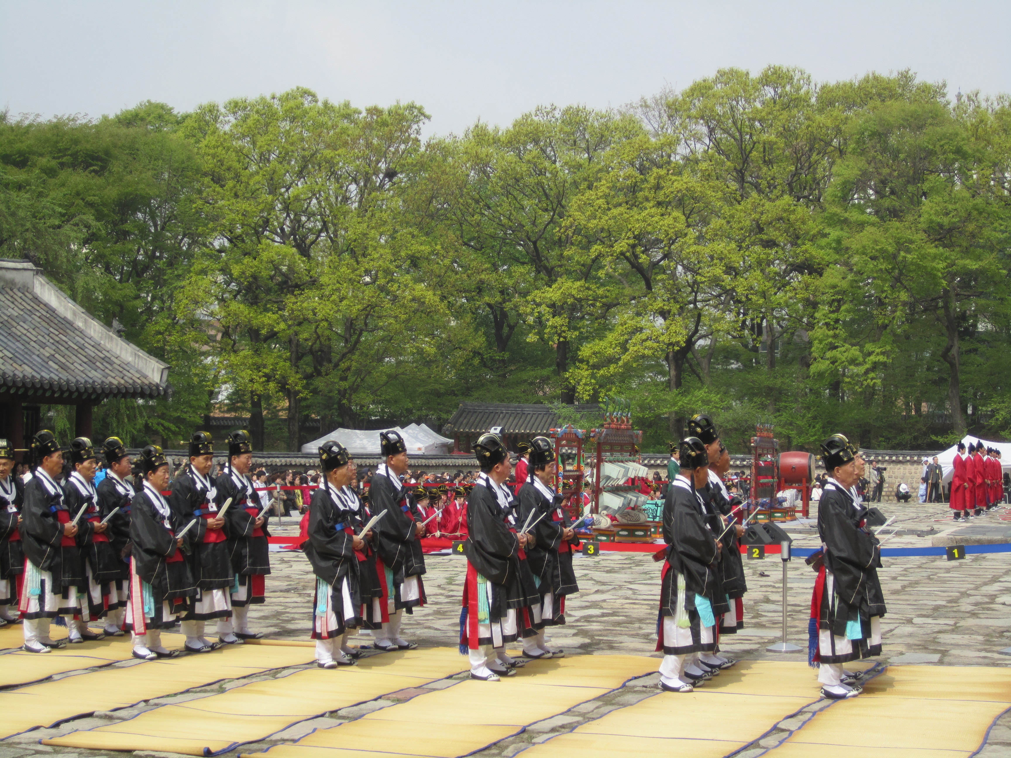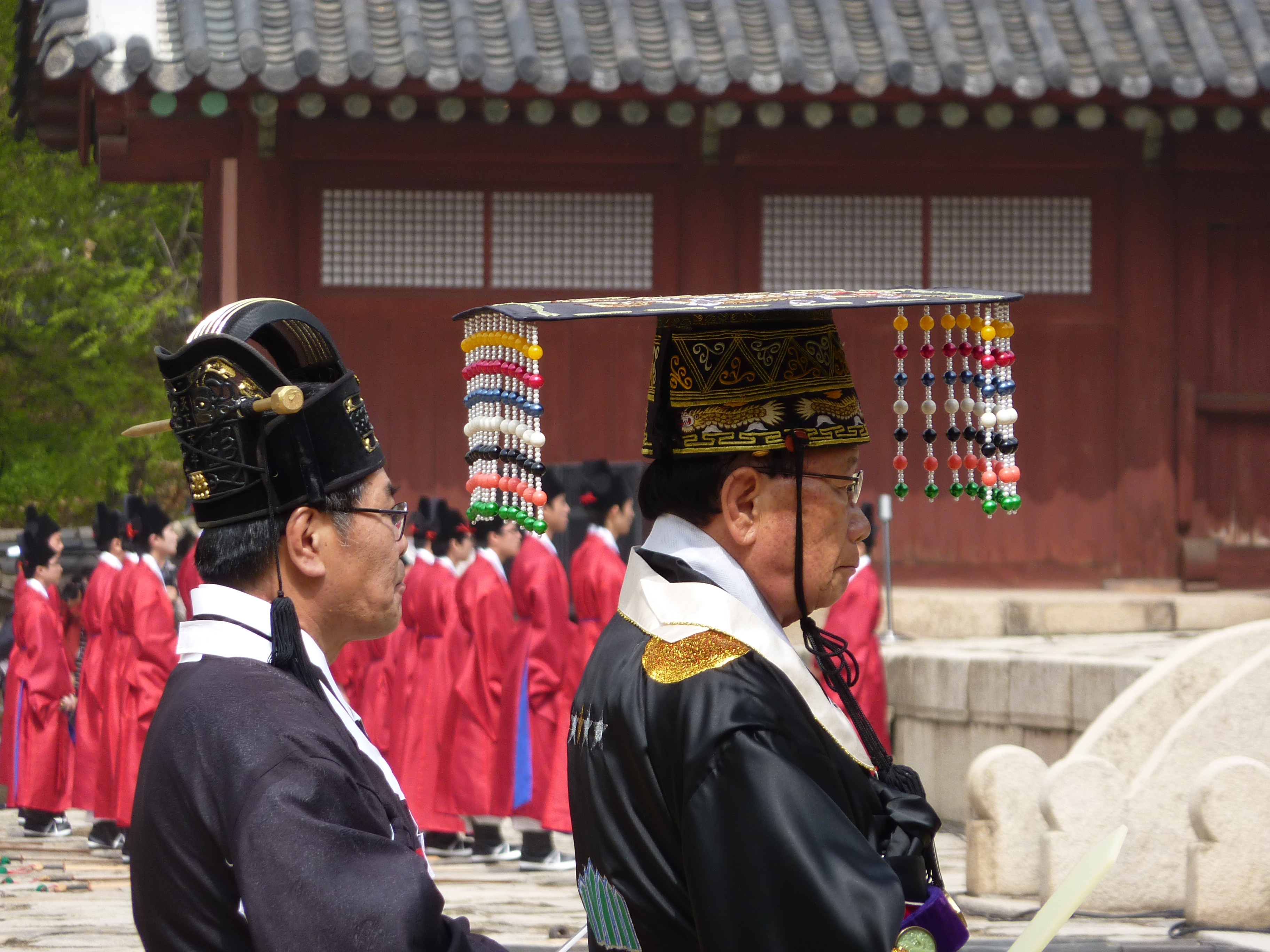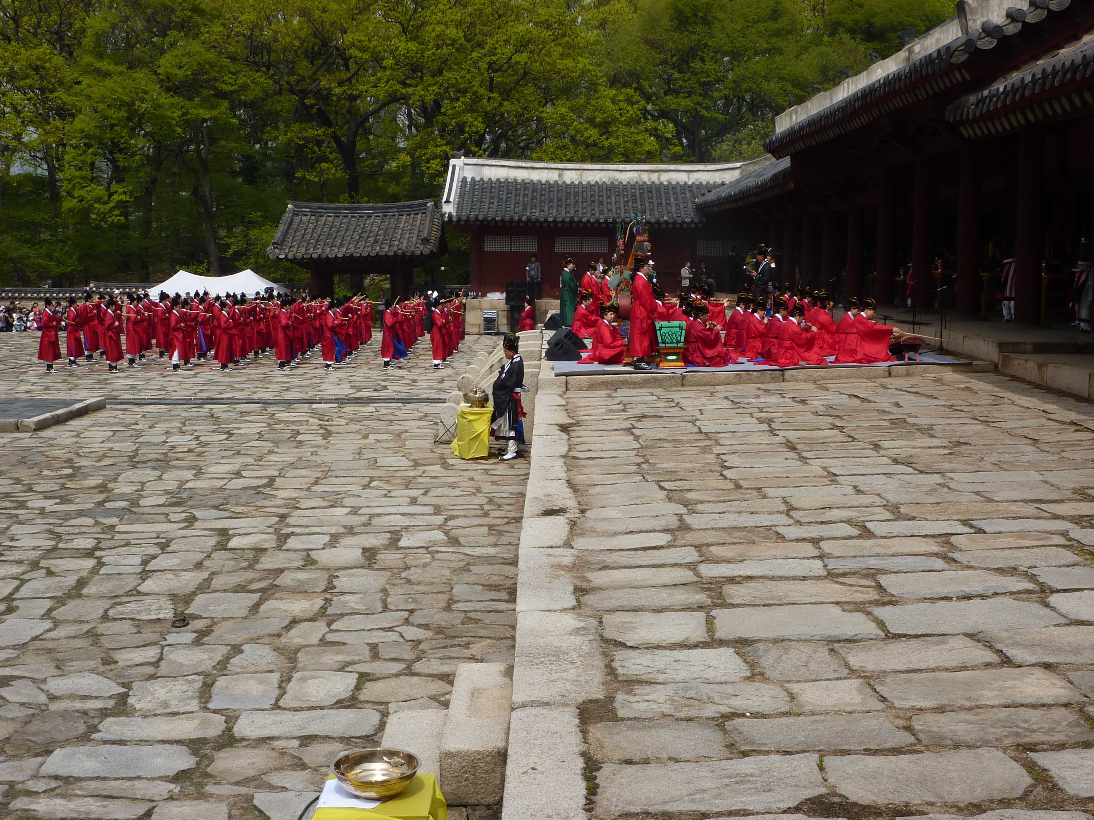 A notre arrivée à Jongmyo, on a d'abord été surpris par tout ce monde! Mais, 1er dimanche du mois de mail oblige, c'est la cérémonie confucéenne du festival Jongmyo Daeje qui a lieu chaque année (et qui est inscrit au patrimoine de l'UNESCO depuis 2001 - quand même !). Ce rituel permet de découvrir la beauté des costumes de la cour en écoutant et admirant musique et danses traditionnelles.Ce qui nous permet de rentrer gratuitement!