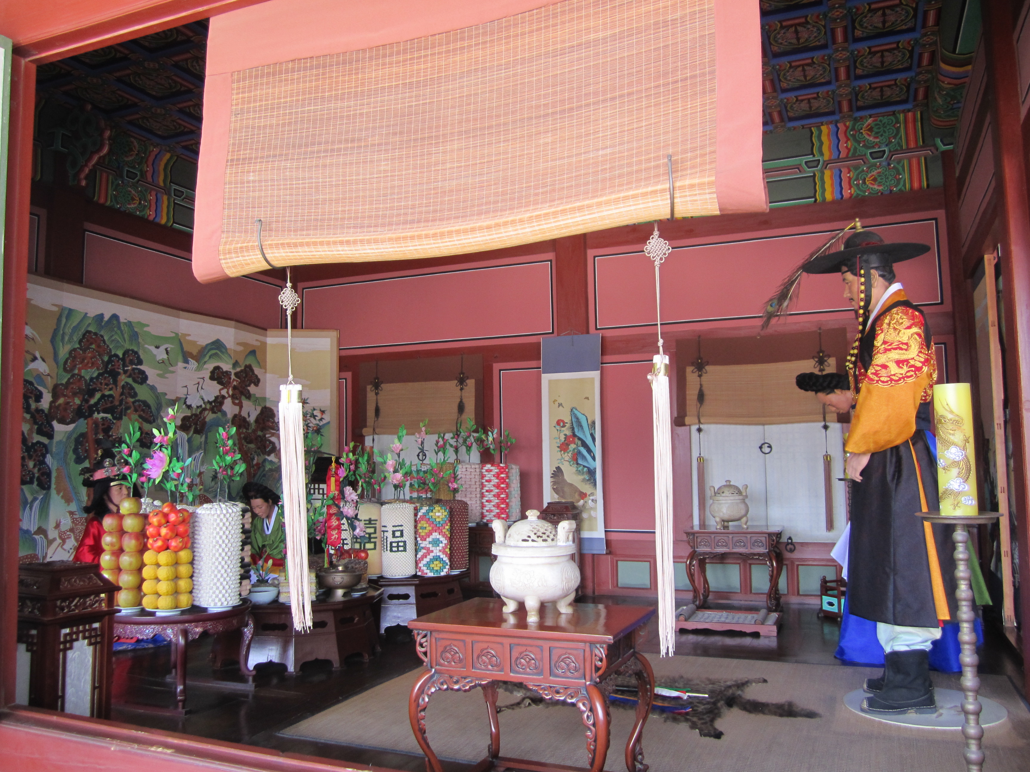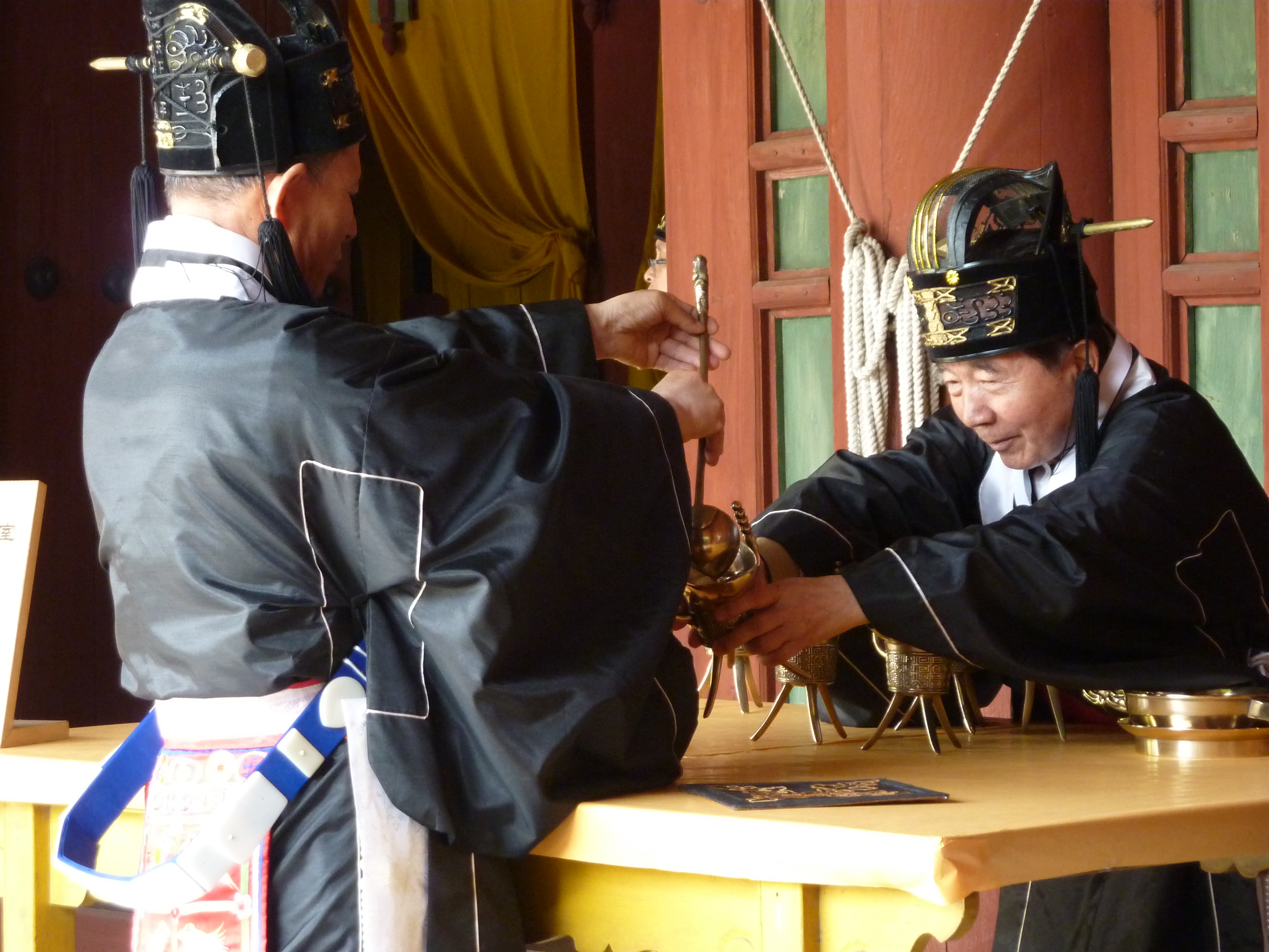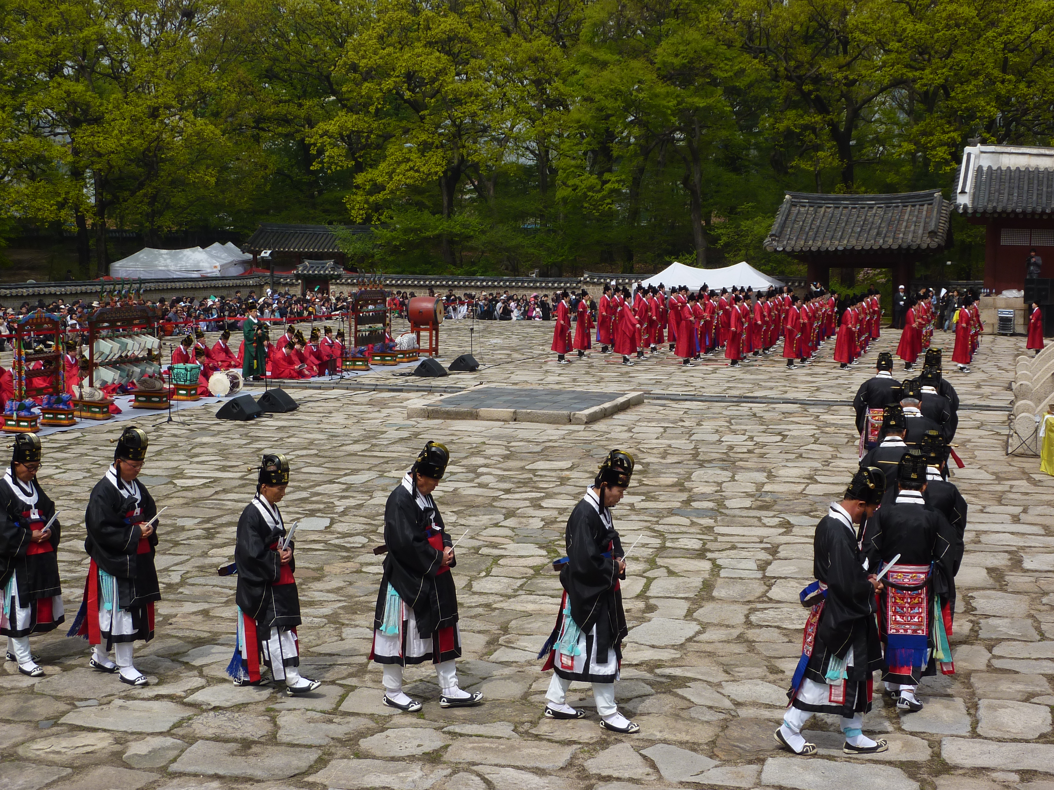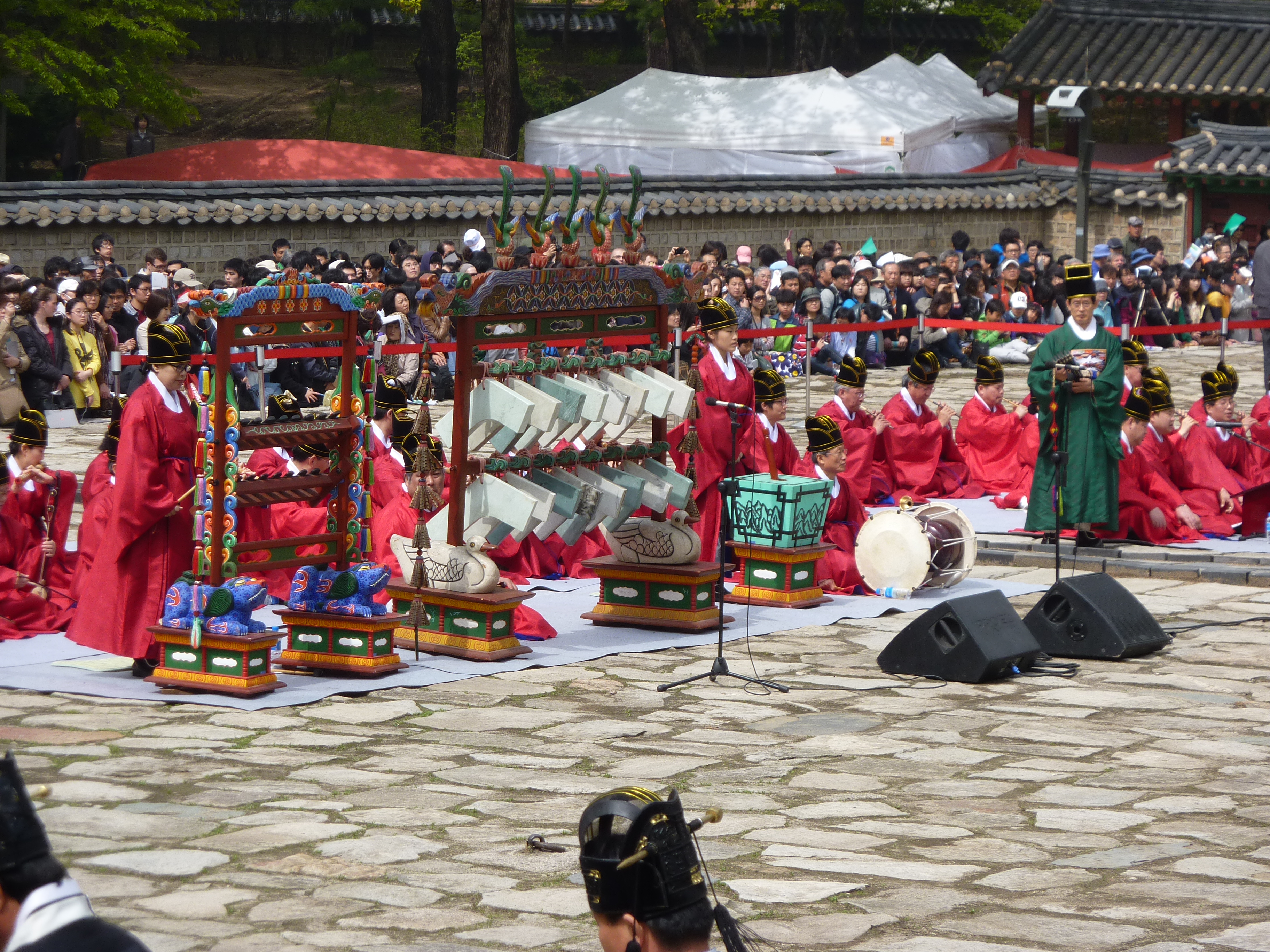 A notre arrivée à Jongmyo, on a d'abord été surpris par tout ce monde! Mais, 1er dimanche du mois de mail oblige, c'est la cérémonie confucéenne du festival Jongmyo Daeje qui a lieu chaque année (et qui est inscrit au patrimoine de l'UNESCO depuis 2001 - quand même !). Ce rituel permet de découvrir la beauté des costumes de la cour en écoutant et admirant musique et danses traditionnelles.Ce qui nous permet de rentrer gratuitement!