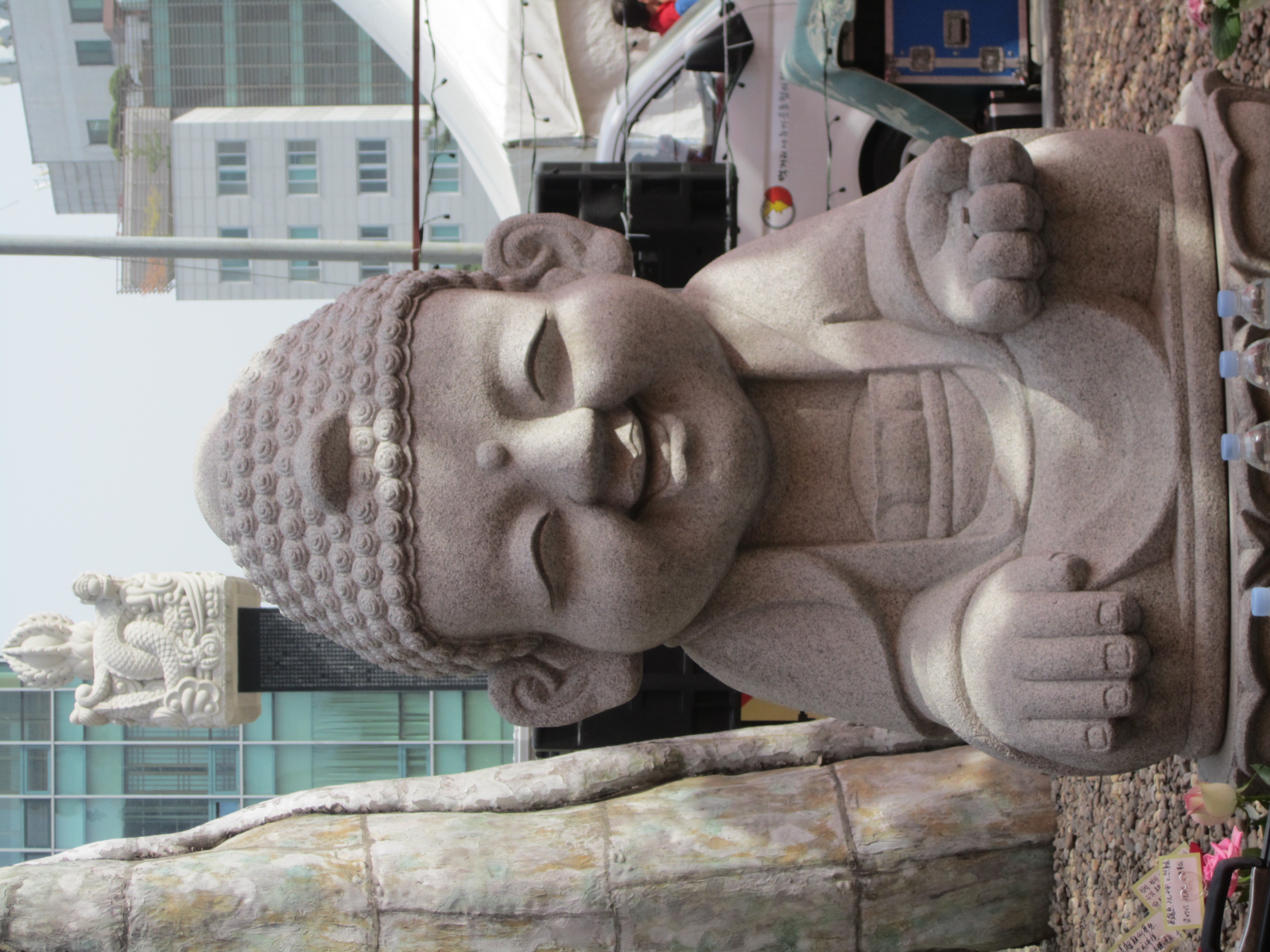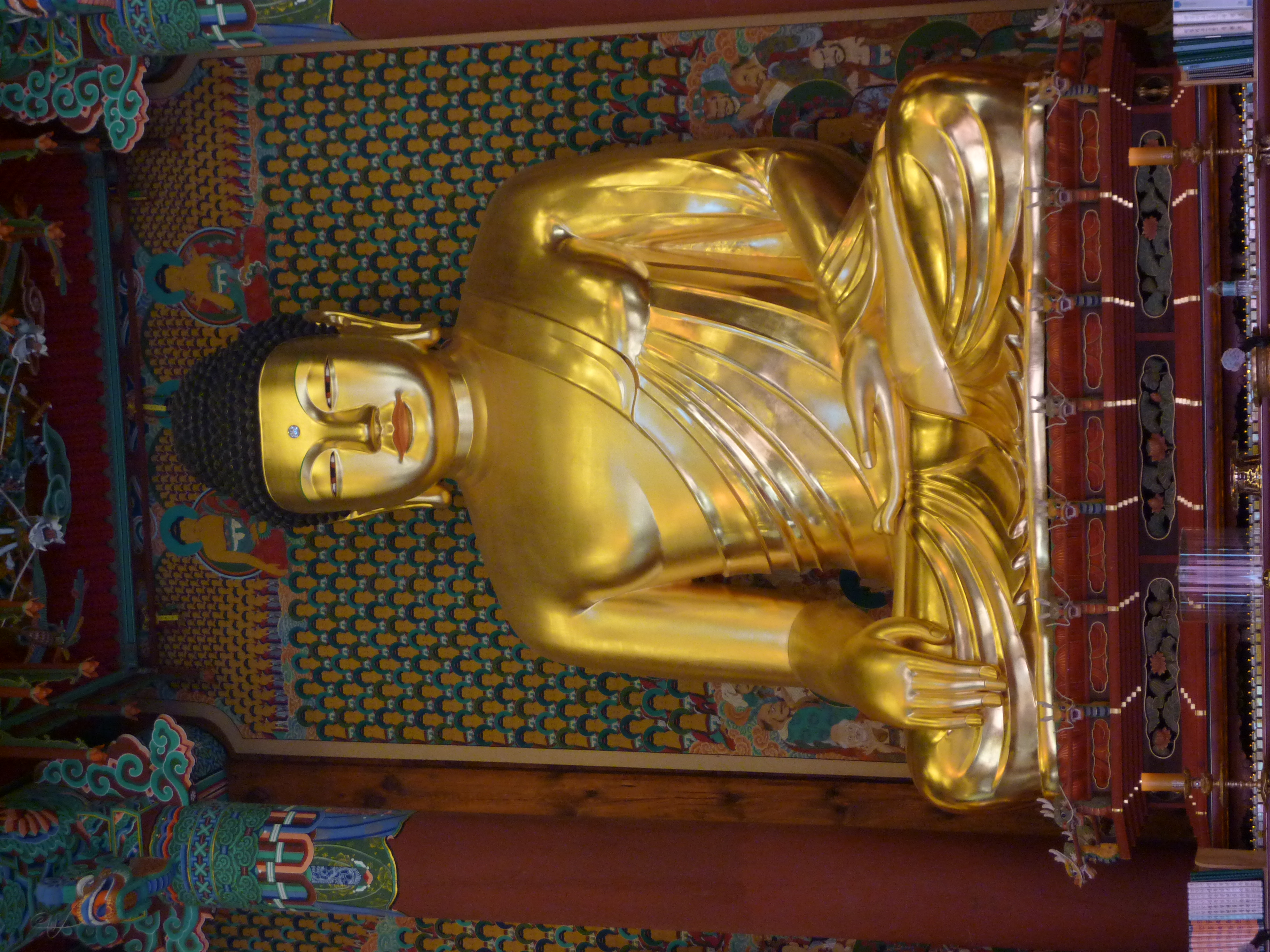 En redescendant vers la sortie, on tombe nez à nez sur une statue de 23 mètres de haut, Mireukdaebul, c'est la plus grande statue de Bouddha en Corée. Pendant 10 ans, plus de 10 000 croyants ont participé à la construction de cette statue.