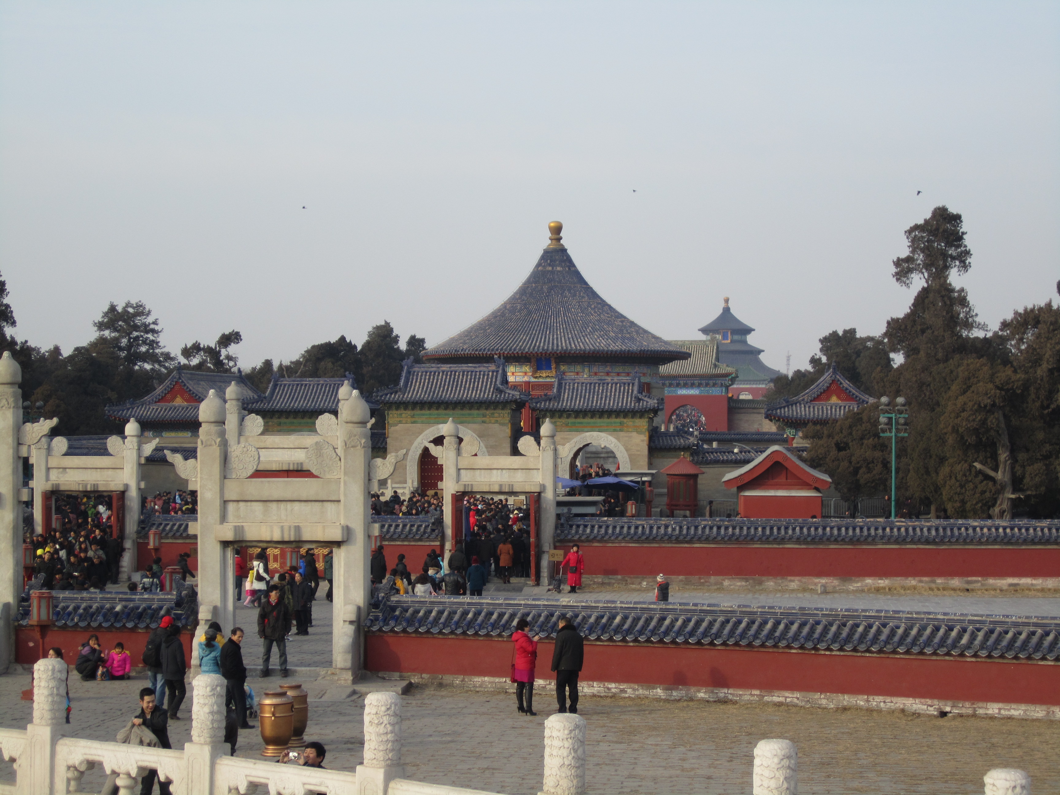 Le jour du nouvel an, Elsa avait entendu dire que les Chinois se rassemblaient au Temple du Ciel pour une grande cérémonie. C’était le jour idéal pour y aller. En arrivant sur place, y’avait énormément de monde; il était tous agglutinés autour de la salle des prières pour de bonnes moissons, le bâtiment le plus haut du parc. Le temple du Ciel est en fait une sorte de complexe de plusieurs bâtiments disposés dans le parc Tiantan.