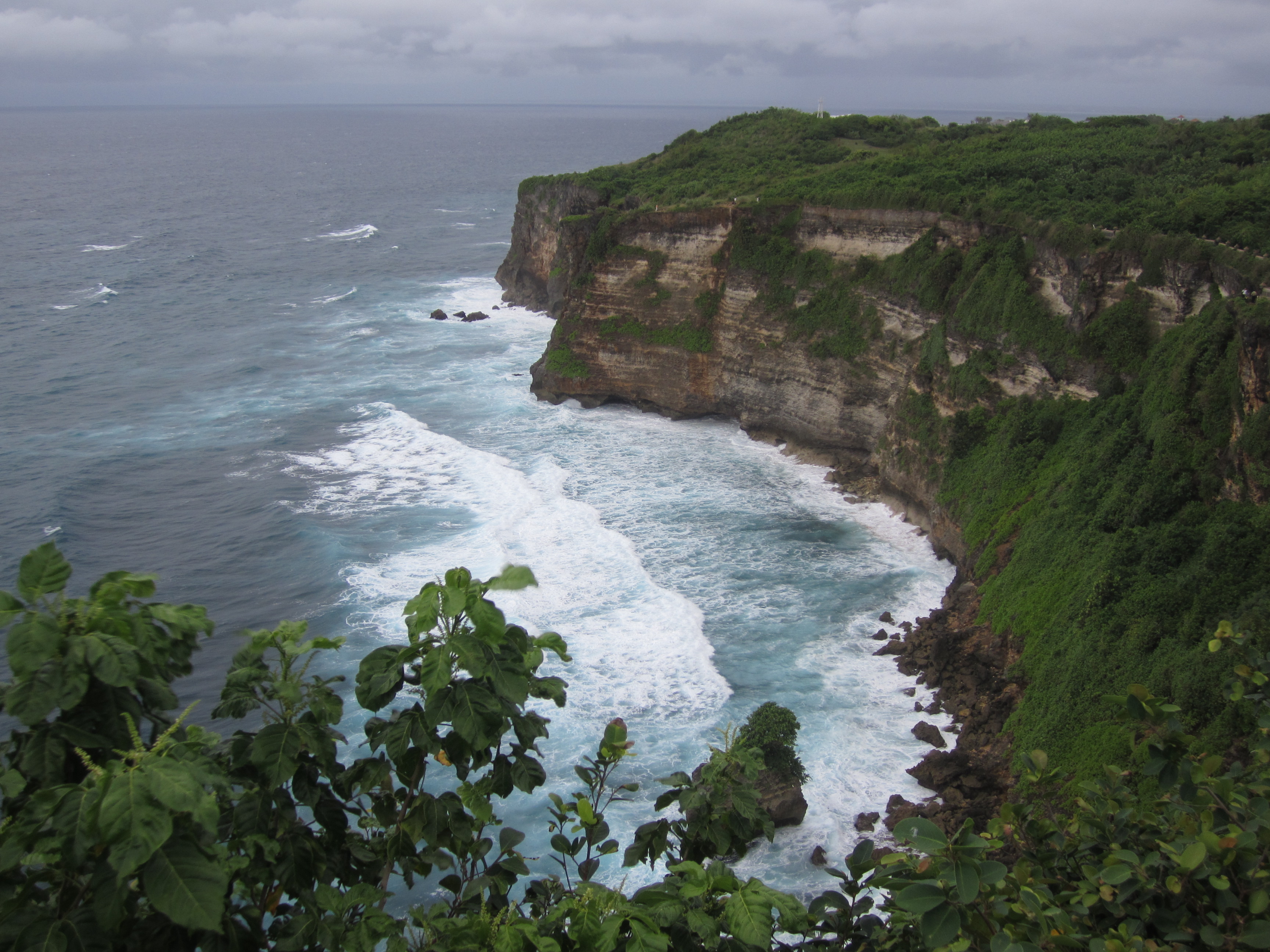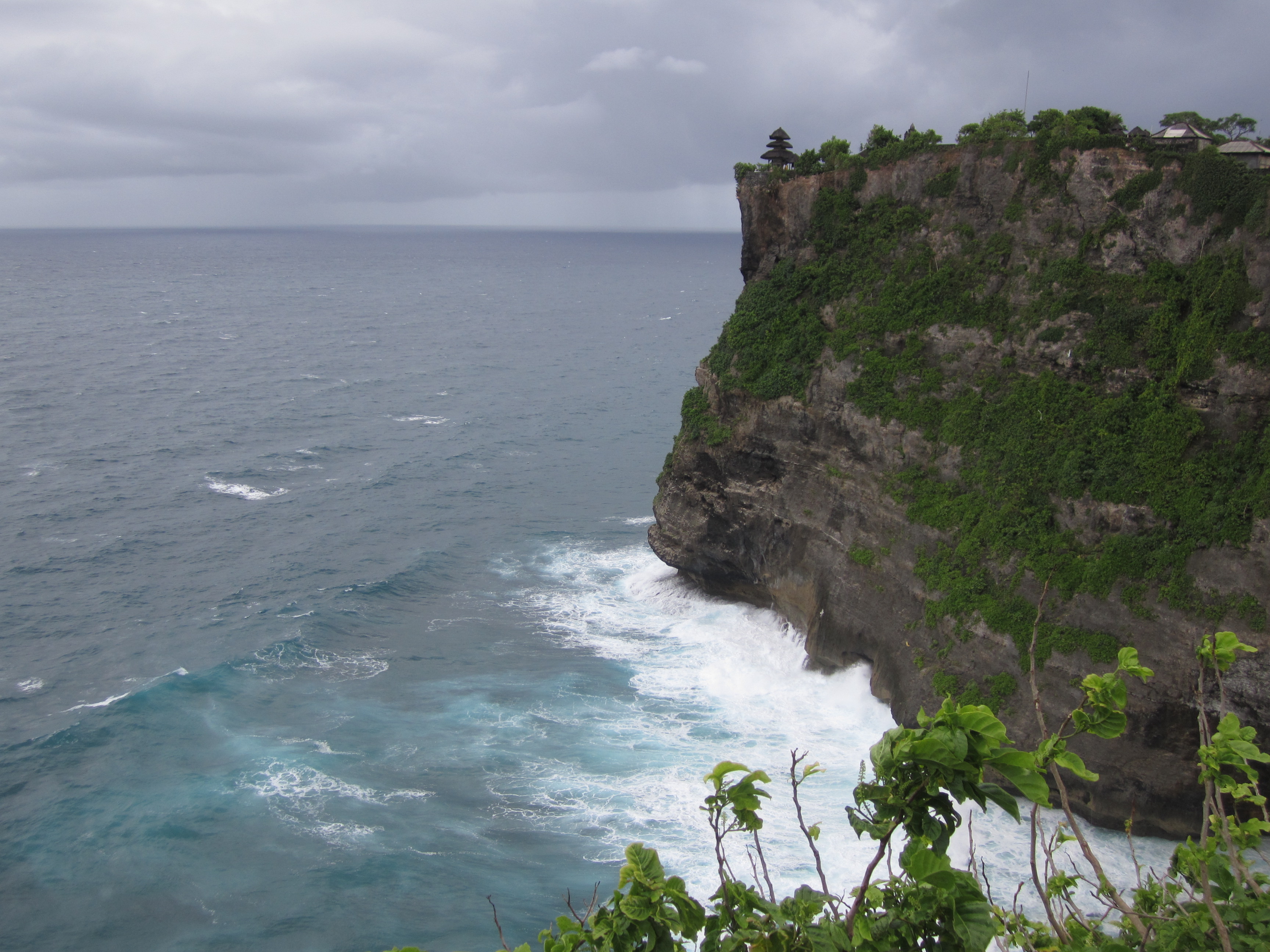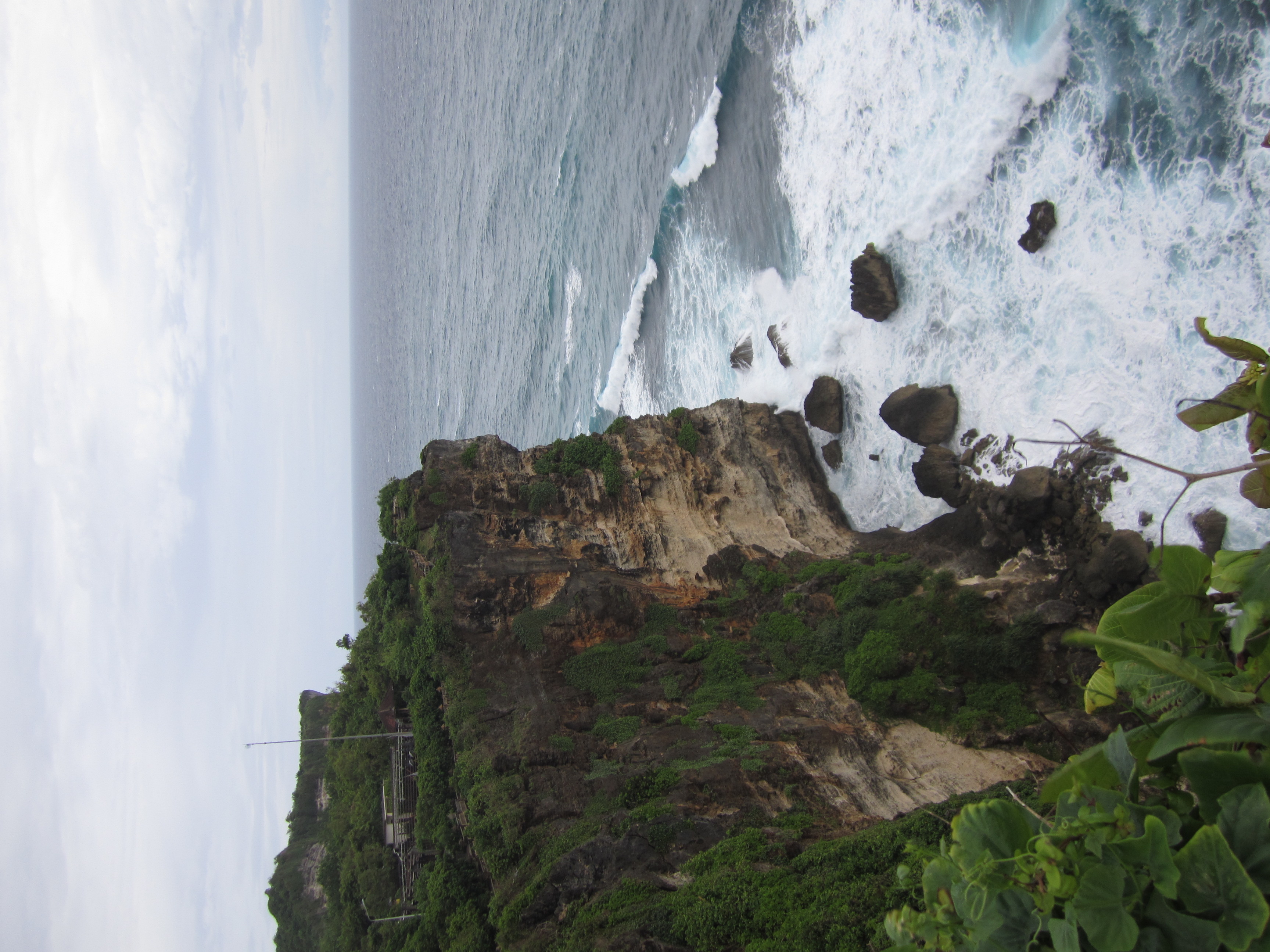 1h30 plus tard, on arrive à Ulu Watu. C’est rempli de touristes, plus que sur les autres lieux (sauf pour le Ulun Danu – dont je parle juste après). Ulu Watu c’est un temple perché en haut d’une immense falaise. C’est ce côté là qui est joli et qu’on voit sur toutes les cartes postales. La vue sur la mer turquoise est magnifique. Mais à part ça, rien de vraiment extraordinaire.