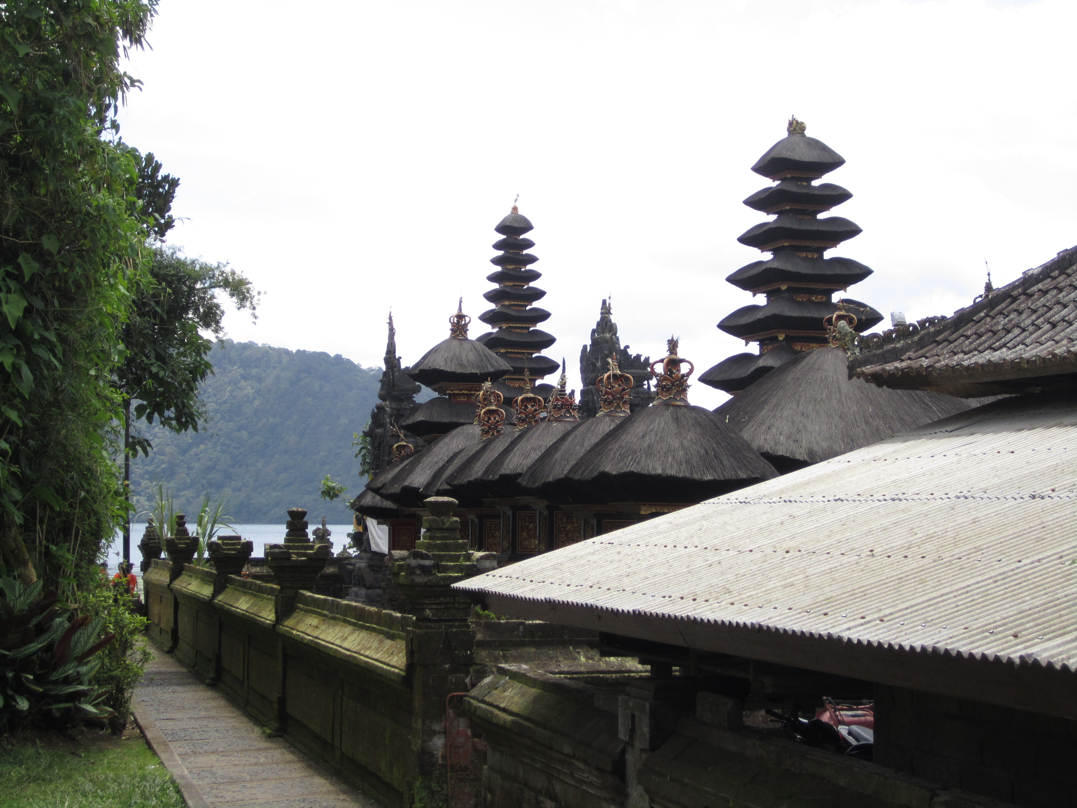 Pendant notre premier séjour à Ubud, on décide d’entamer une journée par la visite du Pura Ulun Danu Bratan, toujours en scooter. Le temps est magnifique et relativement dégagé. Les rizières s’enchainent et les panneaux de signalisation se font toujours aussi rares ou complètement cachés derrière la végétation.