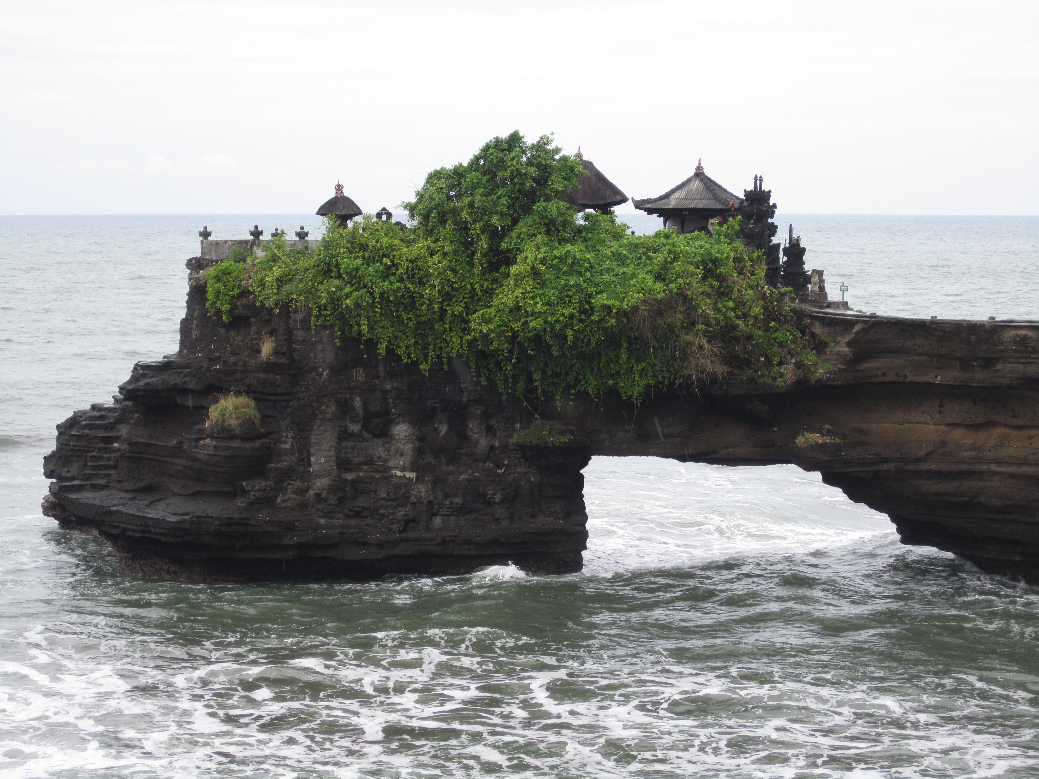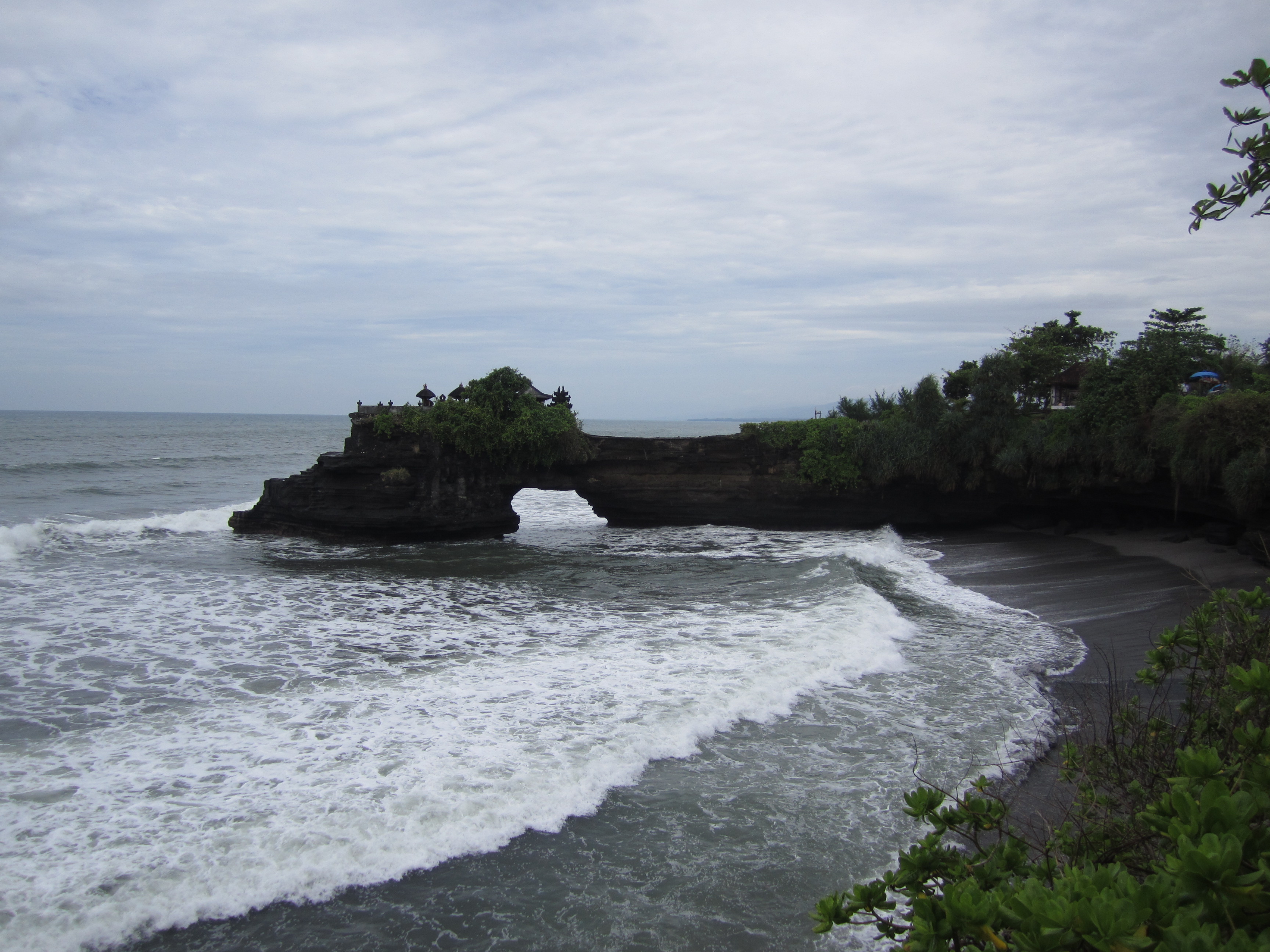Il y a aussi un autre temple, perché sur rocher aussi mais accessible par un pont naturel. Sur le pont, on peut ressentir la force des vagues s’engouffrer dessous et le faire trembler. Au début, je pensais que c’était le tonnerre ! Saisissant.