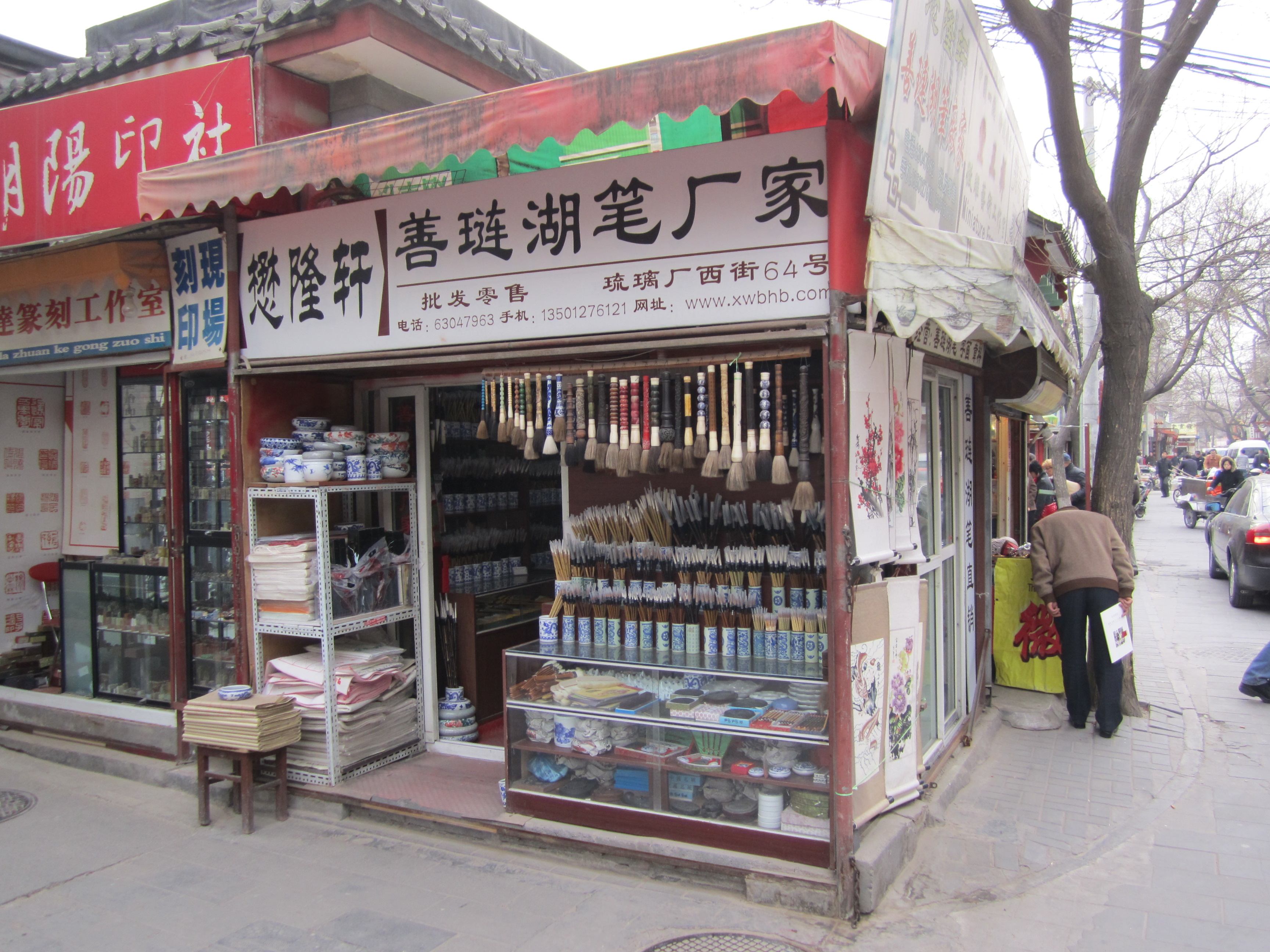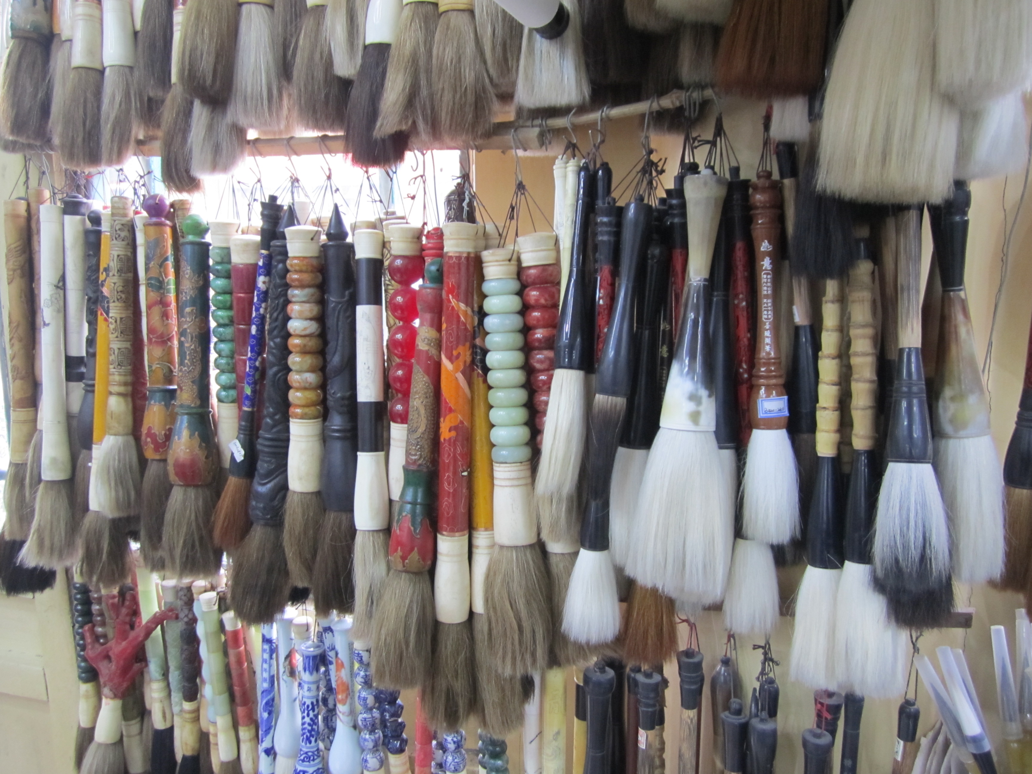On y trouve plein de pinceaux, d’encre, d’œuvres d’art, de papiers de riz, de thé et tout ce qui attirent le touriste. Par contre, point de vendeurs d’iPad 2 à la sauvette.