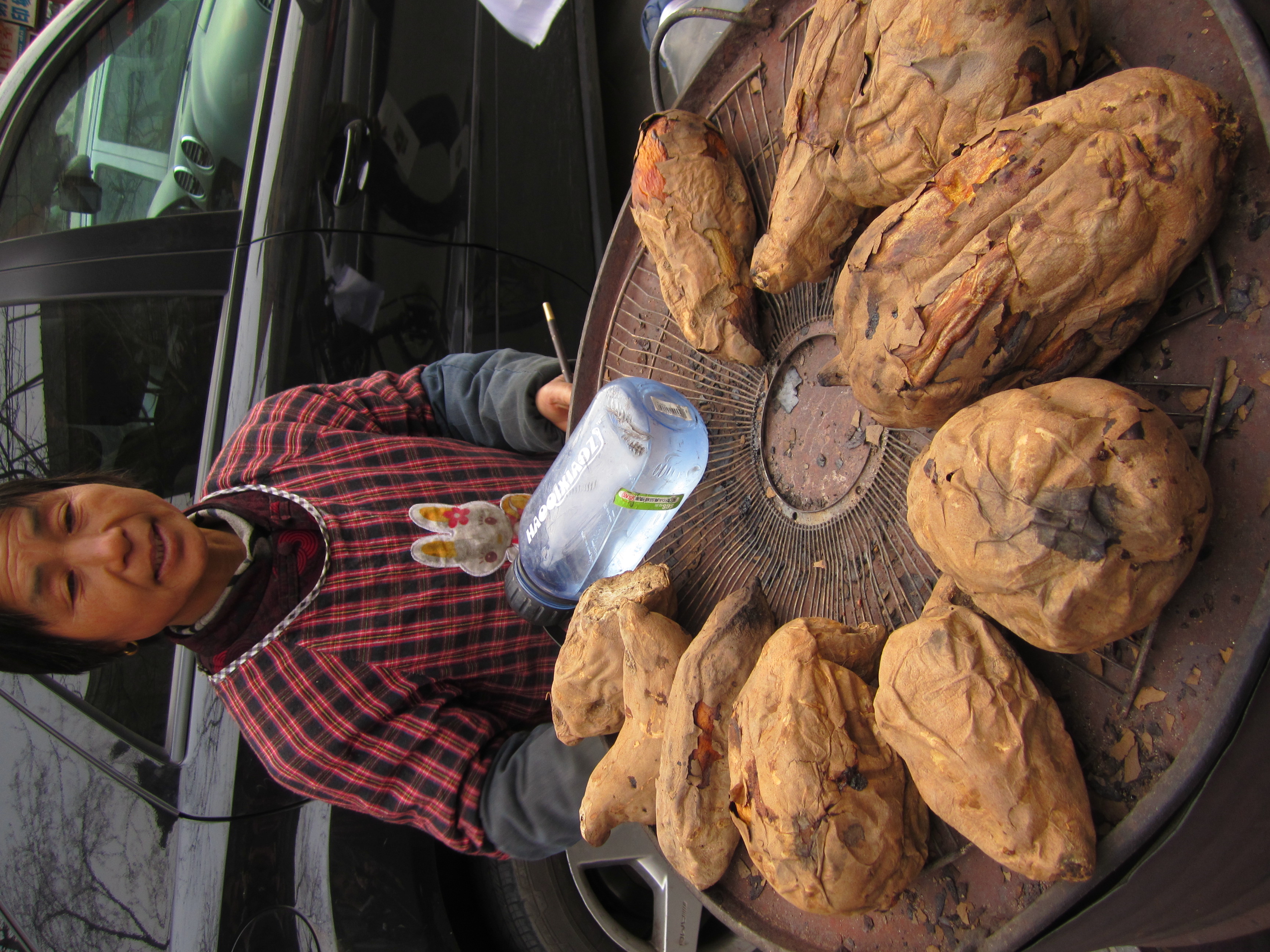 Petite note particulière à la première patate douce que j'ai mangée (c’est le passage #miam). Plein de petits vendeurs, comme cette dame qui fait chauffer ses patates douces, se baladent dans toutes les rues de Beijing. Ils se promènent avec un bidon chauffant sur leur vélo à 3 roues et vendent des patates douces au poids, équipés d'une balance rudimentaire. D'autres vendeurs s'occupent des brochettes, des châtaignes grillées, etc .. mais ça fera l'objet d'un autre billet !