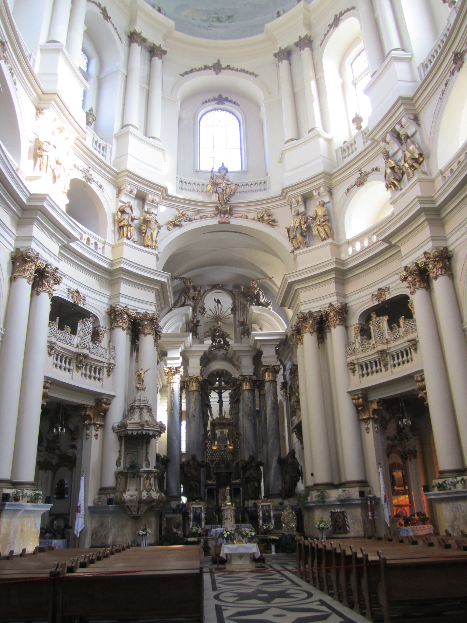 C'est une imposante cathédrale au coeur du centre ville. L'intérieur éblouit par son luxe et son élégance. Les murs blancs sont très sobres et contrastent avec les colonnes ornées de dorures. Mais ça reste assez simple par rapport à l'église qui suit...