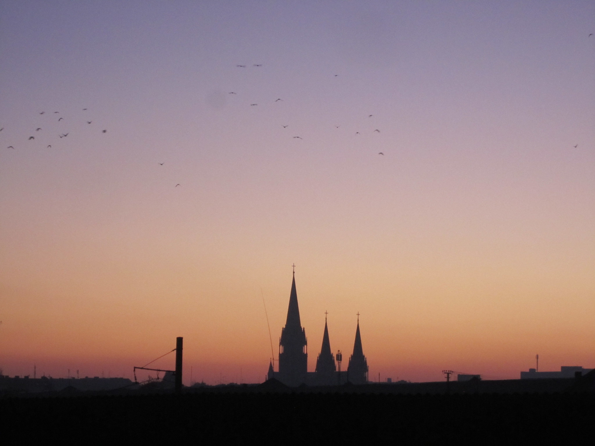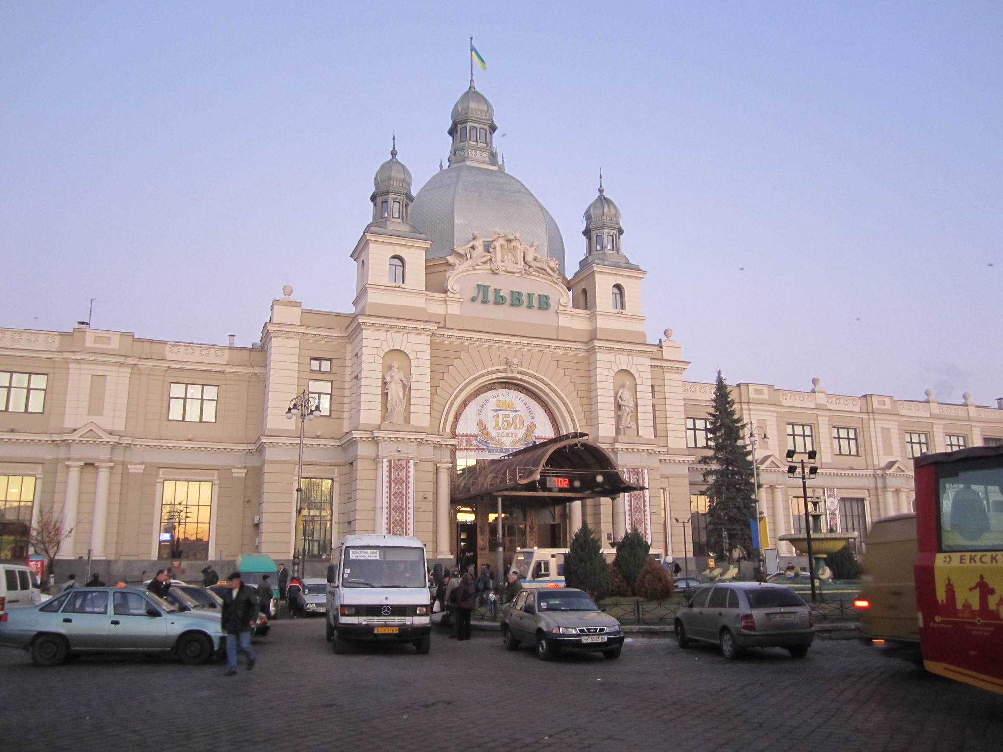 Le train nous a laissé à la gare de Lviv très tôt à 5h du mât, devant un magnifique levé de soleil. En passant, si on ne sait pas lire le cyrillique, le nom de la ville n'est pas transparent: Львів.