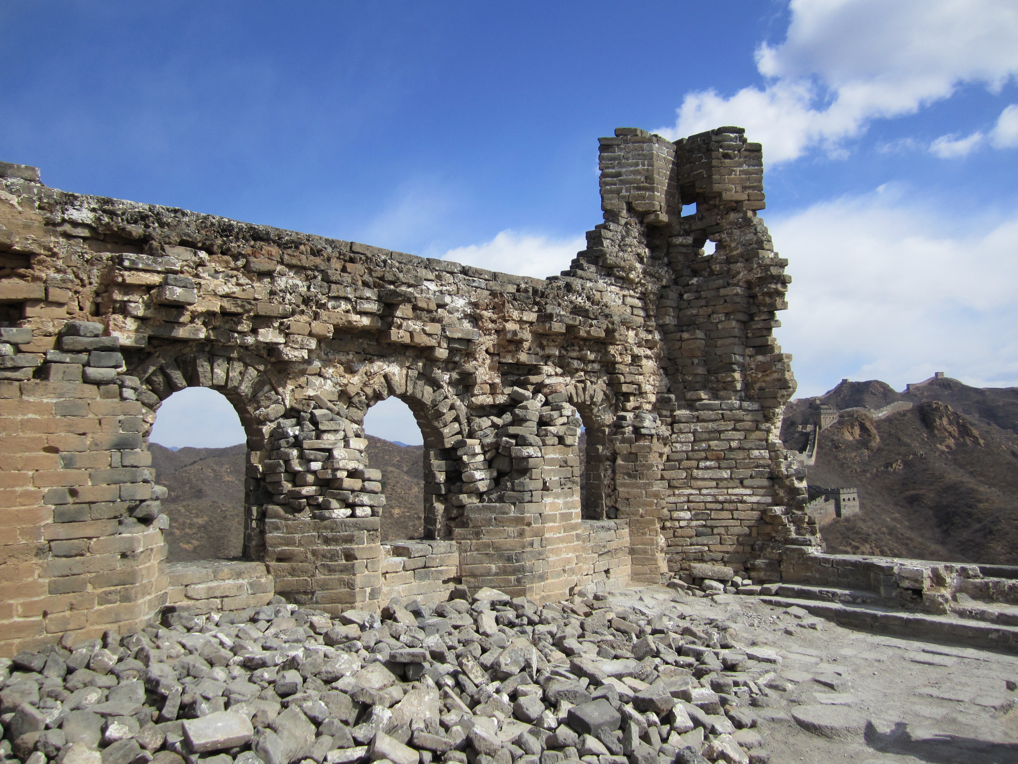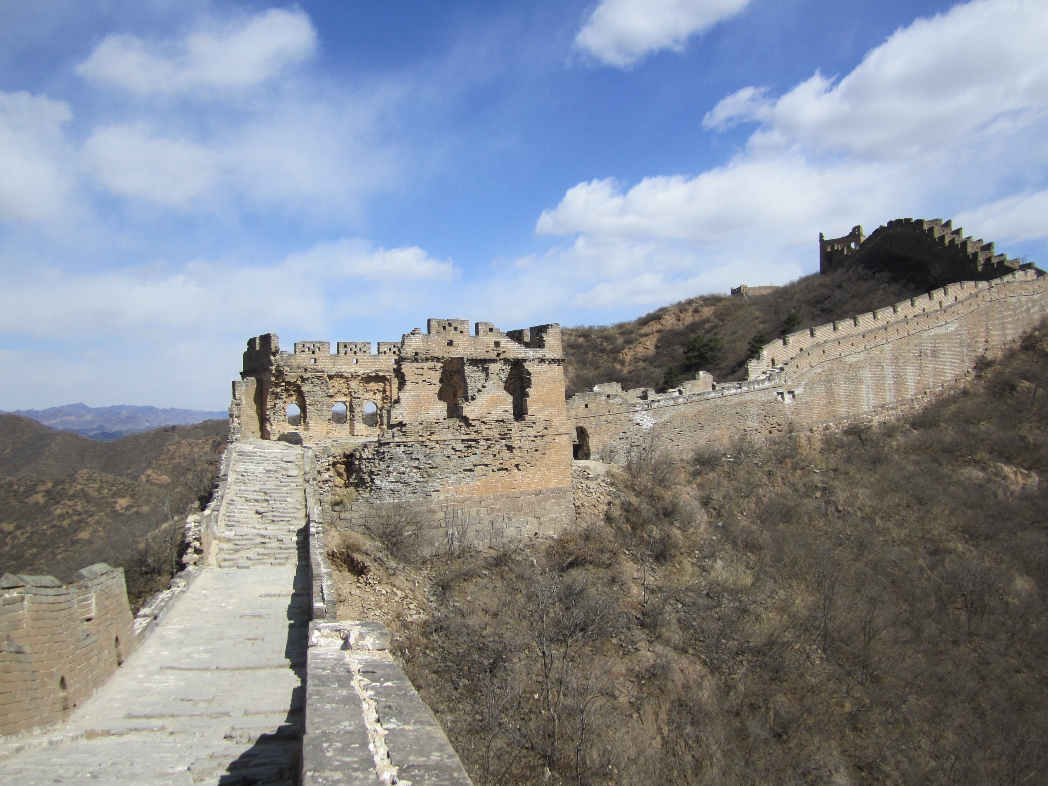 Ca monte, ça descend, des grandes marches, des plats... Arrive le moment où la restauration du mur se finit. On voit nettement la différence ! Les escaliers se transforment en descente de cailloux et les traverses sont beaucoup plus accidentées. Les murs, moins présents sur les côtés, sont à moitié démolis, ou il n’en reste qu’un tronçon. C’est dans ces moments-là, que tu es content d’avoir enfilé ton bonnet et la parka, comme c’est en plein vent …