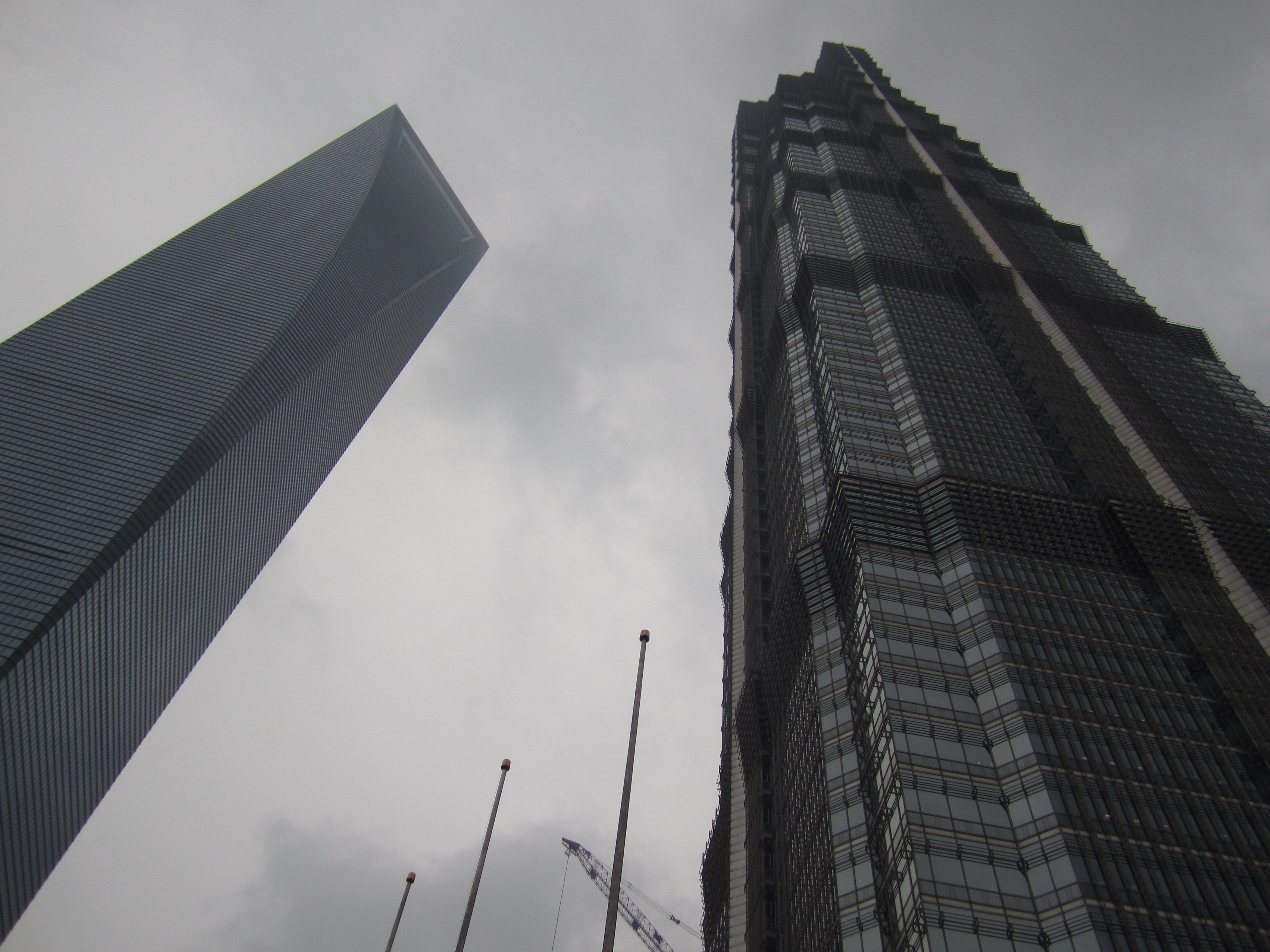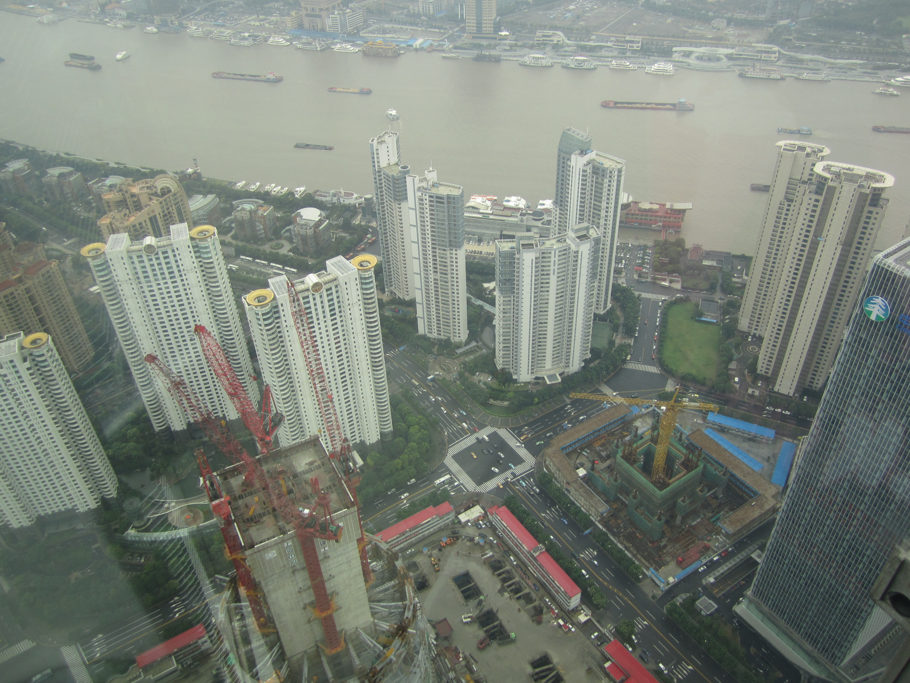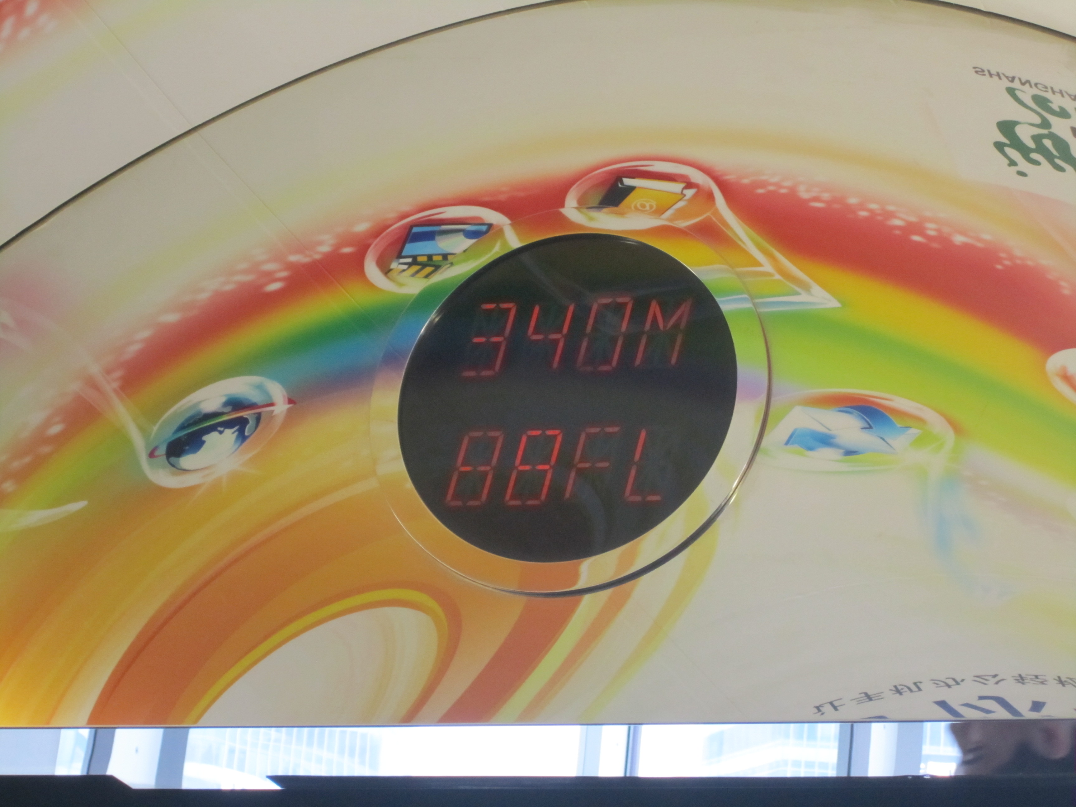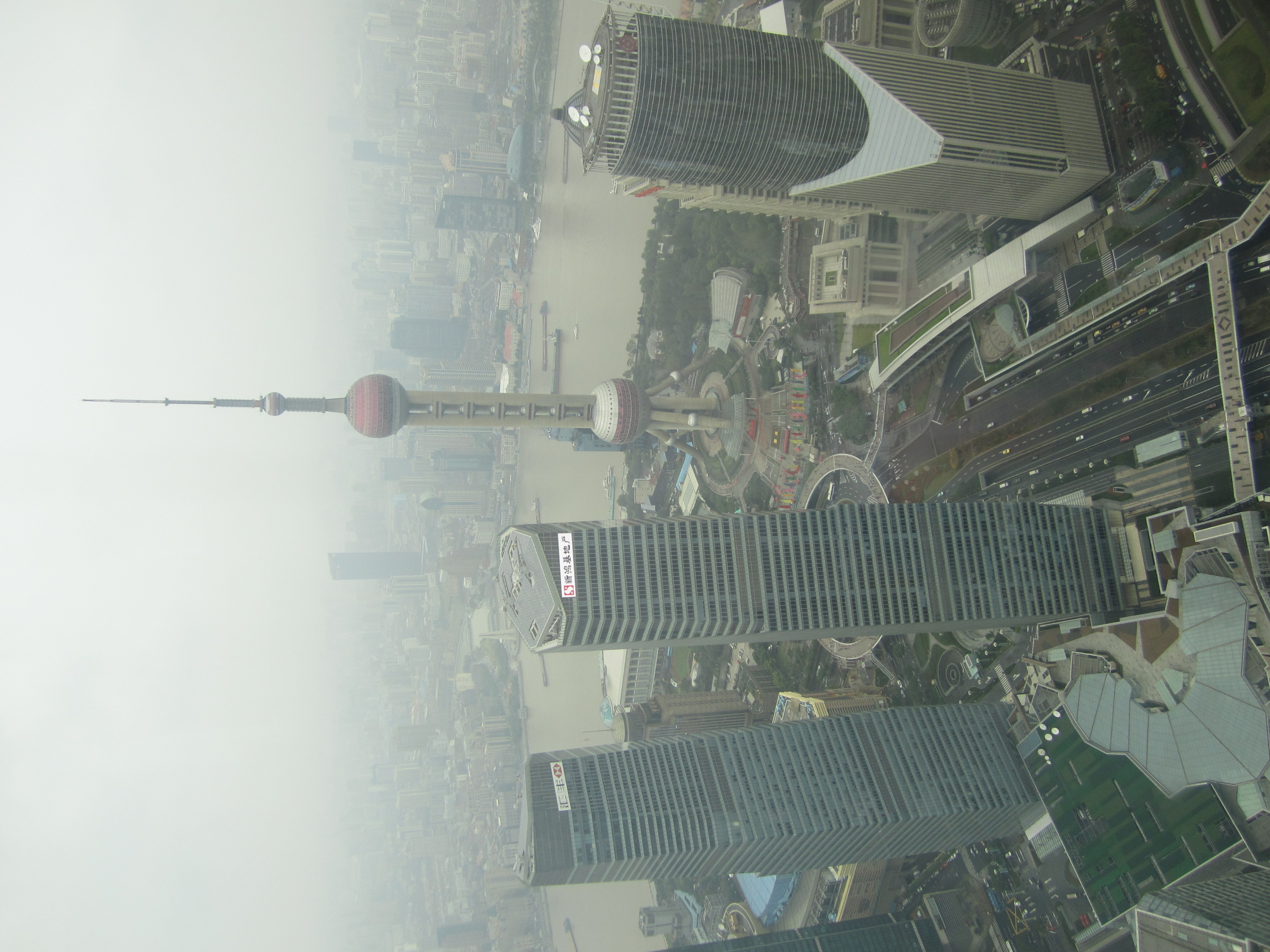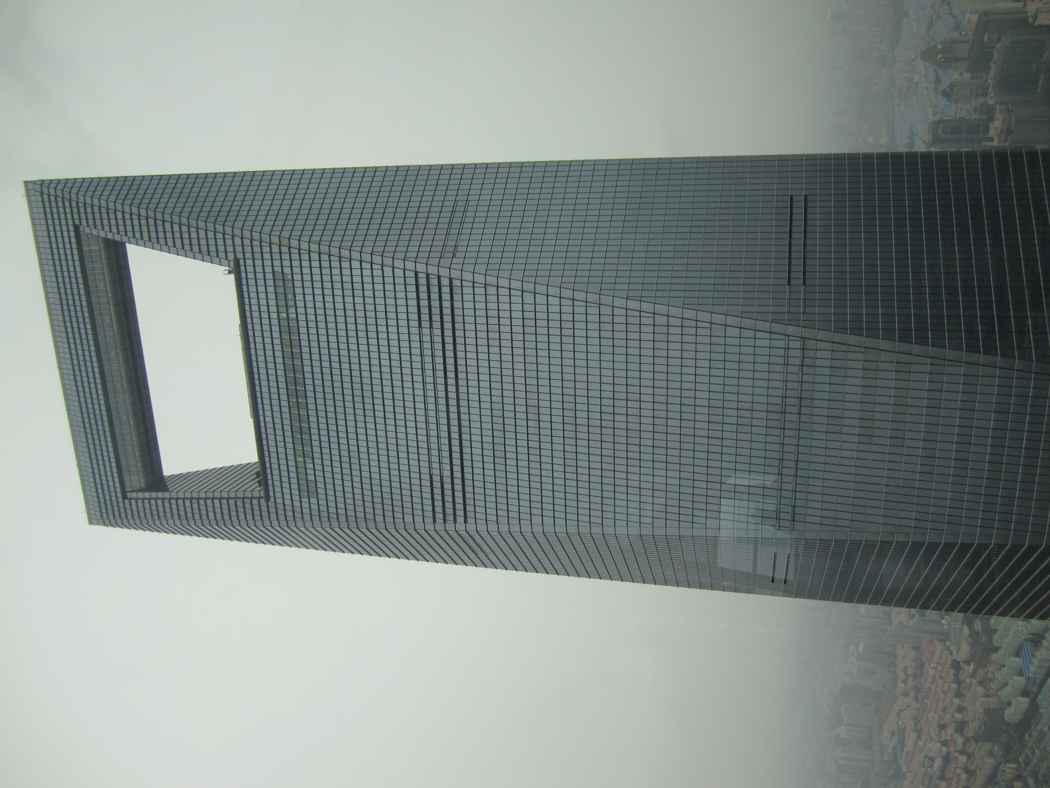 Au 88e étage, on a vraiment une vue de dingue sur Shanghai. Et on peut aussi noter que l'intérieur de la tour est creux .. un immense puits de 152m entouré des chambres de l'hôtel Grand Hyatt. Les Chinois l'ont surnommé le "Tunnel du temps". C'est aussi là haut que j'en ai profité pour envoyer mes 17 cartes postales, depuis le bureau de poste "le plus haut du monde". La tour en forme de "décapsuleur" (comme ils disent dans le Routard), c'est le World Financial Center. On peut monter tout en haut, elle est plus grande que Jinmao de 70m et on peut même marcher dans le vide sur le niveau supérieur à 474m ce qui en fait le plus haut observatoire du monde.