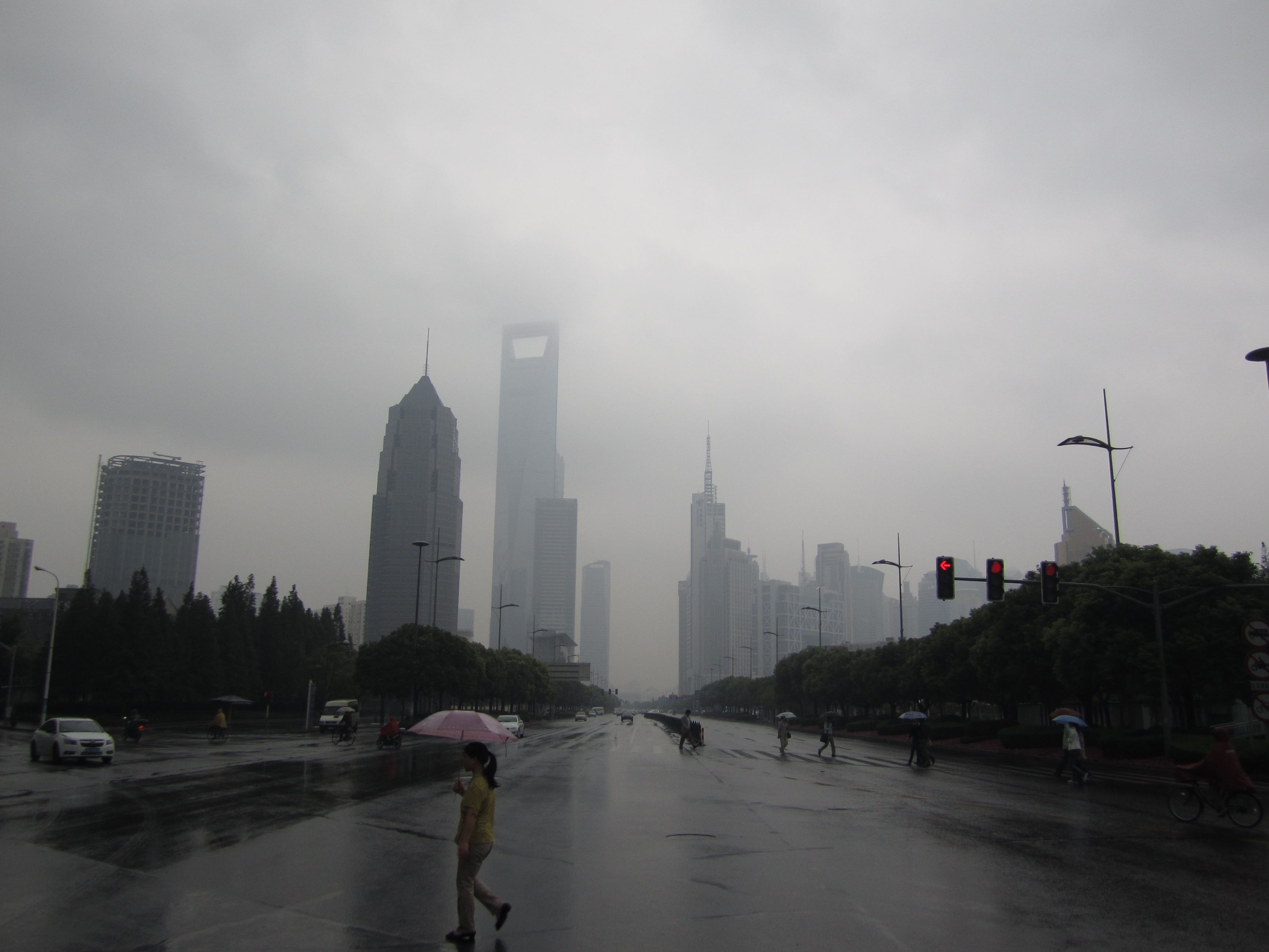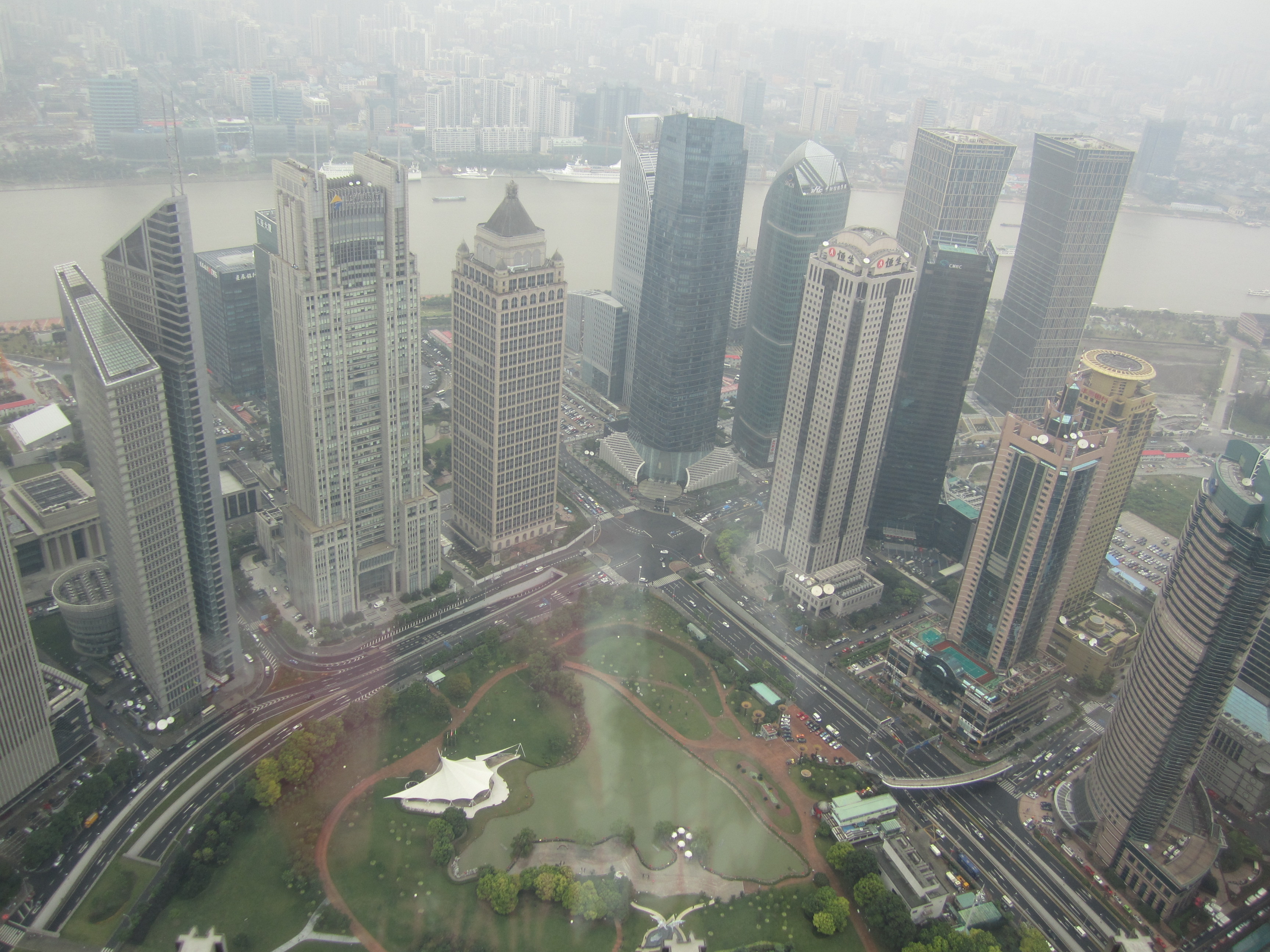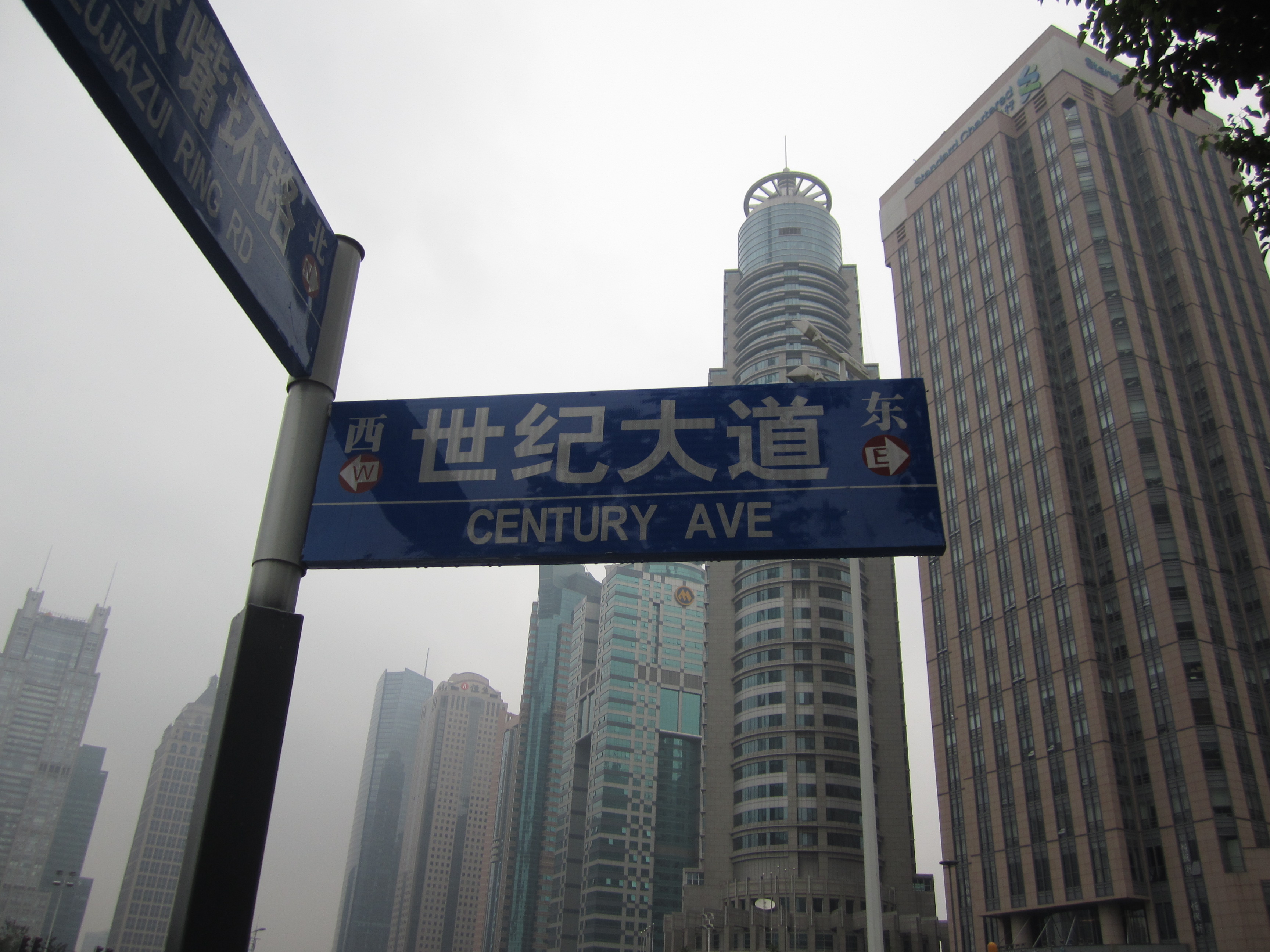 Le métro m'a déposé au sud-est et j'ai ensuite remonté la Century Avenue. Cette avenue a été conçue, dessinée et aménagée par l'architecte français Jean-Marie Charpentier (qui a notamment dessiné l'Opéra de Shanghai). Je ne lui ai rien trouvé d'extraordinaire si ce n'est qu'elle offre une vue sur les tours tout autour.