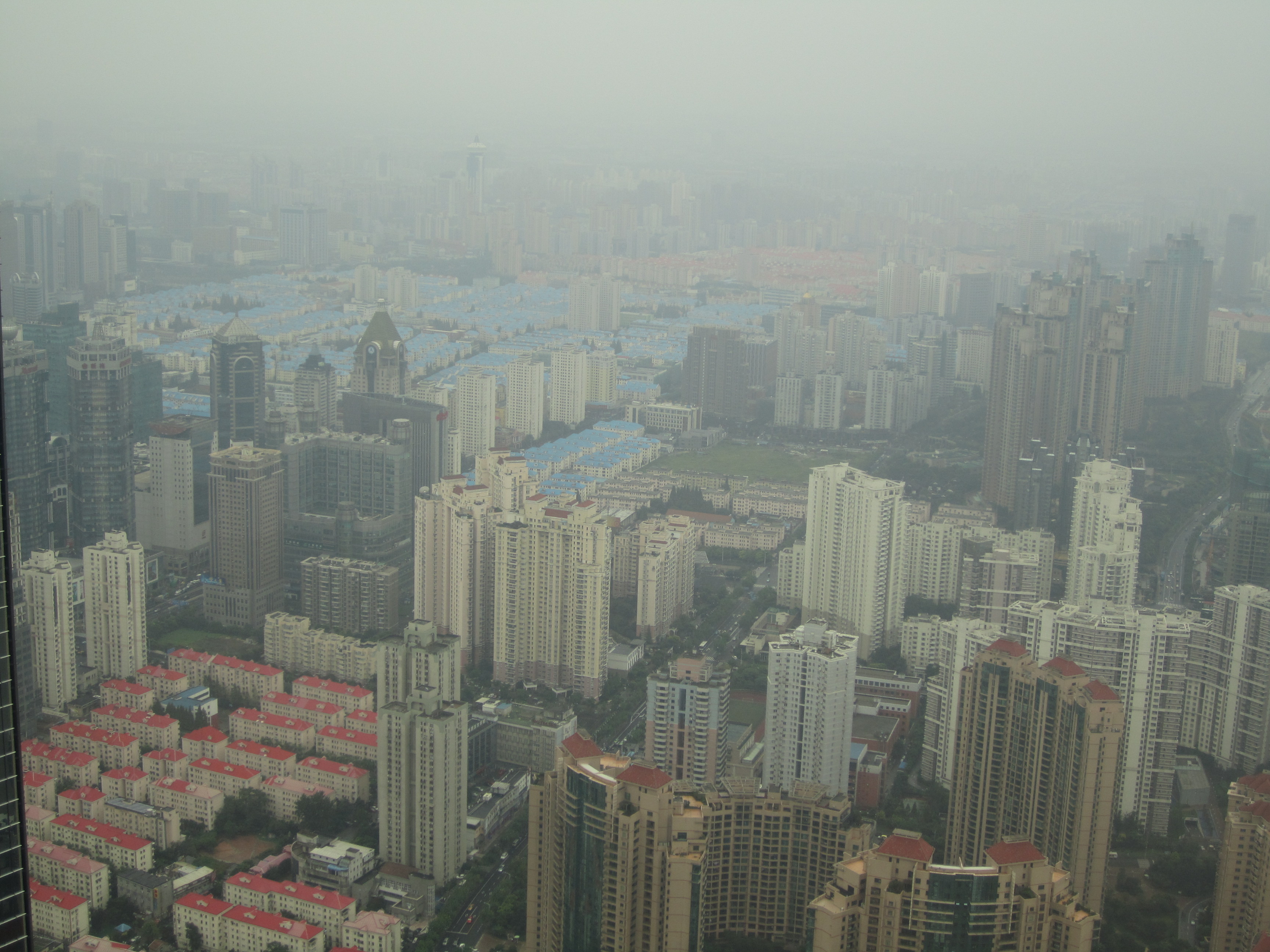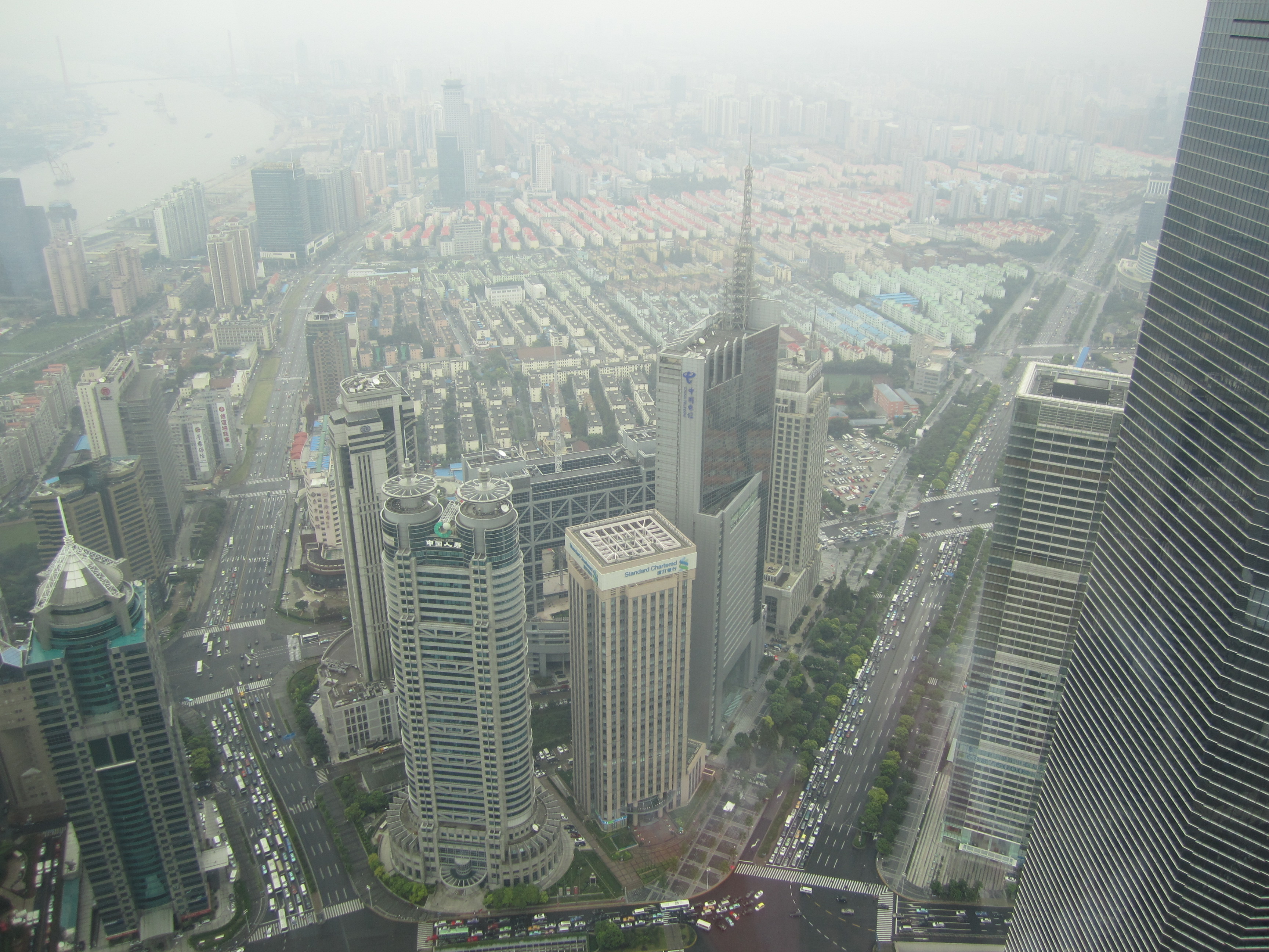 Après mon passage dans le quartier juif de Shanghai, j'ai pris le métro et j'ai filé de l'autre côté du fleuve, à Pudong ! La ville nouvelle de Pudong est souvent annoncée comme le Manhattan de Shanghai avec ses immenses tours au bord de l'eau. Jusqu'en 1990, ce n'était qu'un bout de terre agricole rempli de champs et de vergers. En avril 1990, la municipalité décida de développer cette partie de la ville pour désengorger le Bund. L'espace ne manquait pas entre la mer et le Huangpu: 522km², une surface aussi grande que Singapour. Le coup d'envoi est donné en 1992 et 10 ans plus tard, une ville nouvelle est sortie de terre. Tous ces gratte-ciel provoqueraient même un affaissement des sols de 1,5 cm tous les ans !