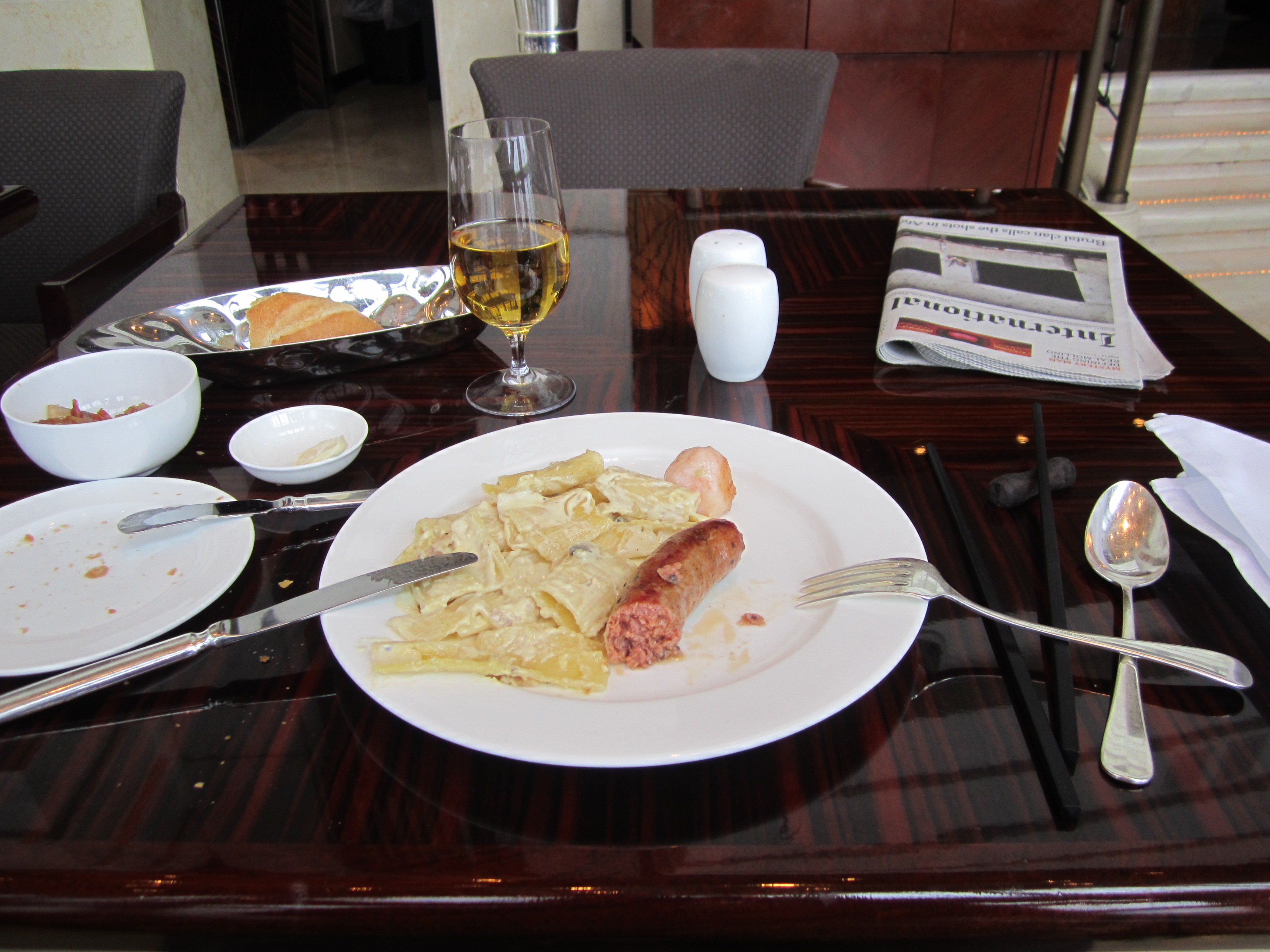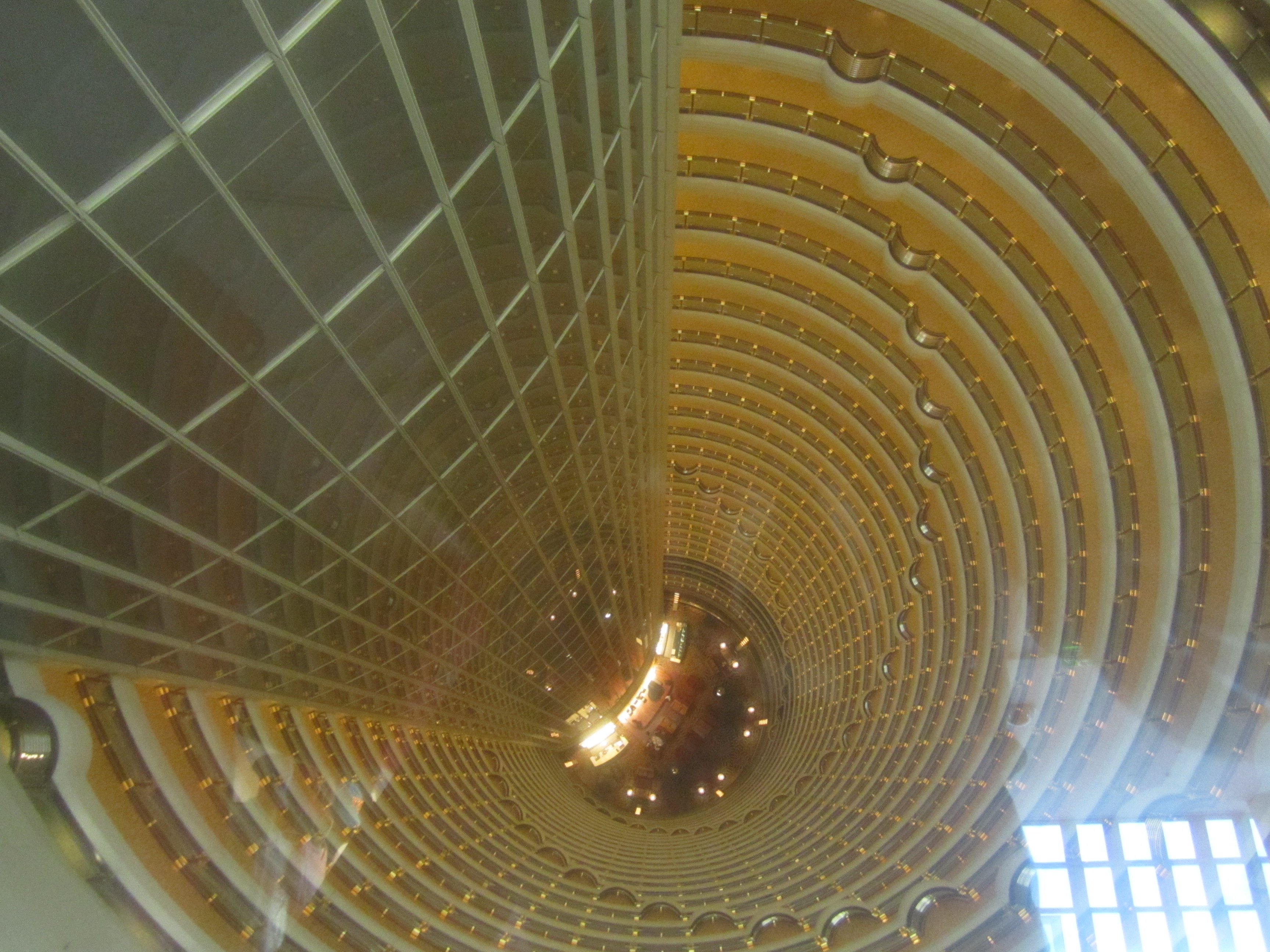 Arrivée à la tour Jinmao, j'avais un p'tit creux. Avant d'aller voir ce qu'il se passe au 88 étage haut de 420m, j'ai fait une pause au 54e étage de la tour. C'est à cet endroit que se trouve le luxueux hôtel Grand Hyatt. Du 54e au 87e étage, la tour accueille les 33 étages et 555 chambres de cet hôtel, le plus haut de la planète. Le resto de l'hôtel, le Grand Café, propose un buffet très correct et du coup, on peut manger avec une superbe vue sur tout Shanghai avec un service aux petits oignons.