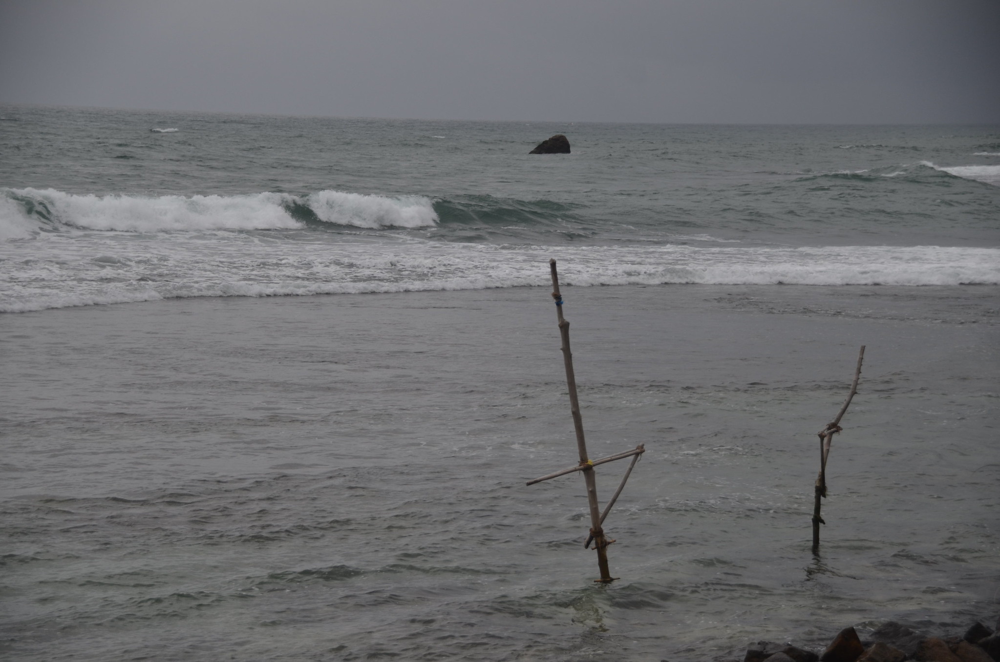 Après Tangalle, nous continuons vers l'ouest, le long de la côte. Notre prochain arrêt est Mirissa. En fait, cet arrêt on l'a surtout fait à cause de la couverture du Lonely Planet de cette année: une superbe photo dans les tons rouges avec un pêcheur perché en premier plan. Elle est superbe. Et c'est justement dans ce petit coin du Sri Lanka que l'on peut les voir.