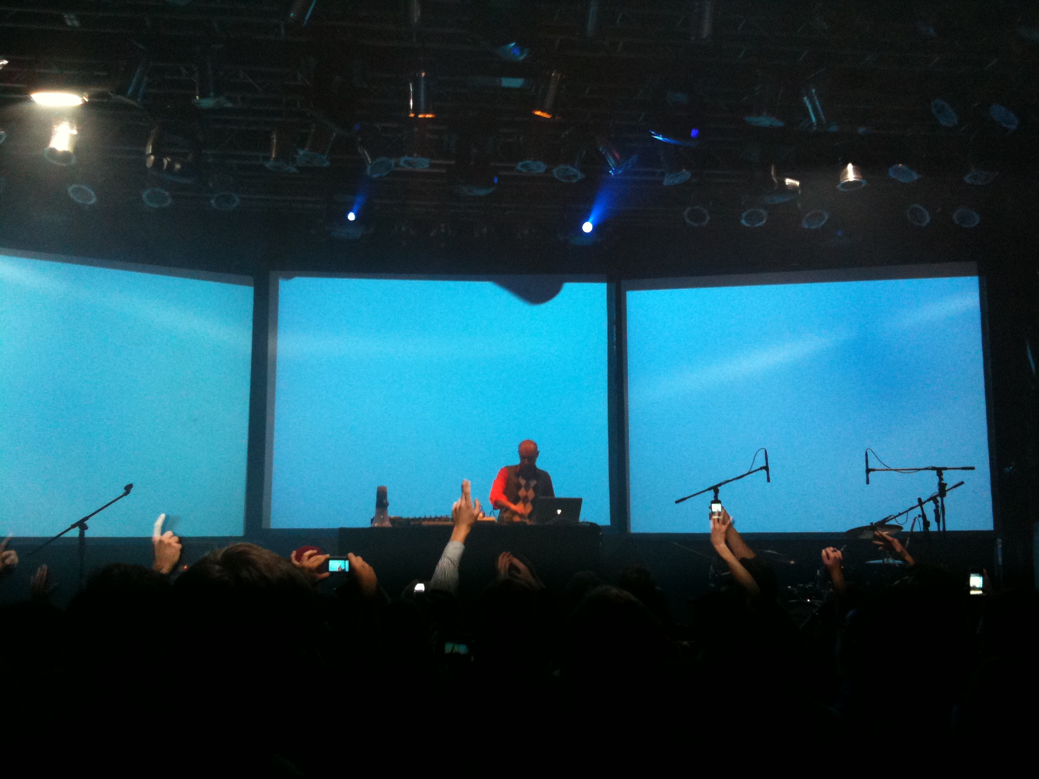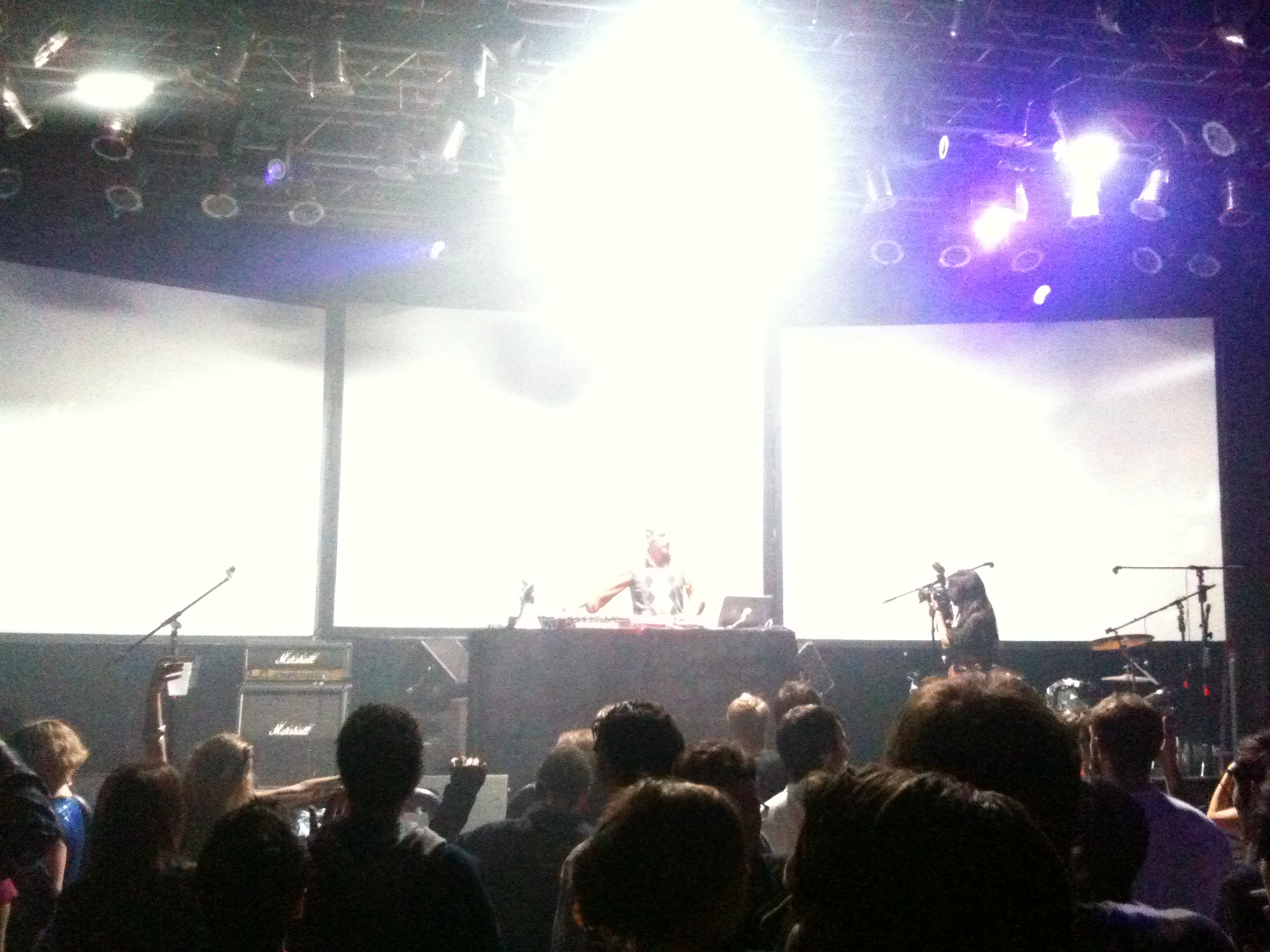 Et ça a été la même chose quand Vitalic est venu s’installer. Il restait 2 morceaux à jouer et il est monté sur la scène, a installé son mac, fait quelques branchements, réglé 2/3 trucs et est repartit. Alors OK, je veux bien comprendre que de cette façon, on ne perd pas de temps dans les transitions. Mais, en France, on est tellement habitué à la célèbre « entracte » (vous connaissez certainement le « L’Olympia est heureux de vous offrir 30 minutes d’entracte » – mille merci monseigneur !) entre deux groupes, le temps de tout bien mettre en place, etc … Là, c’est de l’expéditif !