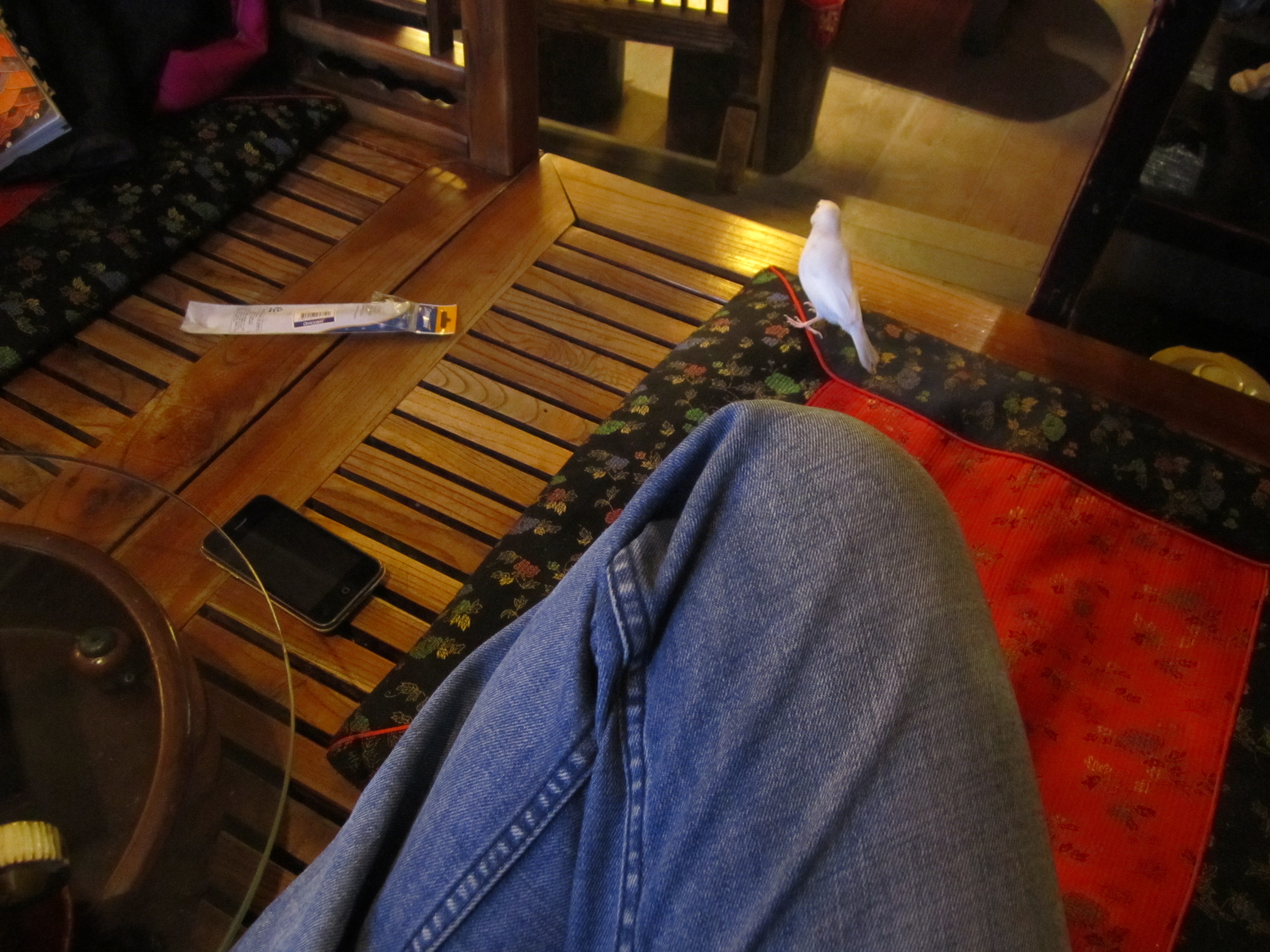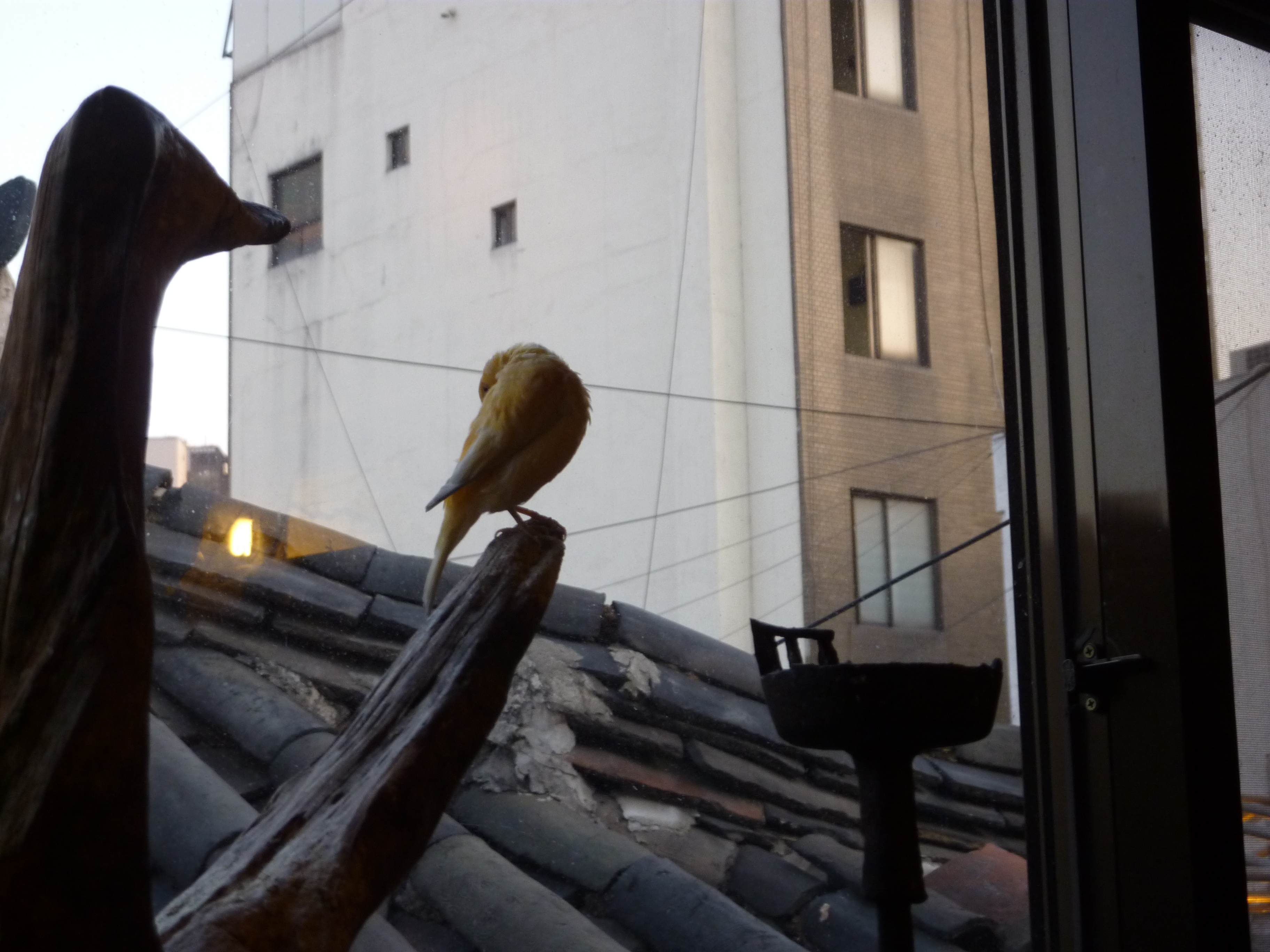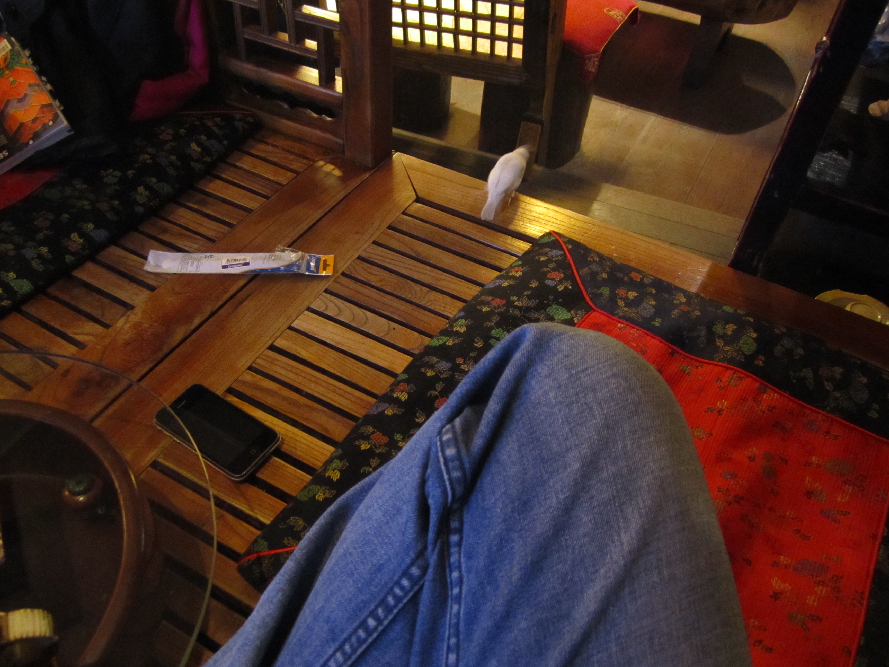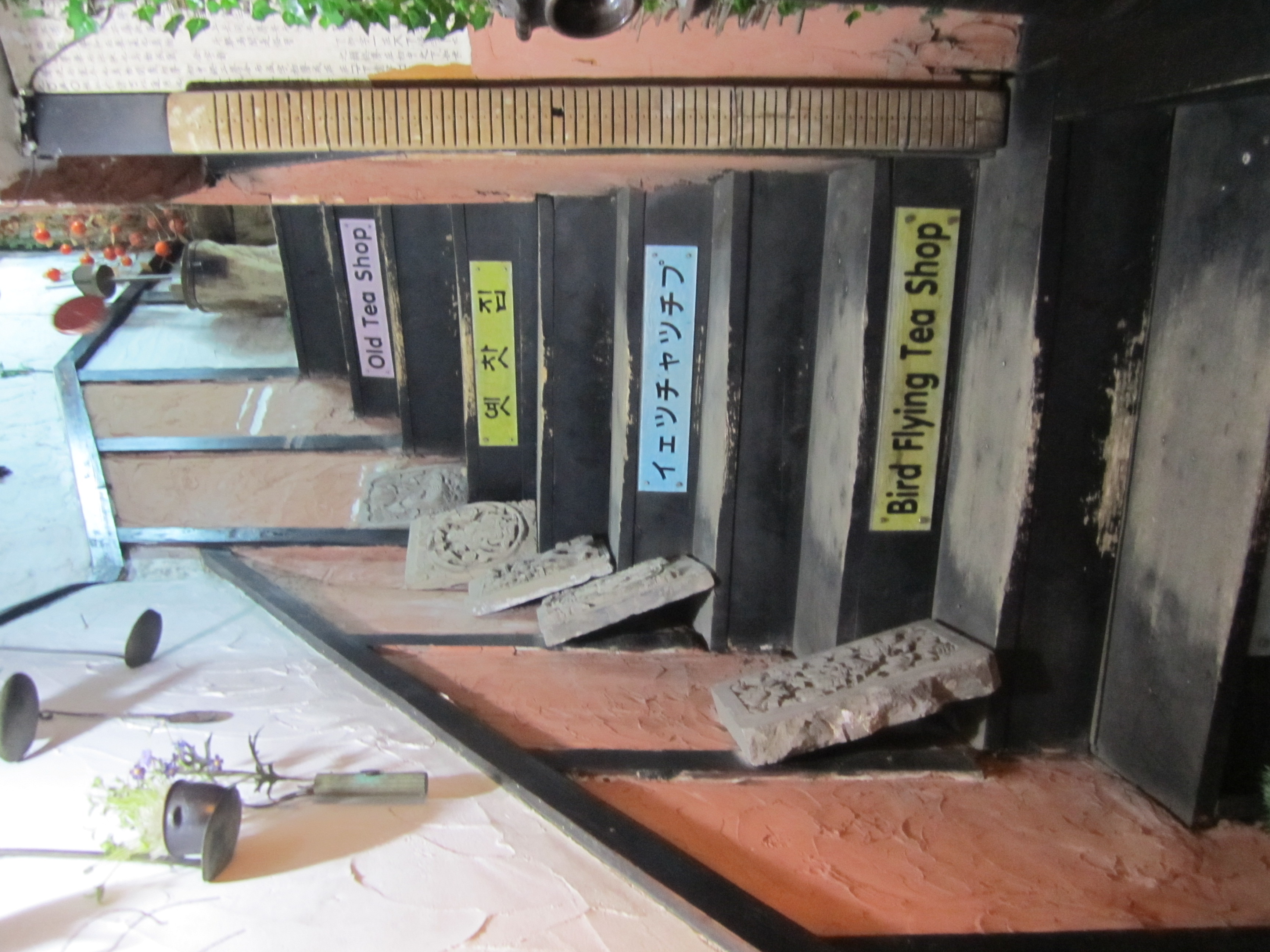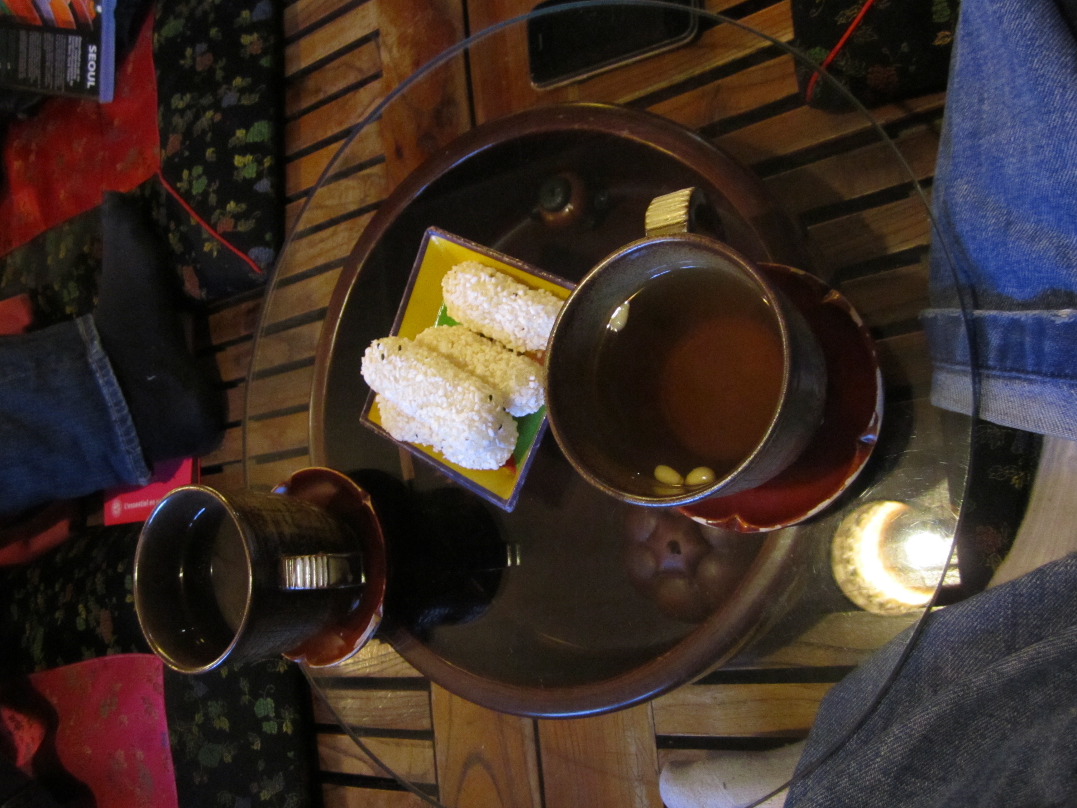 Indiqué sur le Cartoville de Séoul, on arrive à trouver ce petit endroit de paix pour boire un thé, caché au premier étage d'une maison, accessible par un escalier en bois grinçant et derrière la rue grouillante d'Insadong. Bienvenue au paradis des oiseaux! 5 ou 6 volatiles se baladent à leur guise dans la pièce. Pas farouches pour un sous, ils sont très curieux. Toutes les tables sont basses à la coréenne. On s'assoit par terre pour déguster son thé à la cannelle (délicieux) ou encore un thé au ginseng (particulier) accompagné de gâteaux de riz soufflé. C'est le lieu idéal pour faire une pause. On y est allé plusieurs fois pour être tranquille et reprendre des forces!