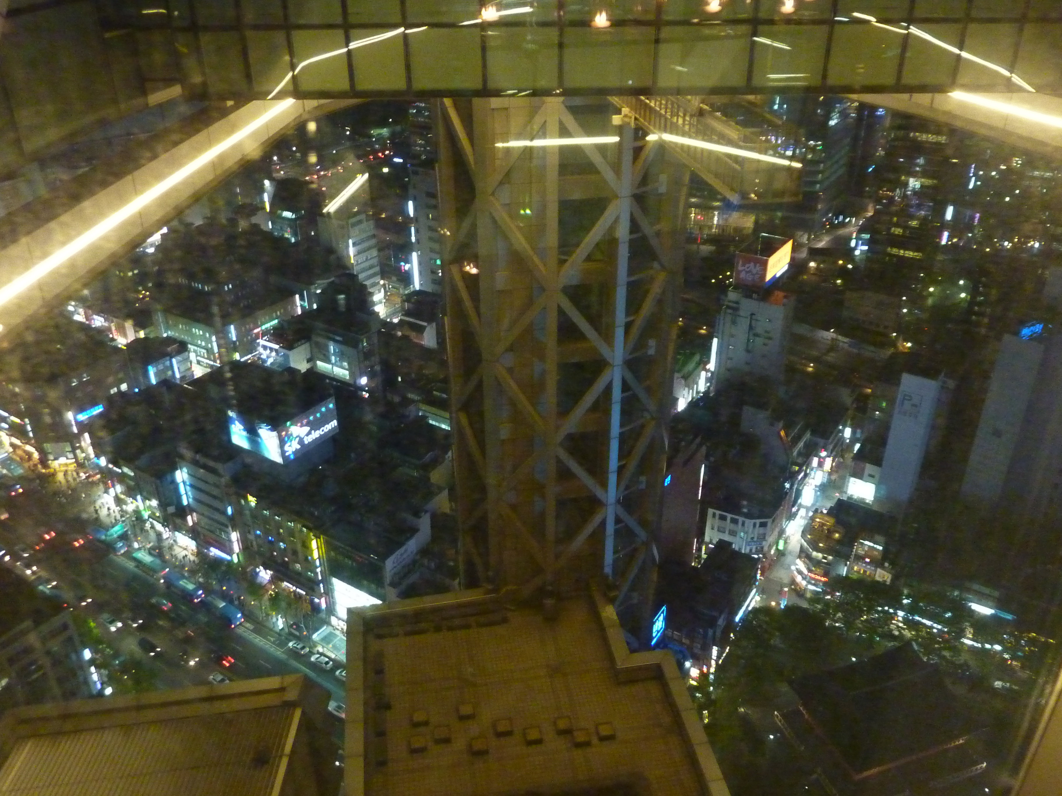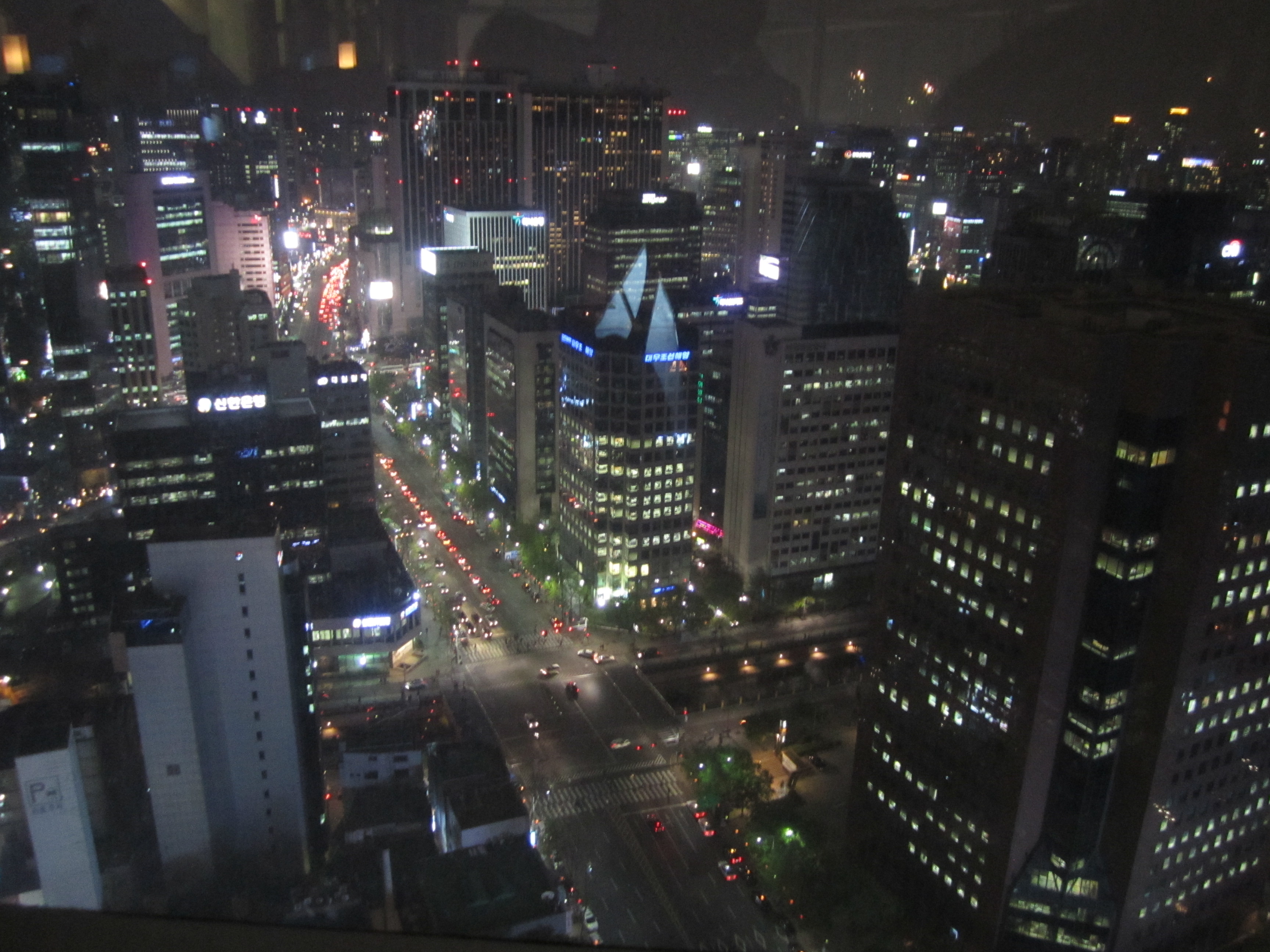 Pas très loin du quartier d'Insadong, se trouvait la tour de JongNo. Possédant un restaurant panoramique au sommet (le Top Cloud), on ne pouvait pas rater une telle occasion de voir Séoul de haut et de nuit. Le restaurant est très chic: lumière tamisée, groupe de jazz, toilettes immenses avec vue de dingue et prix qui s'envolent. On se ravise et on prend simplement un cocktail. Mais la vue est terrible, digne des grandes villes avec des grattes ciels dans tous les sens.